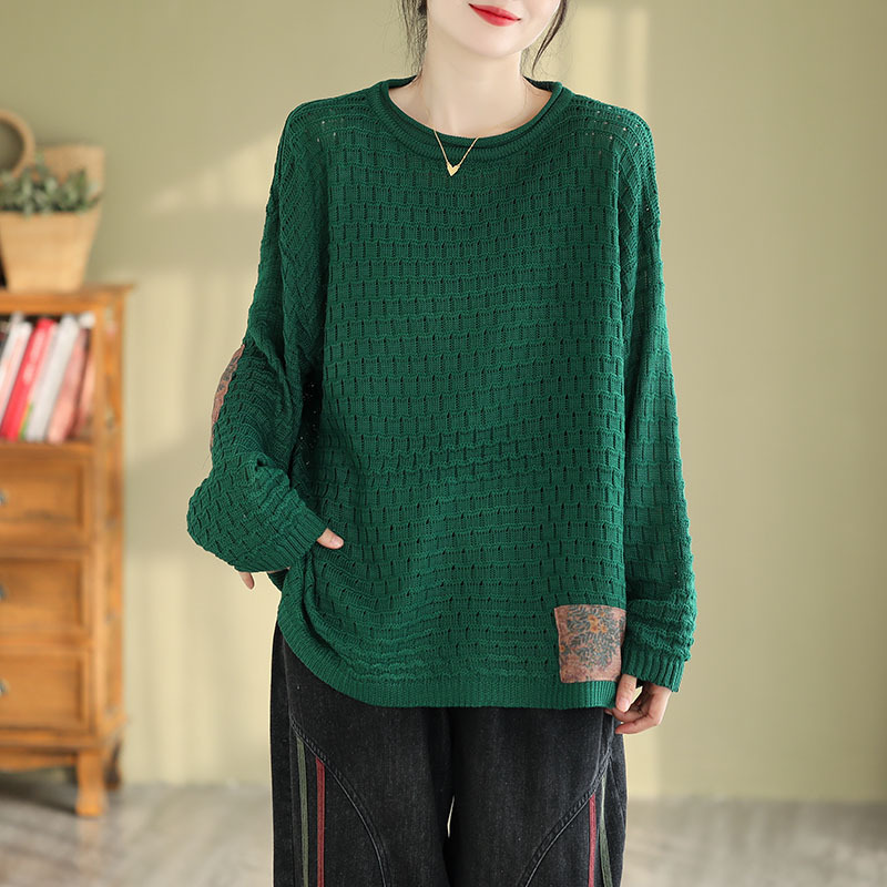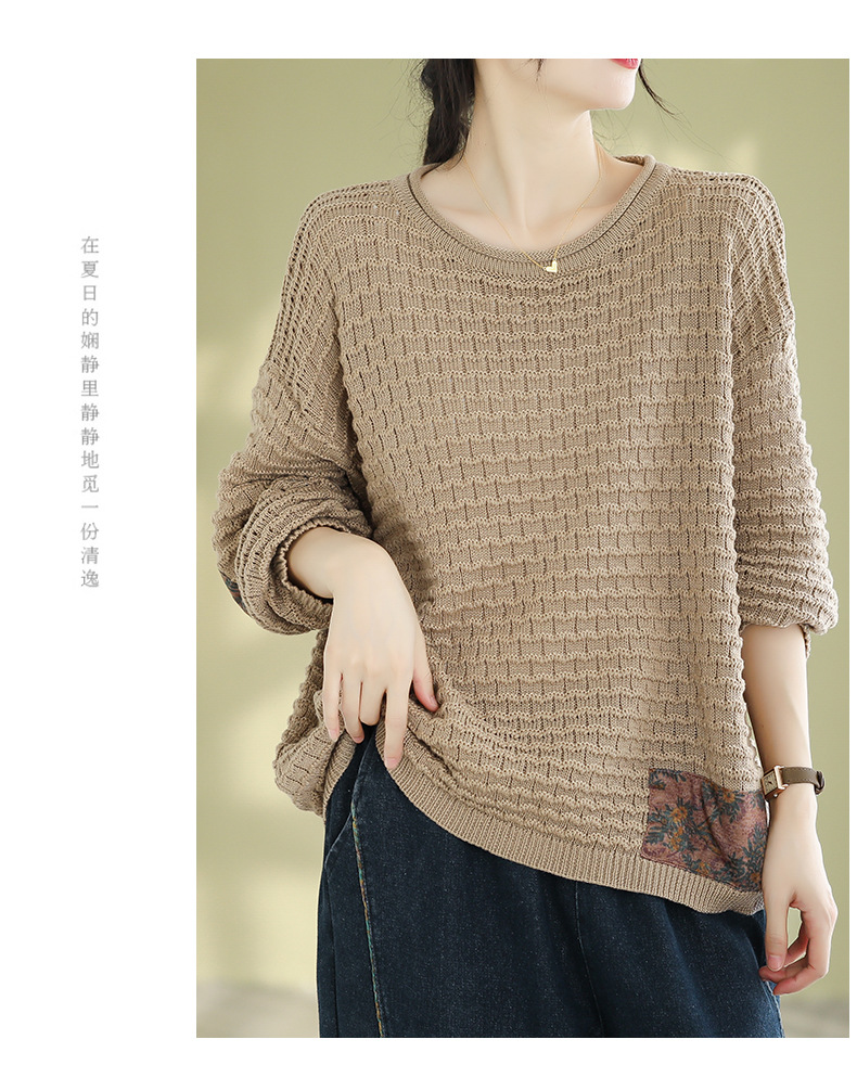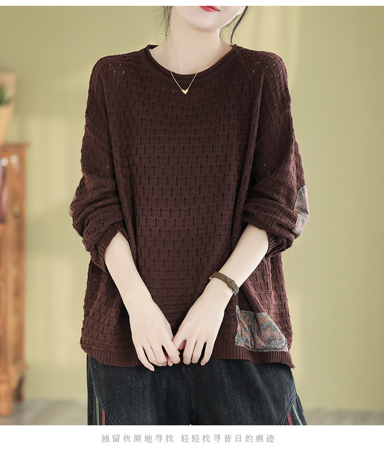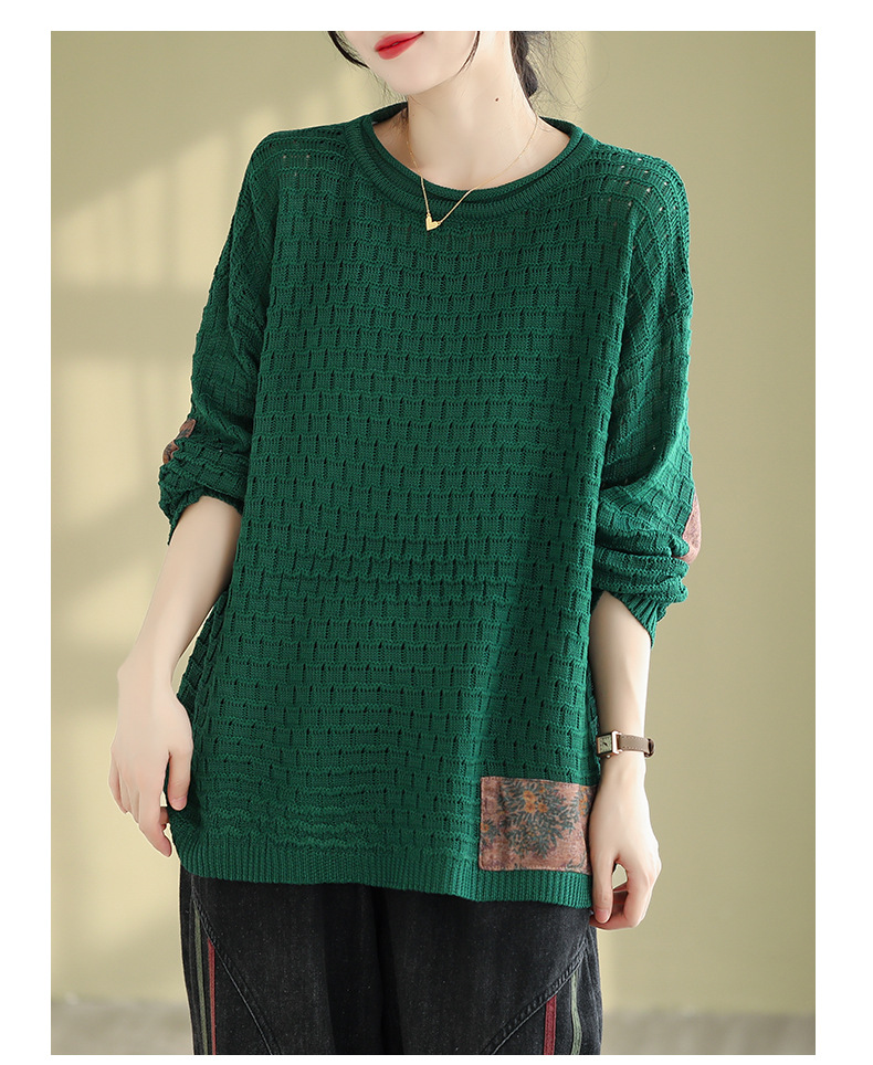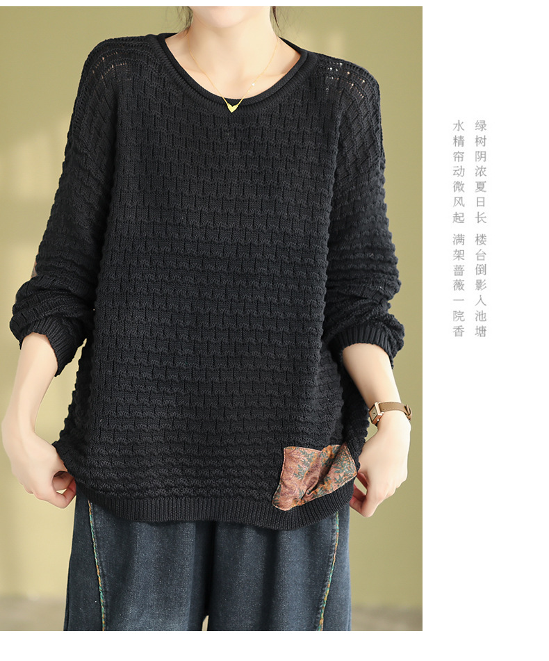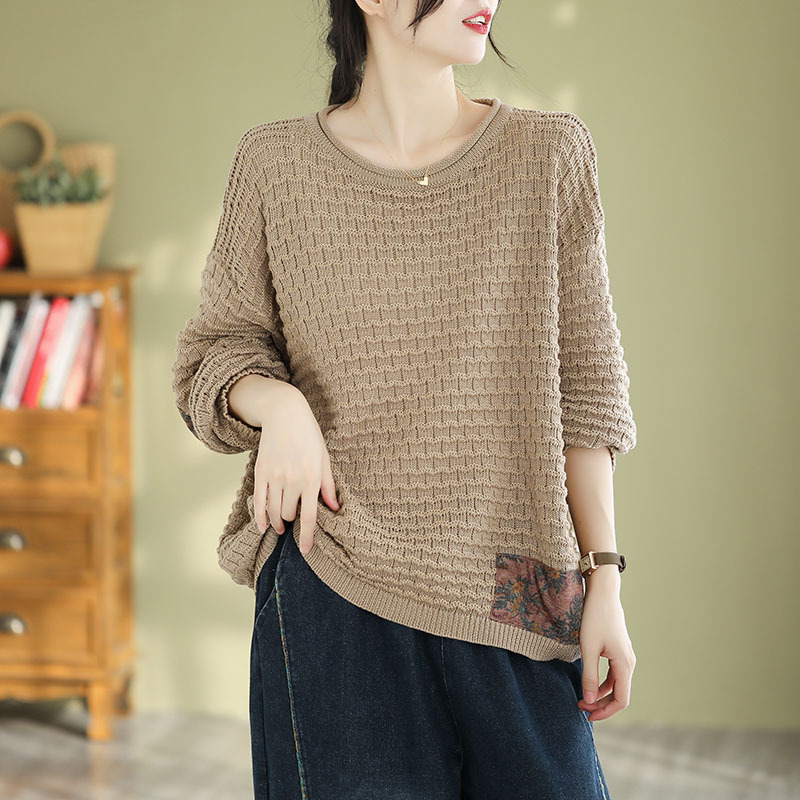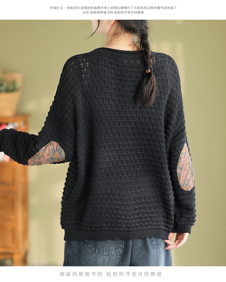 Свитер крупного размера в винтажном стиле с лоскутным узором, вязаный, свободный, повседневный, в этническом стиле, с круглым вырезом, с длинными рукавами, осень-зима 2024