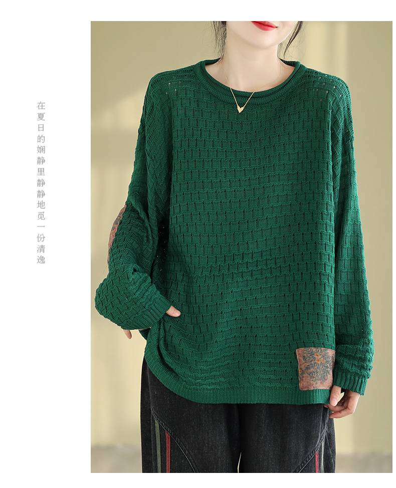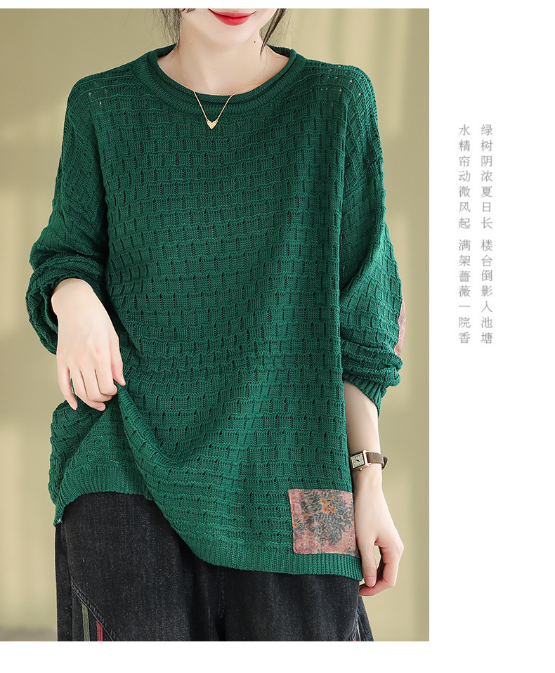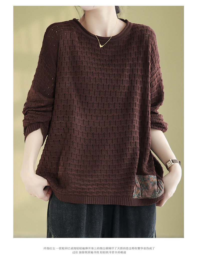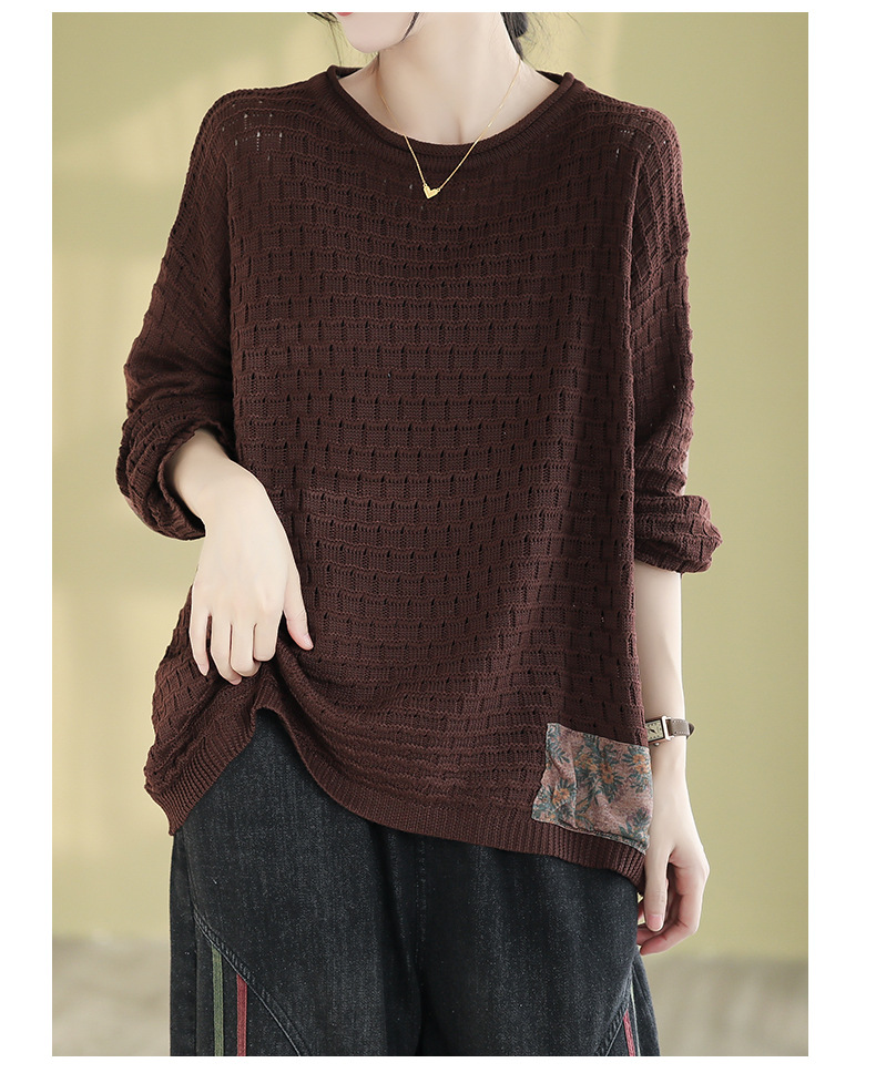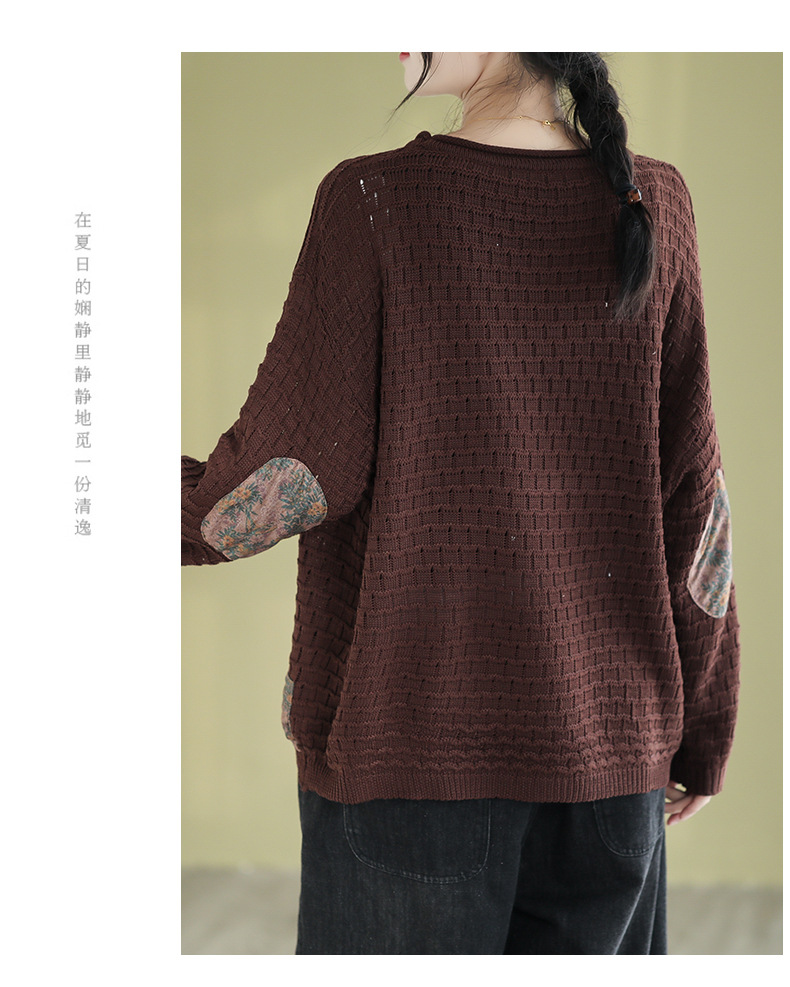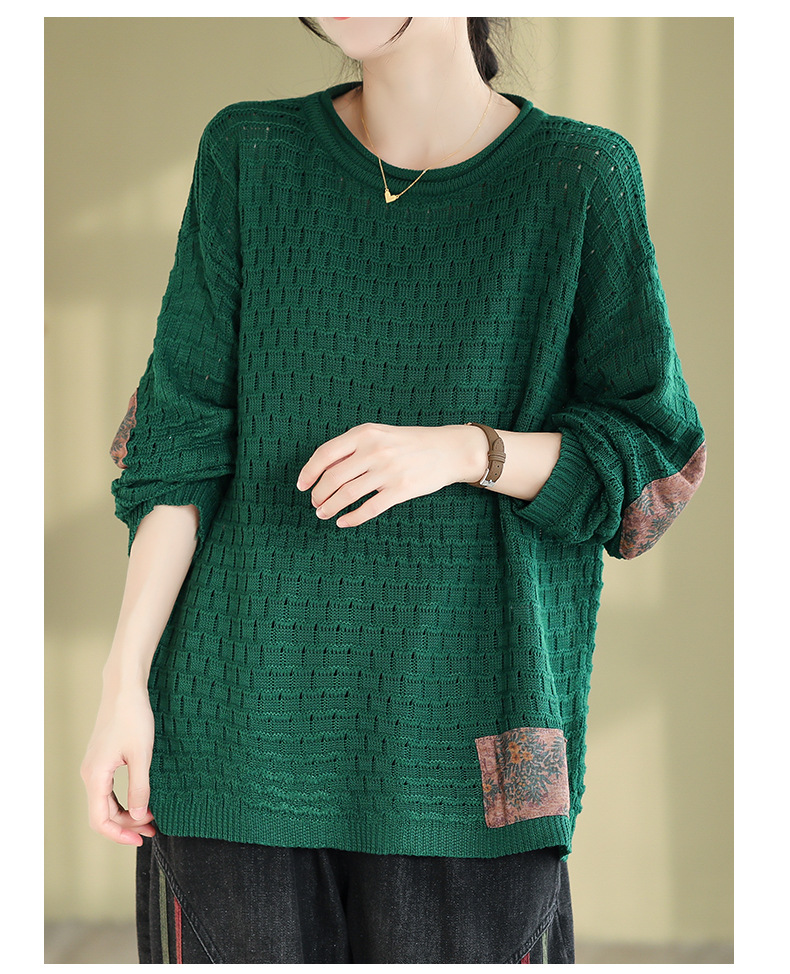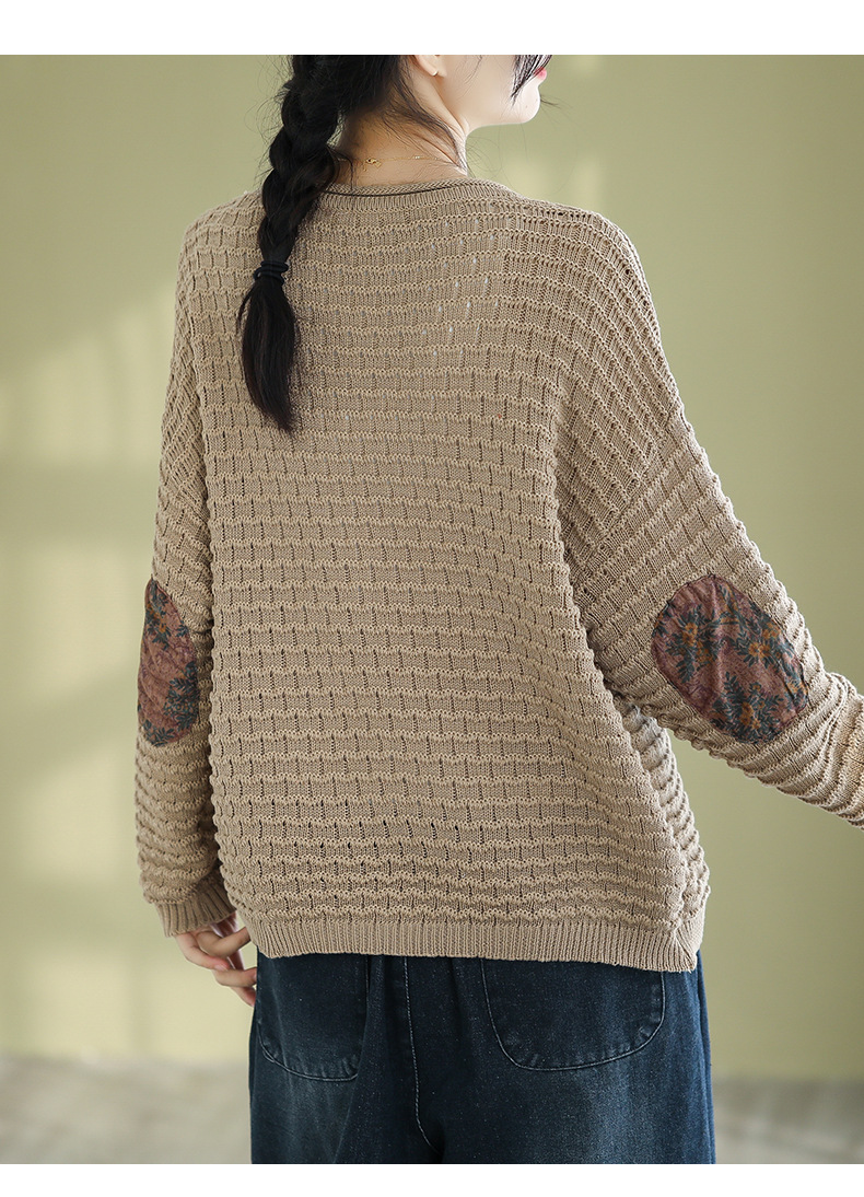 Свитер крупного размера в винтажном стиле с лоскутным узором, вязаный, свободный, повседневный, в этническом стиле, с круглым вырезом, с длинными рукавами, осень-зима 2024