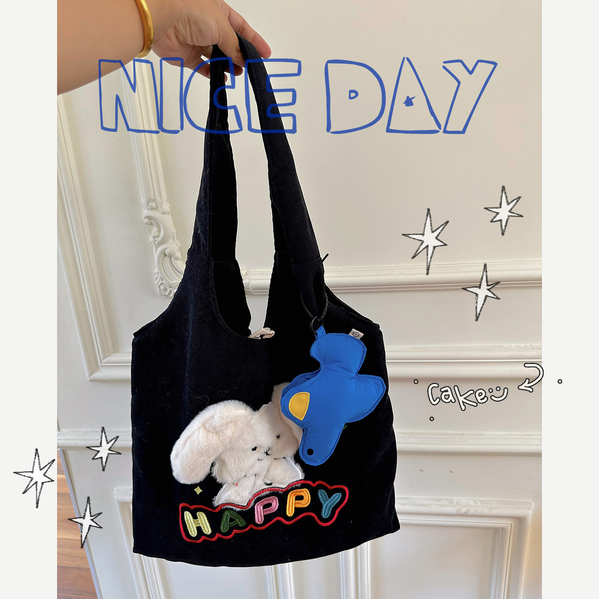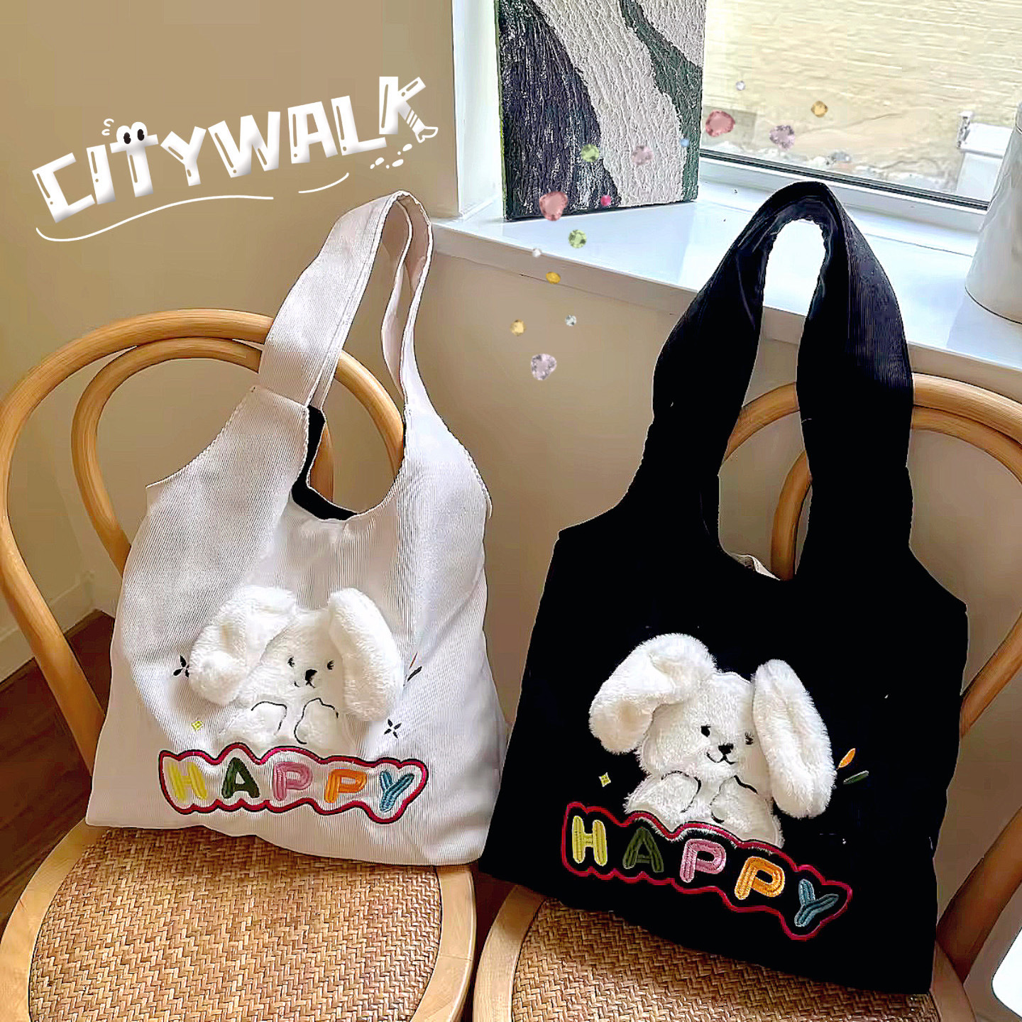 Lazy Style ins Холщовая сумка в японском стиле с большими ушами Женская универсальная сумка для покупок большой емкости Тканевая сумка для студентов колледжа