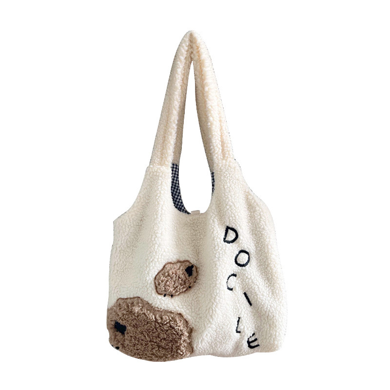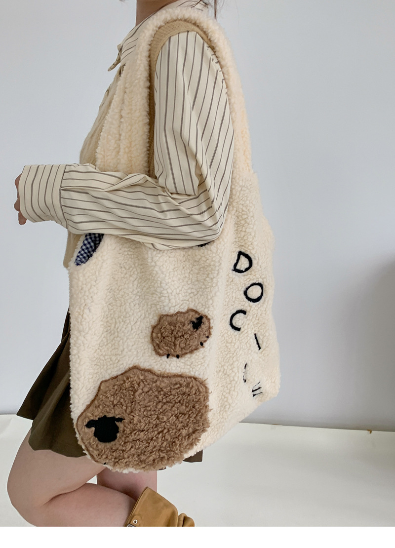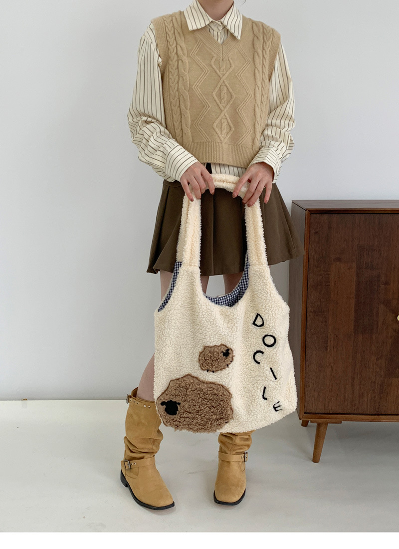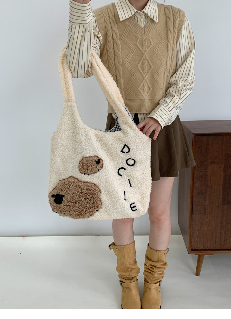 Девушка сердце животное ягненок мультфильм вышитый большой емкости сумка через плечо овечьей шерсти жилет сумка осень и зима новая плюшевая сумка