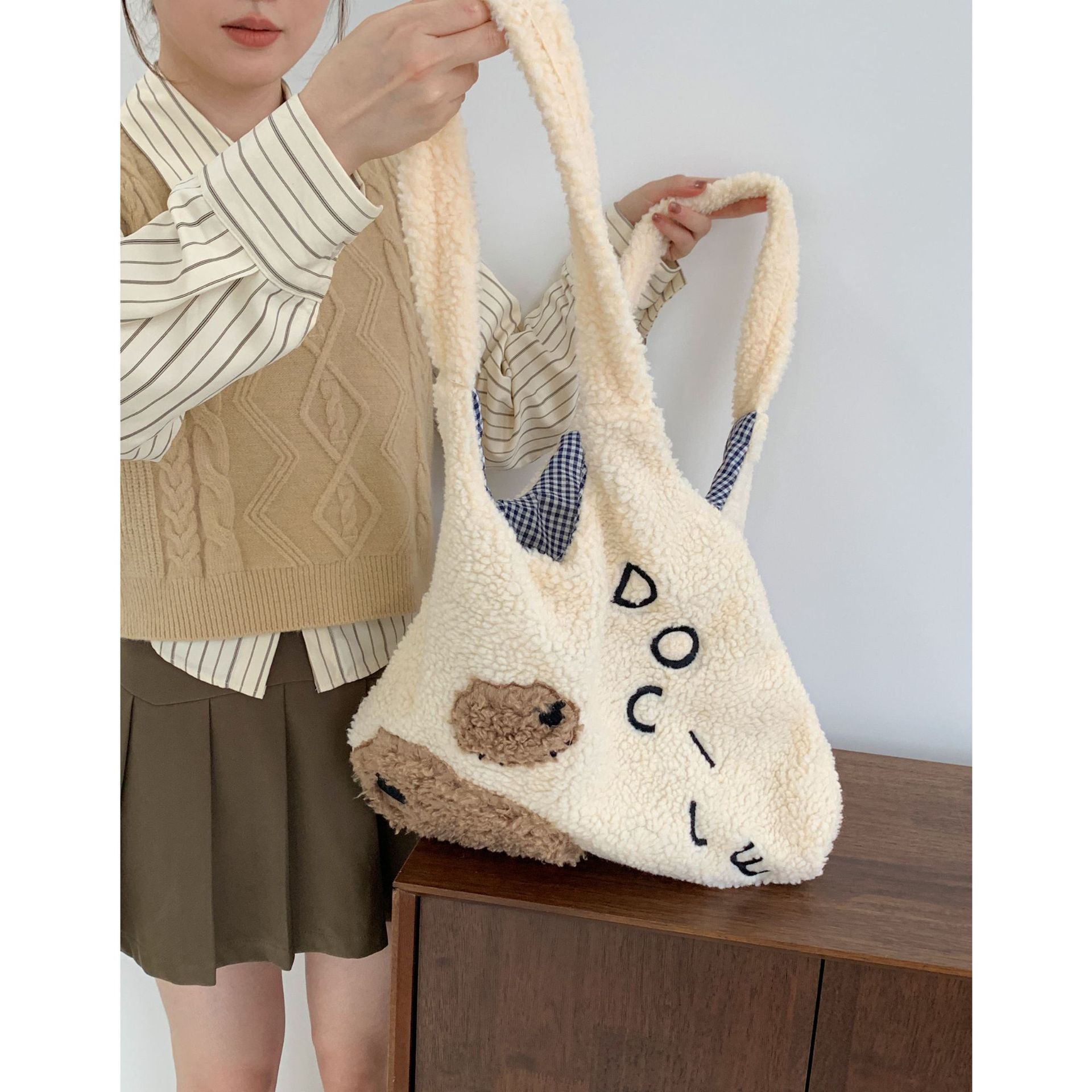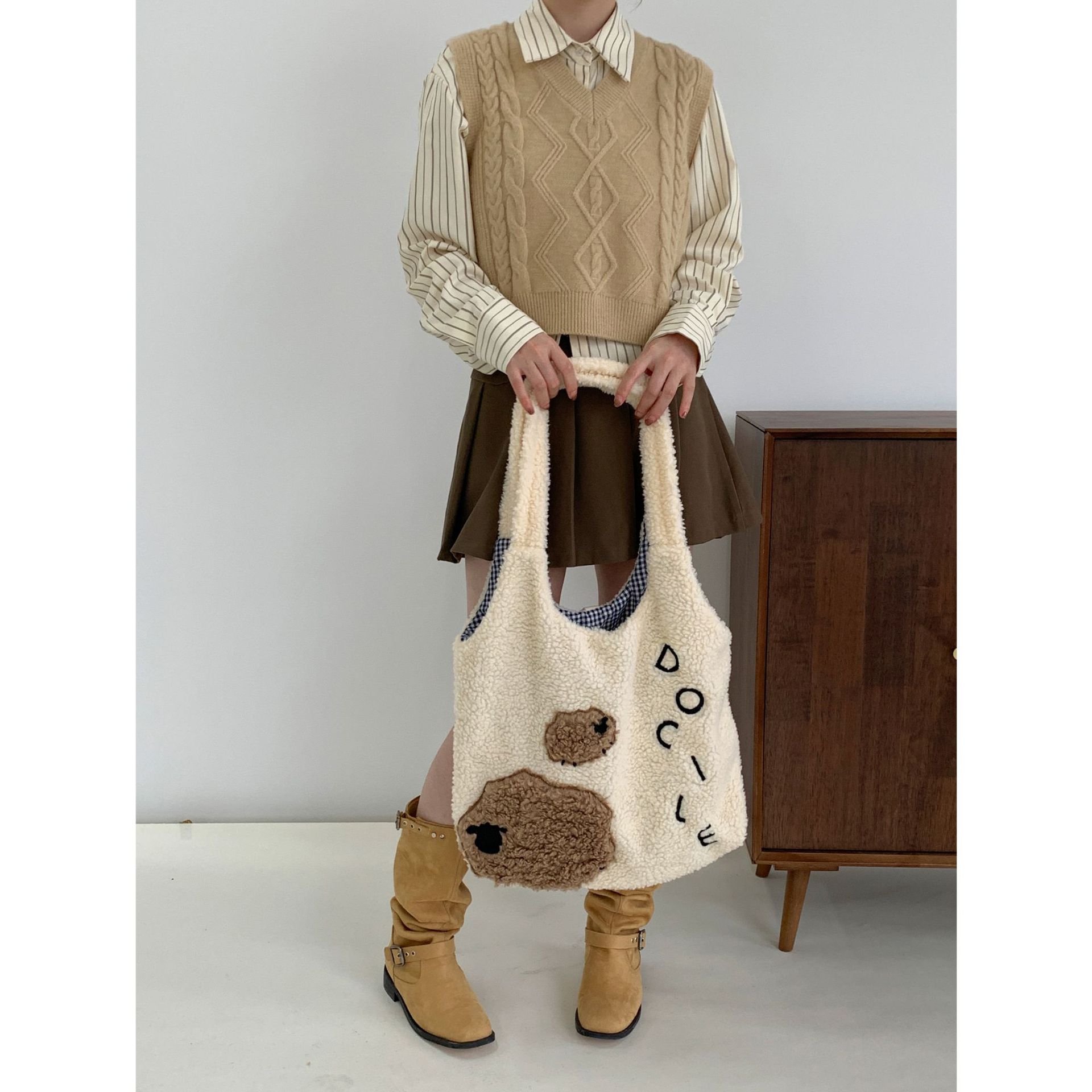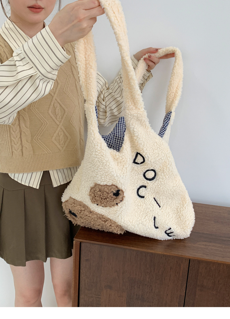 Девушка сердце животное ягненок мультфильм вышитый большой емкости сумка через плечо овечьей шерсти жилет сумка осень и зима новая плюшевая сумка