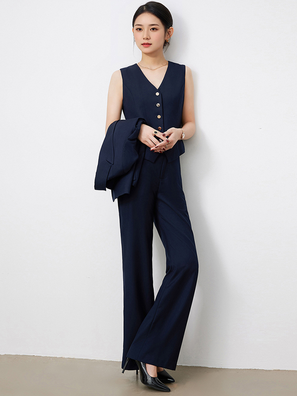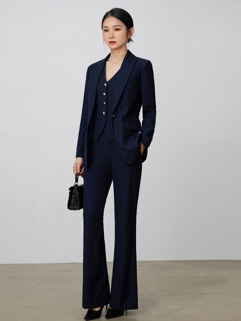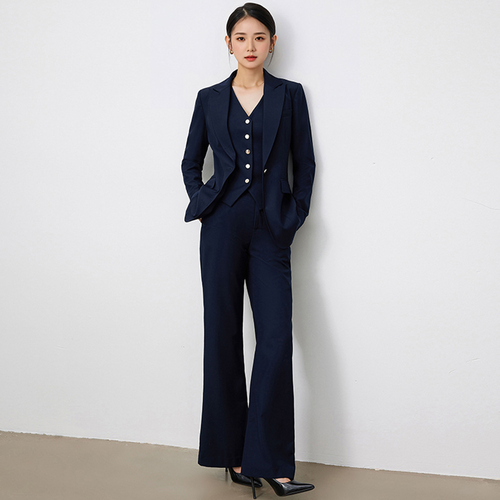 [Экспорт в Японию] Шерстяной костюм из трех частей, облегая костюм, жилет, расклешенные брюки, женский президент, профессиональный костюм