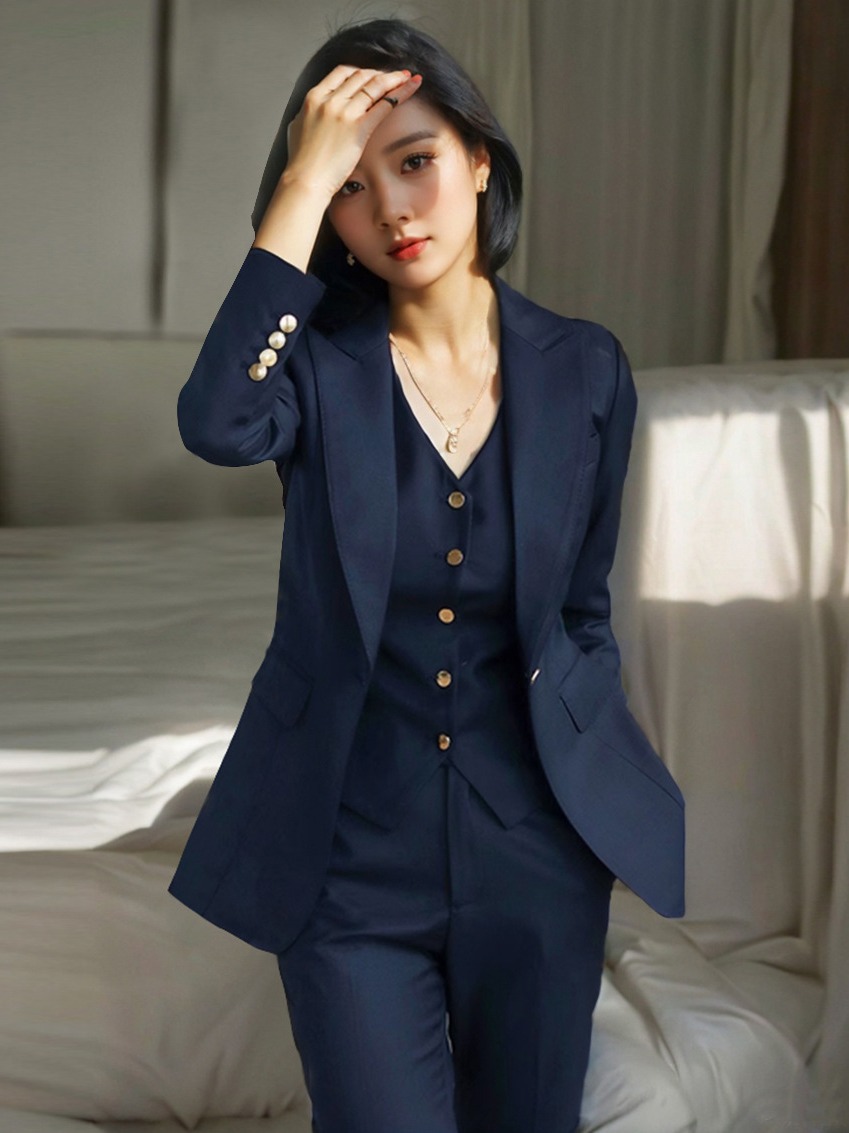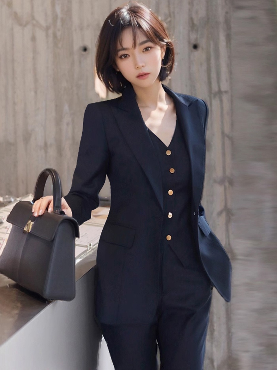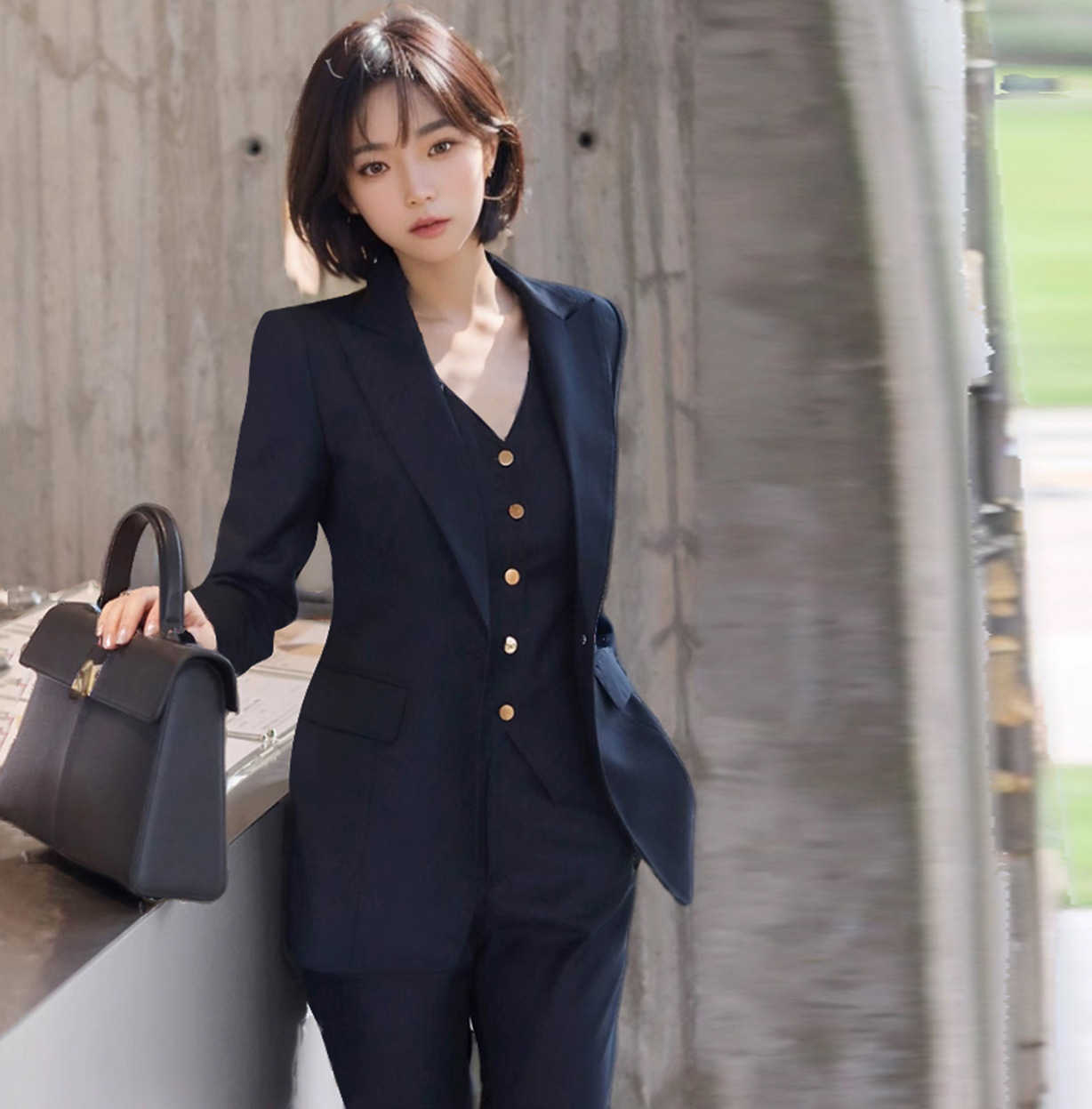 [Экспорт в Японию] Шерстяной костюм из трех частей, облегая костюм, жилет, расклешенные брюки, женский президент, профессиональный костюм