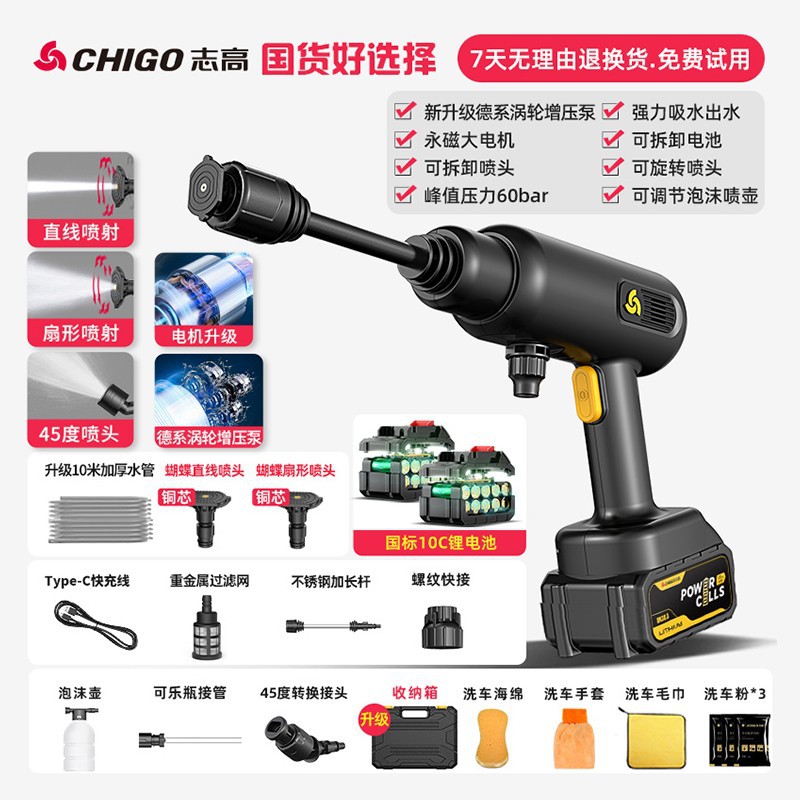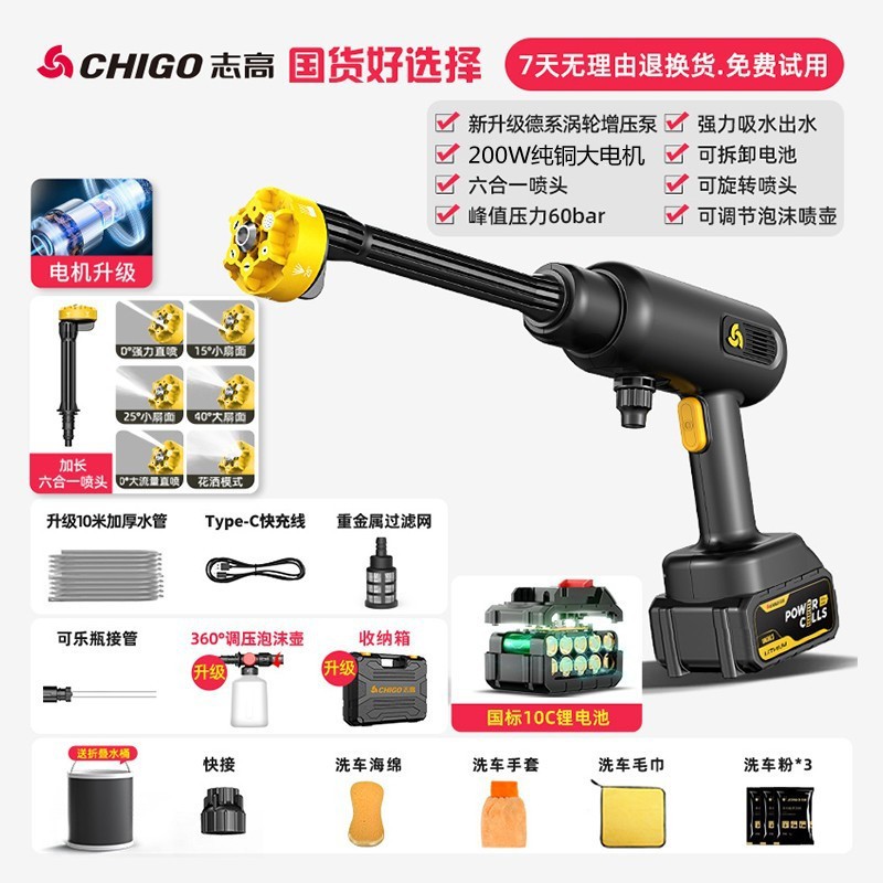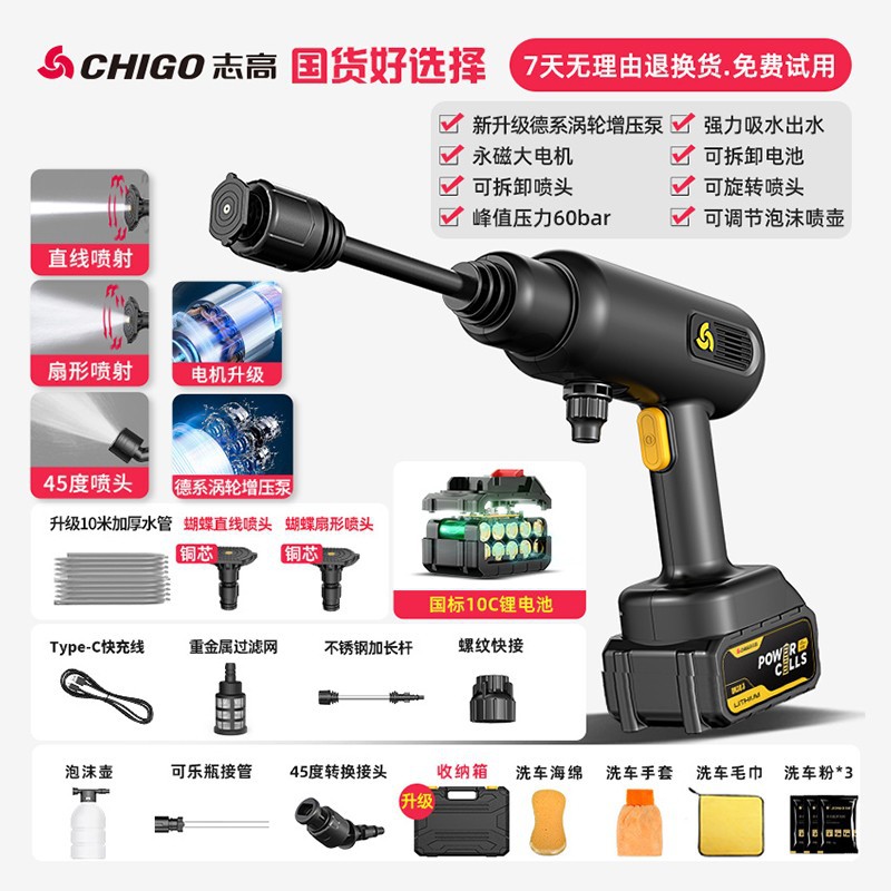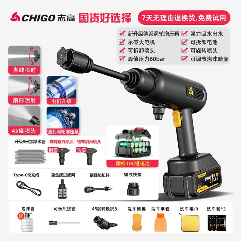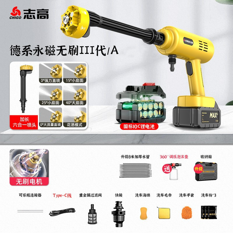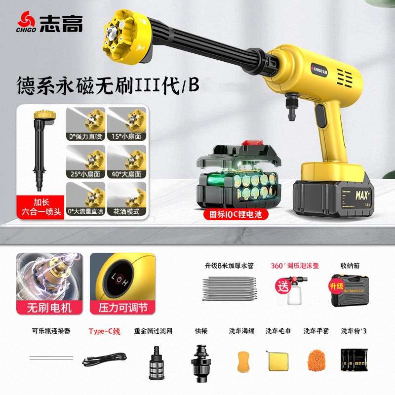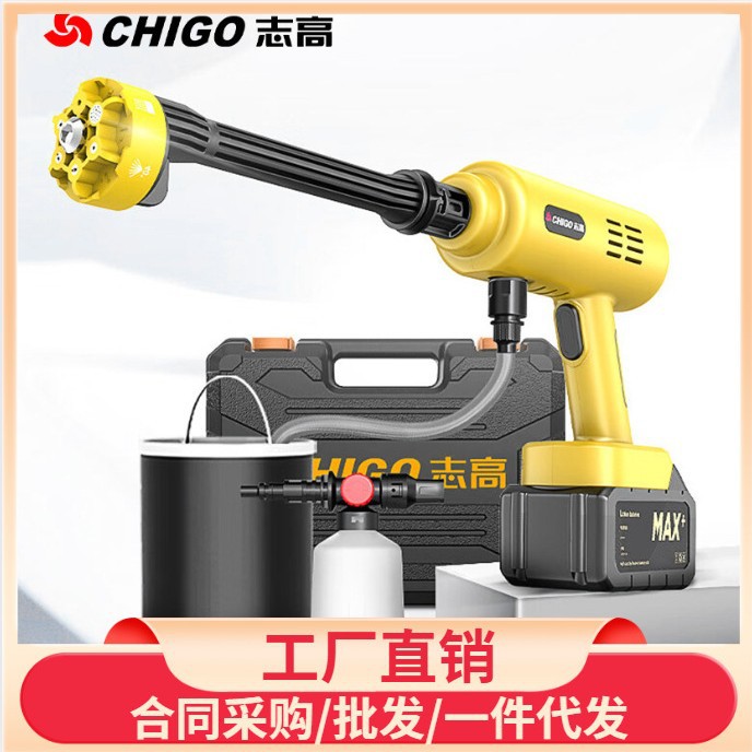 Chigo Беспроводная Автомойка Бытовой водяной пистолет Литиевая батарея Артефактная щетка Портативный высоковольтный пенопластовый горшок высокой мощности