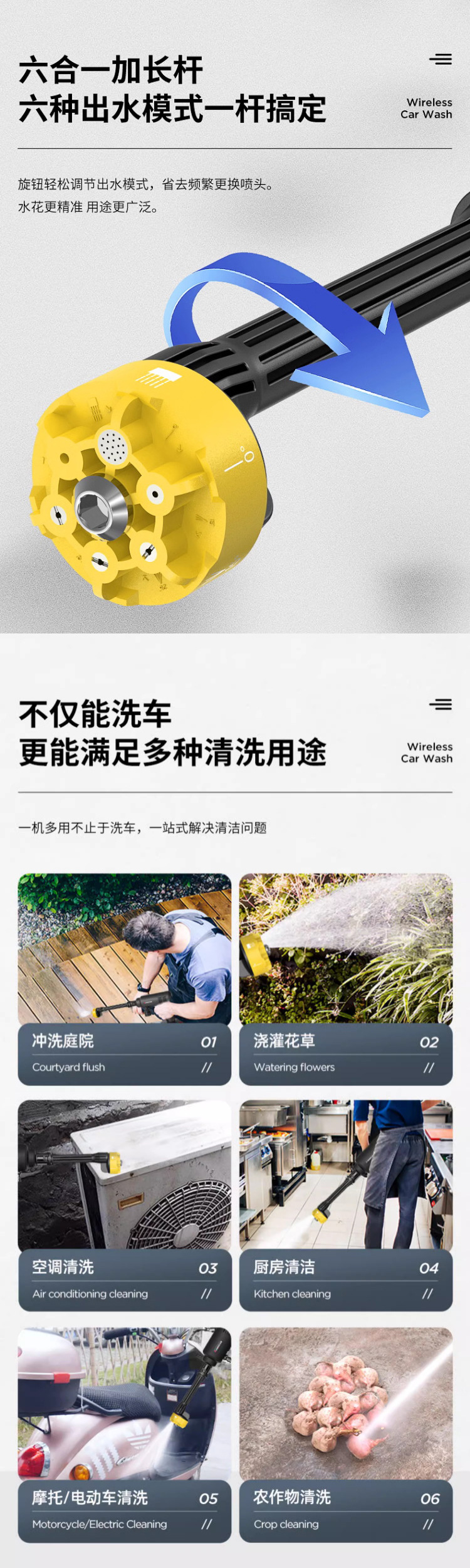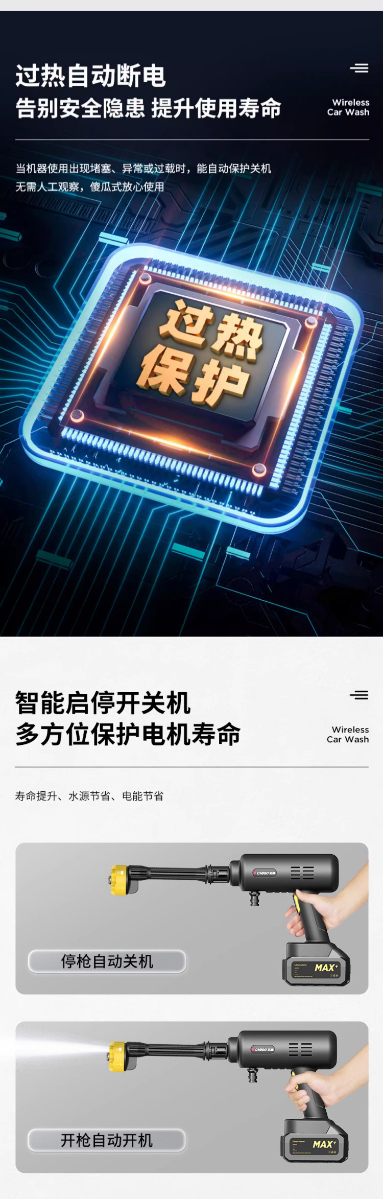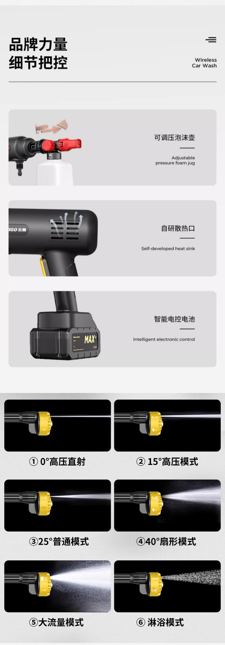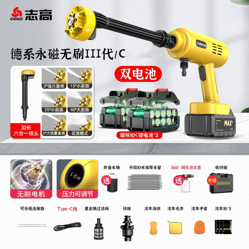 Chigo Беспроводная Автомойка Бытовой водяной пистолет Литиевая батарея Артефактная щетка Портативный высоковольтный пенопластовый горшок высокой мощности