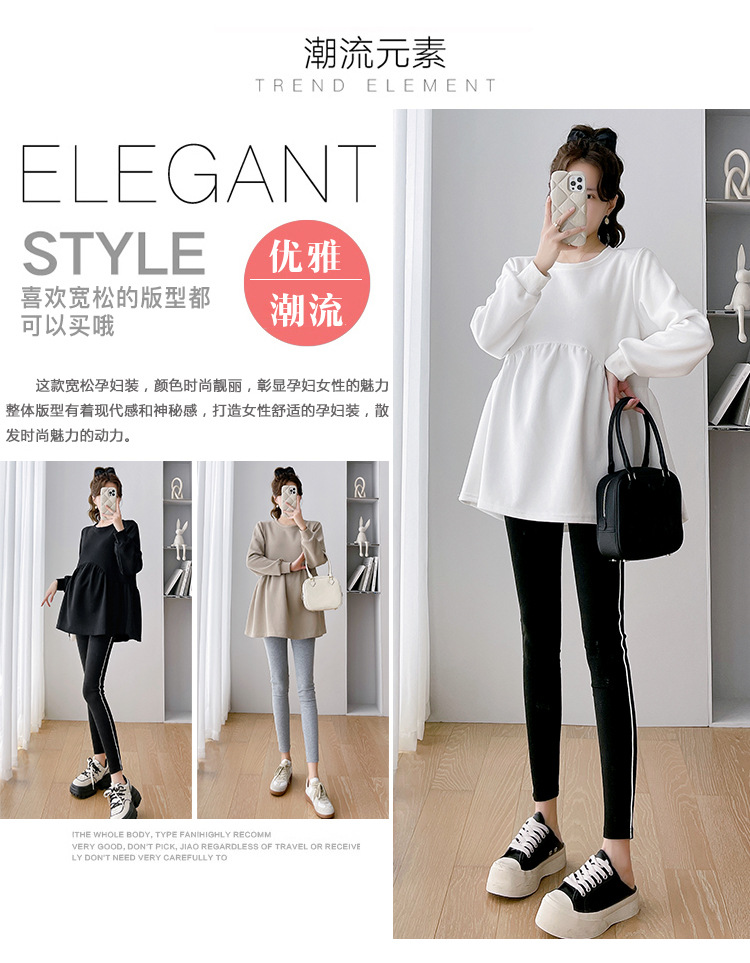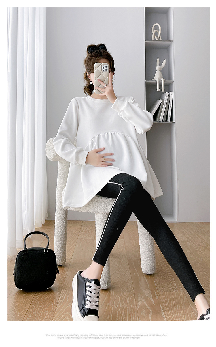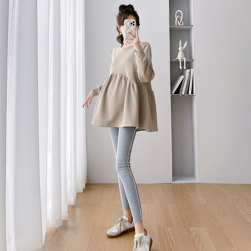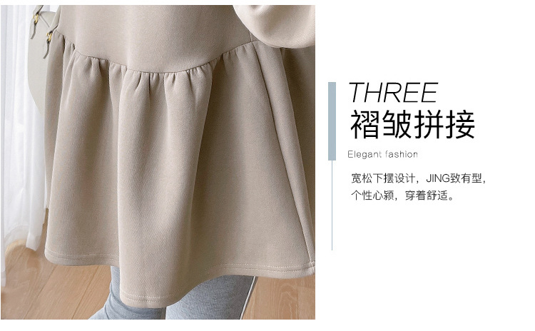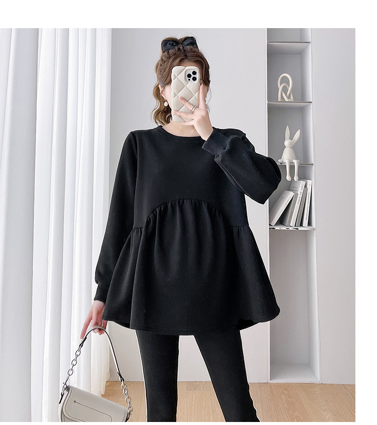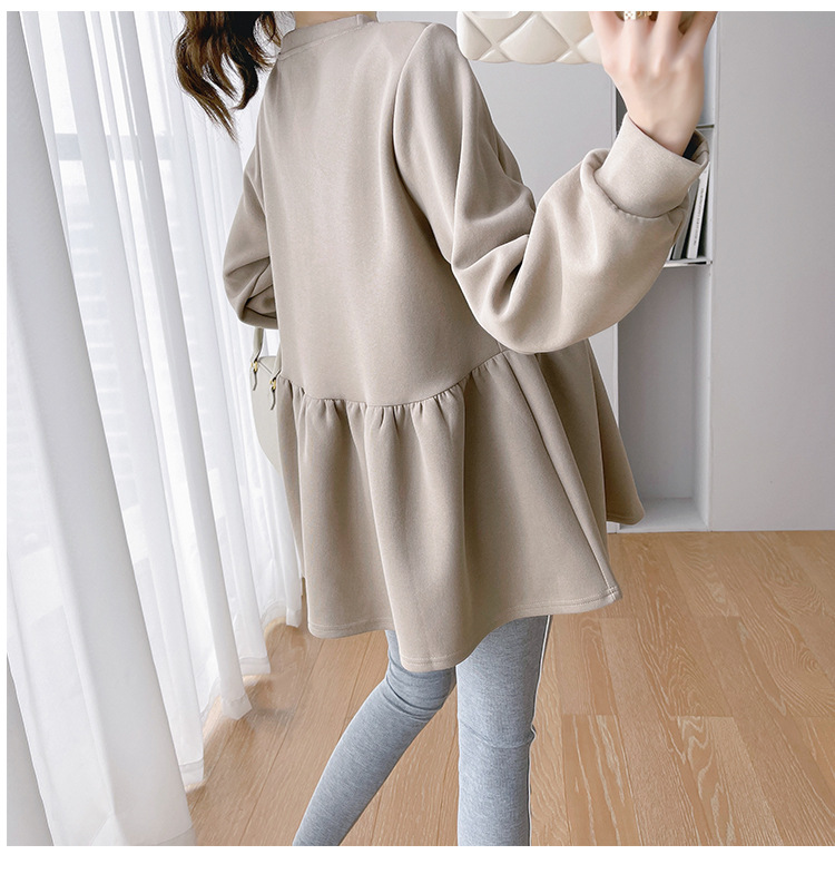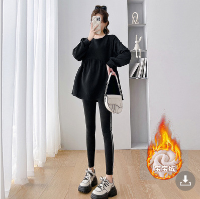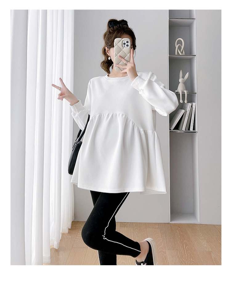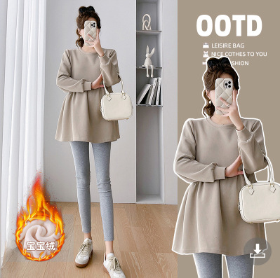 Осенняя одежда для беременных 2023: топ-бэбидолл, осенне-зимний свитшот в корейском стиле, свободный топ с круглым вырезом и флисовой подкладкой