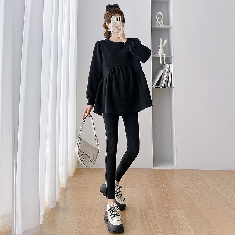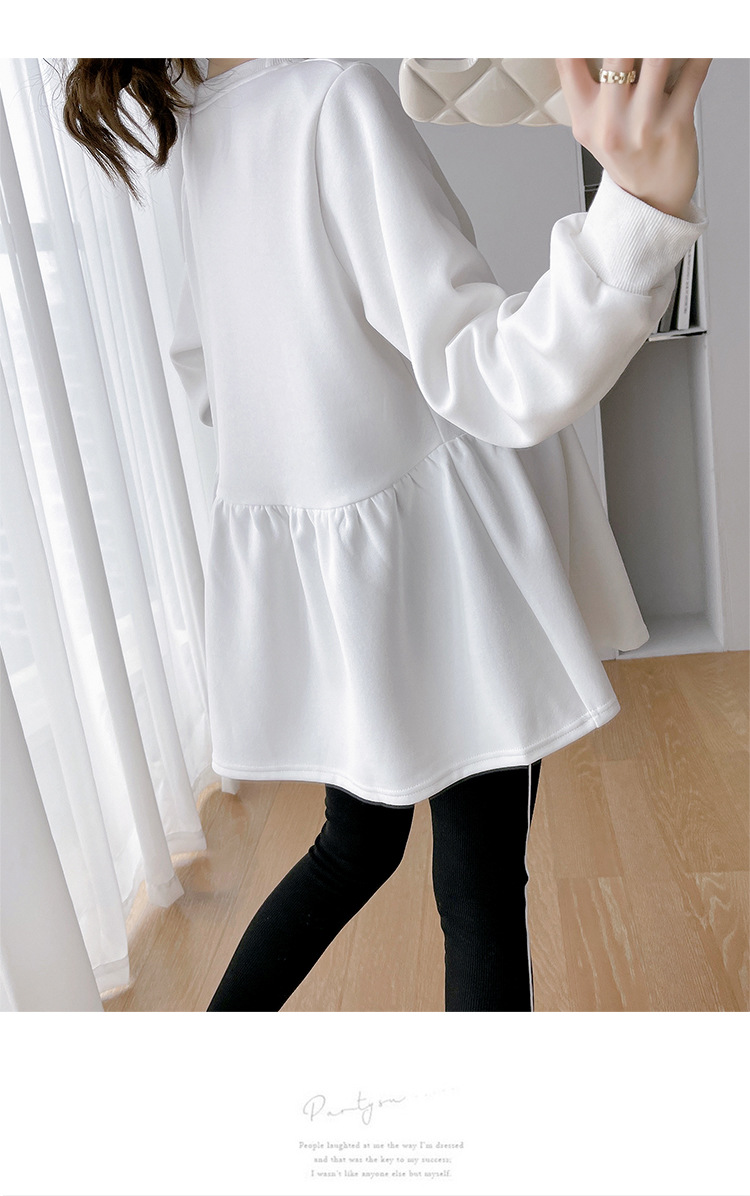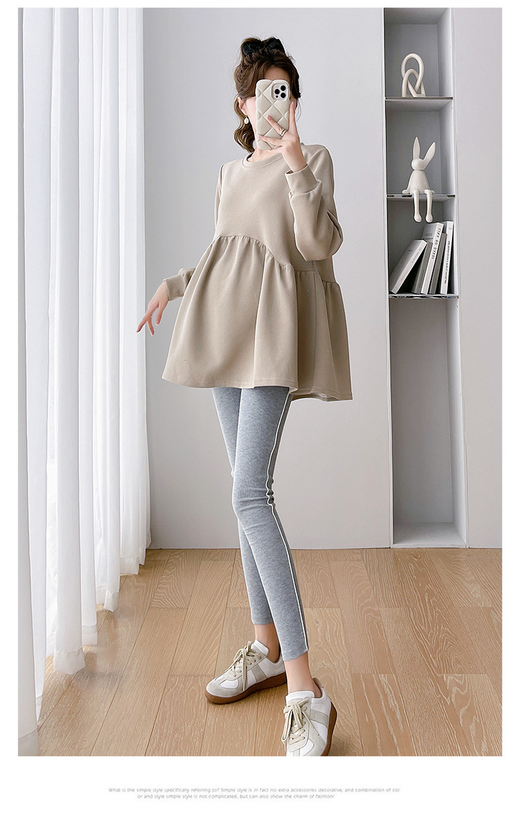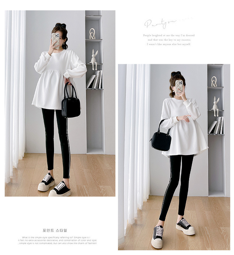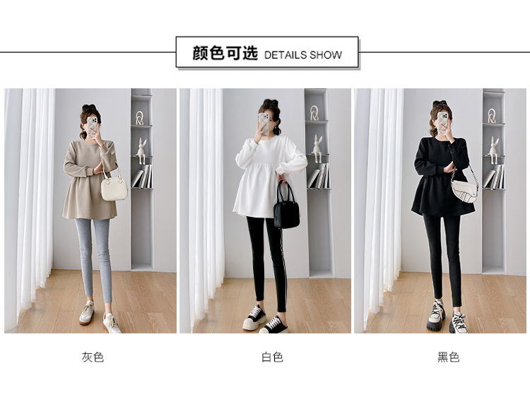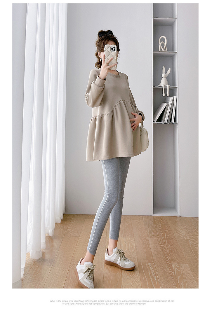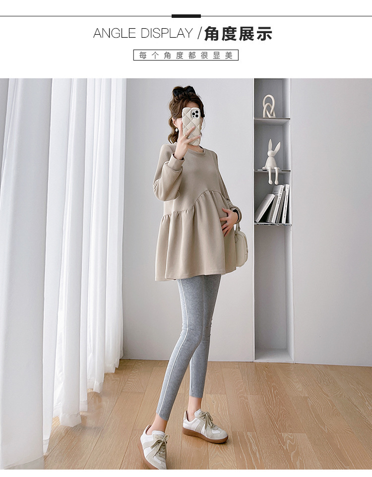 Осенняя одежда для беременных 2023: топ-бэбидолл, осенне-зимний свитшот в корейском стиле, свободный топ с круглым вырезом и флисовой подкладкой