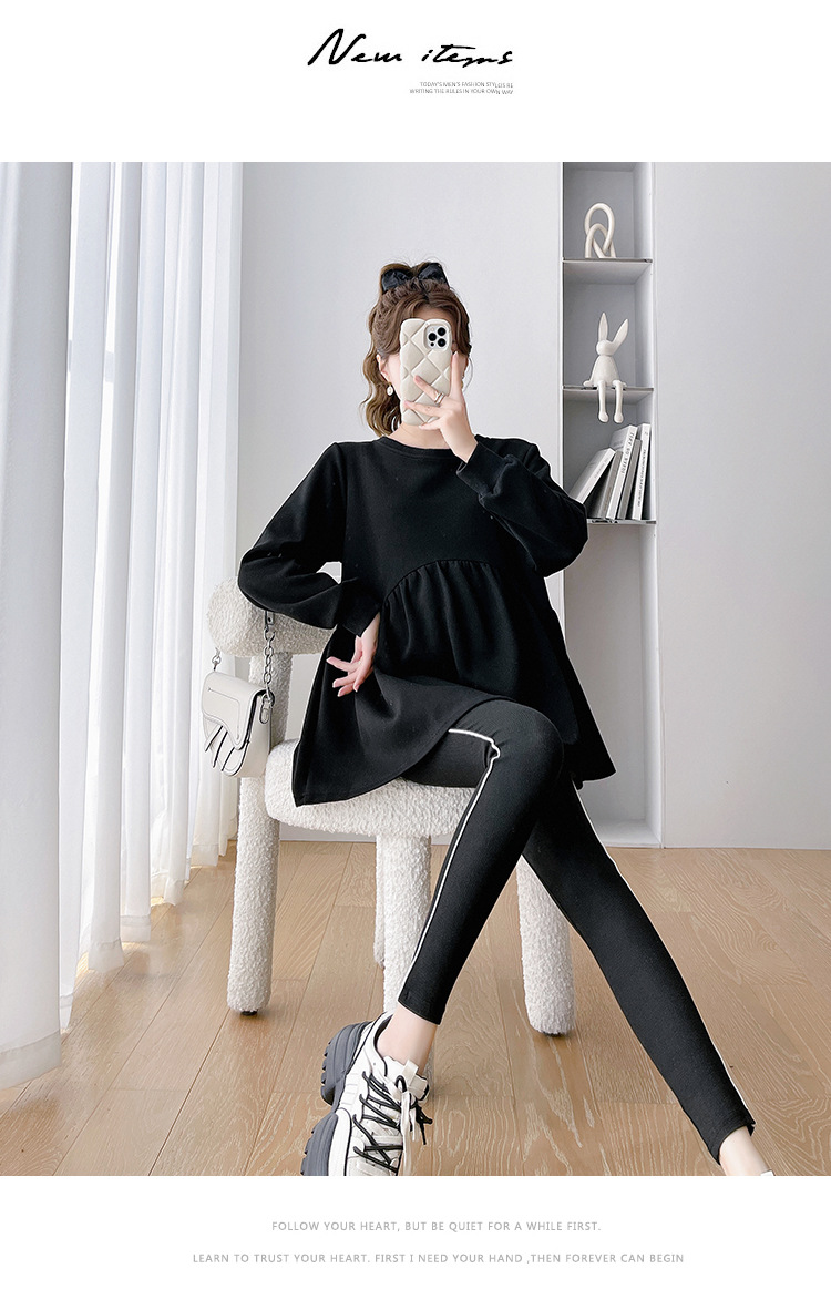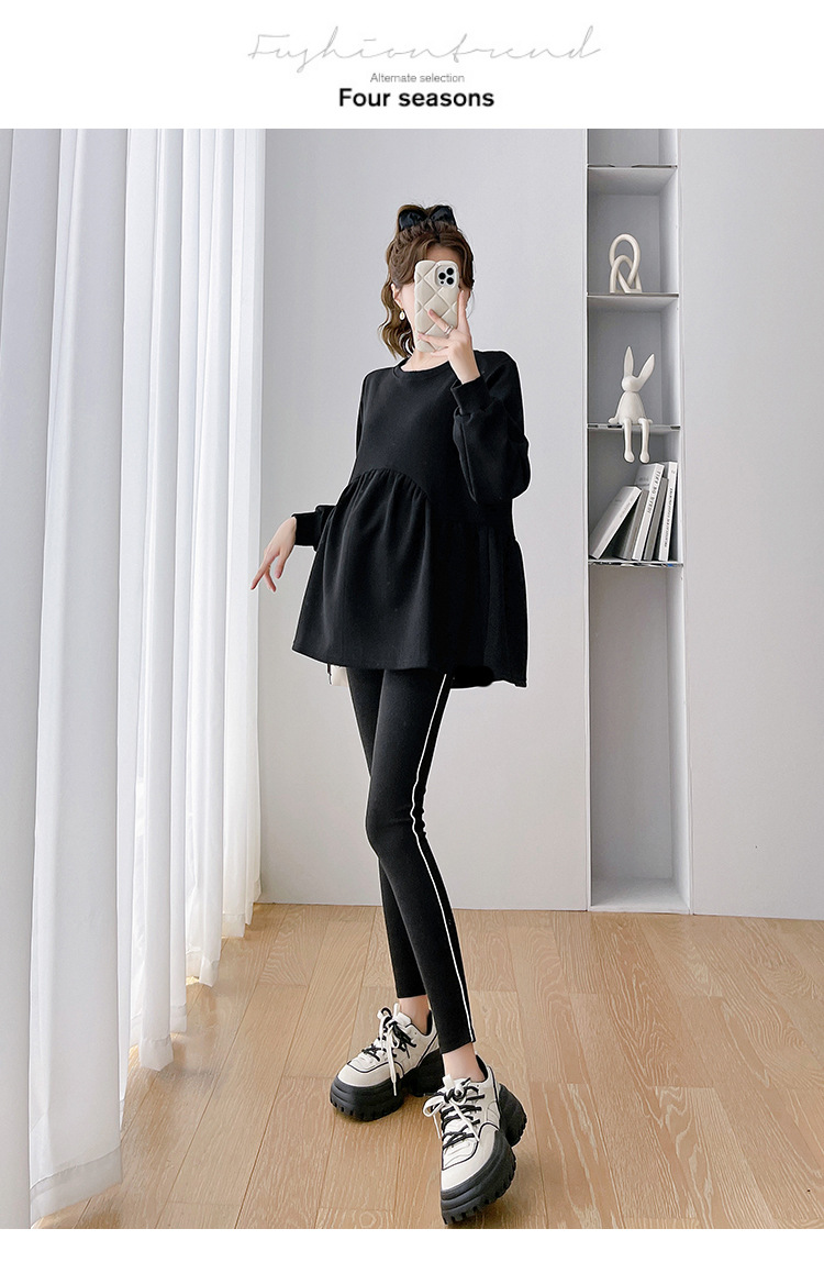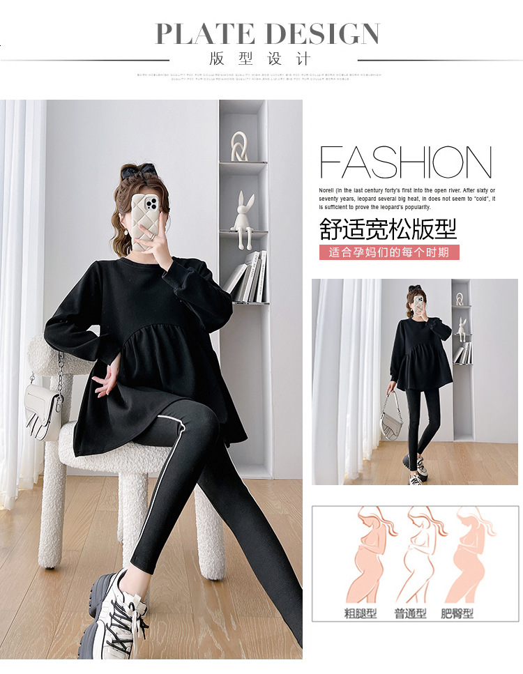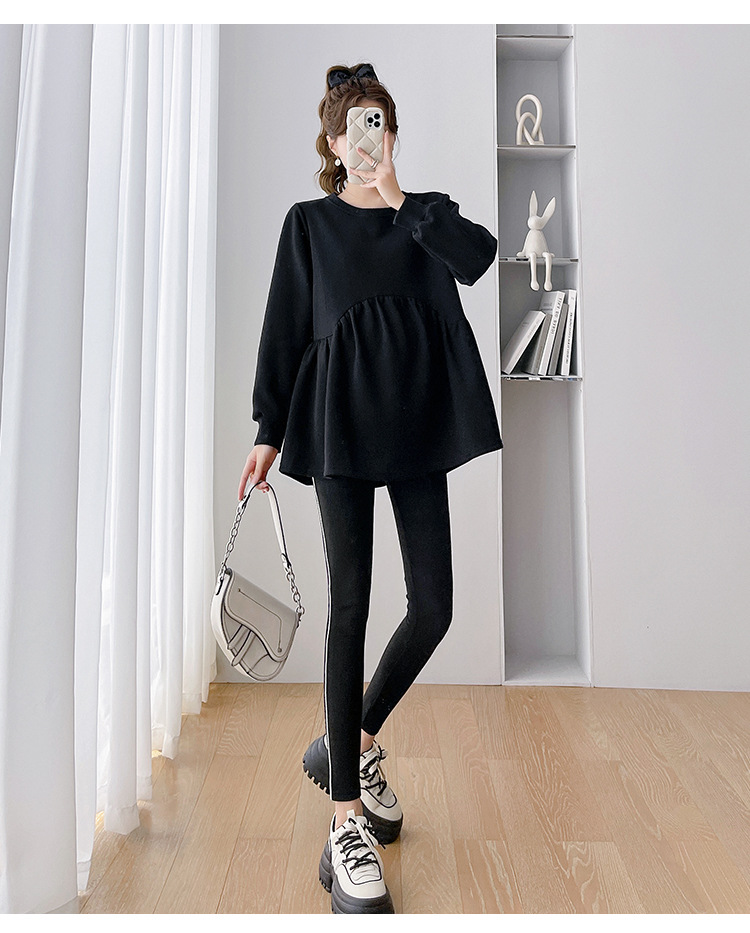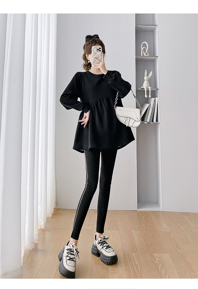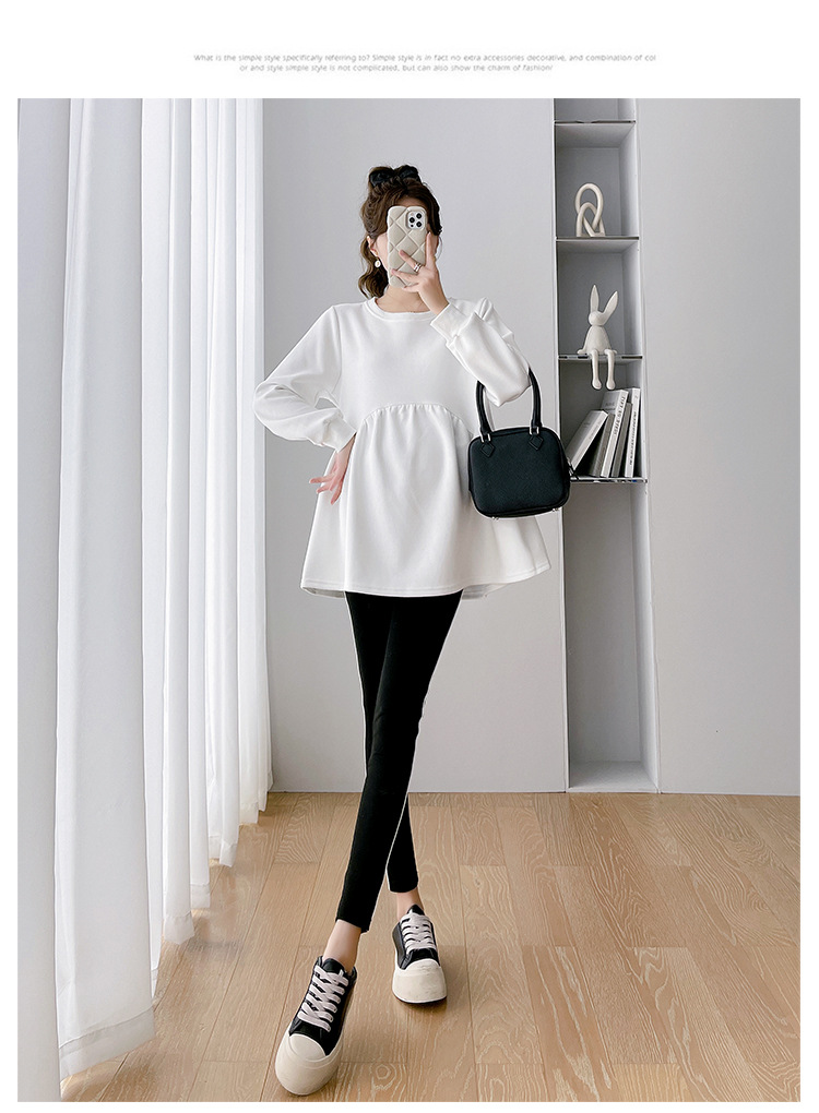 Осенняя одежда для беременных 2023: топ-бэбидолл, осенне-зимний свитшот в корейском стиле, свободный топ с круглым вырезом и флисовой подкладкой