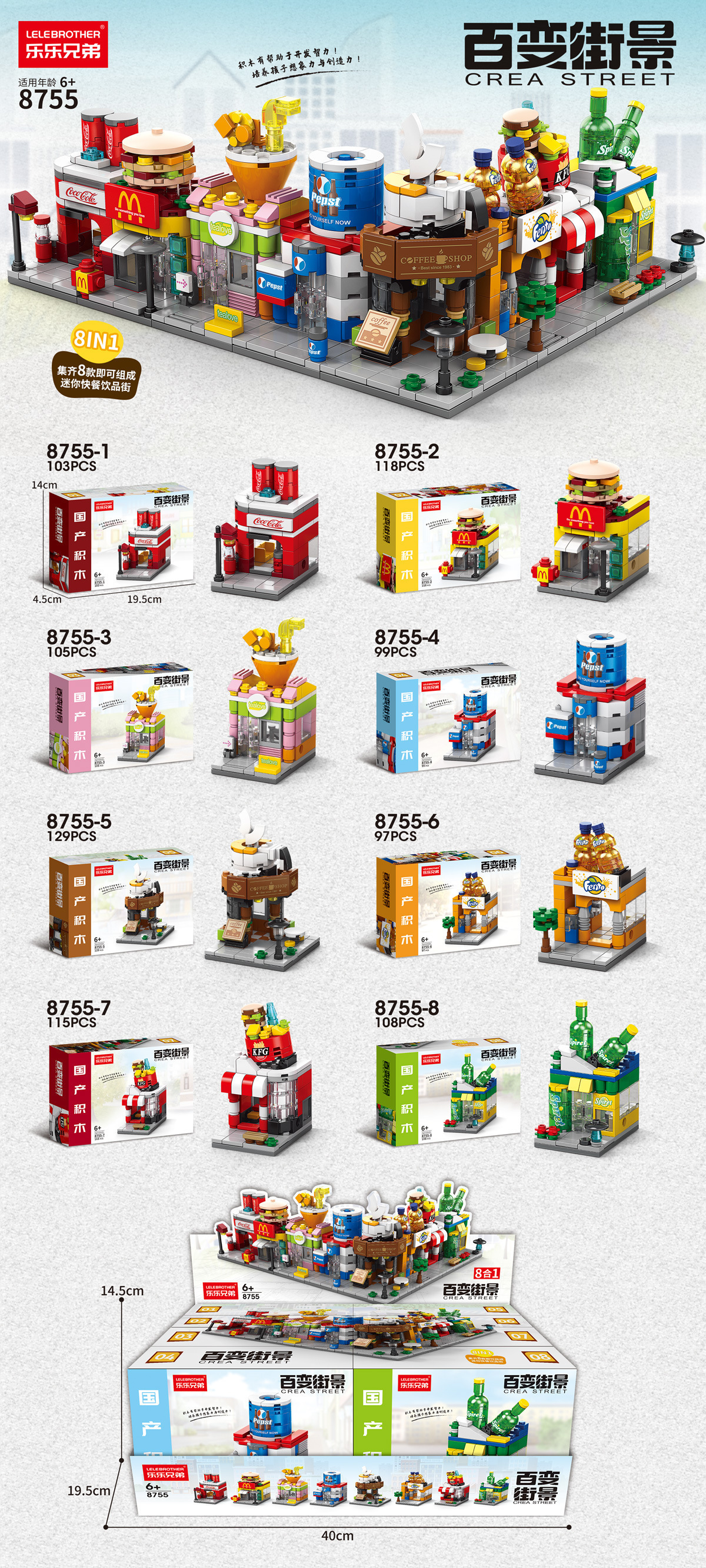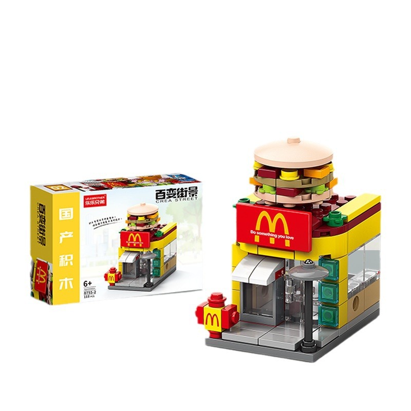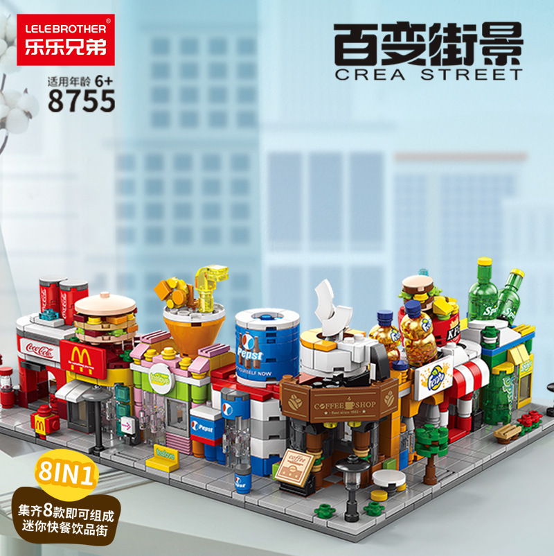 Разнообразные строительные блоки с мелкими частицами с видом на улицу, совместимые с напитками Lego, строительные блоки для ресторанов быстрого питания, модели украшений, детские развивающие игрушки