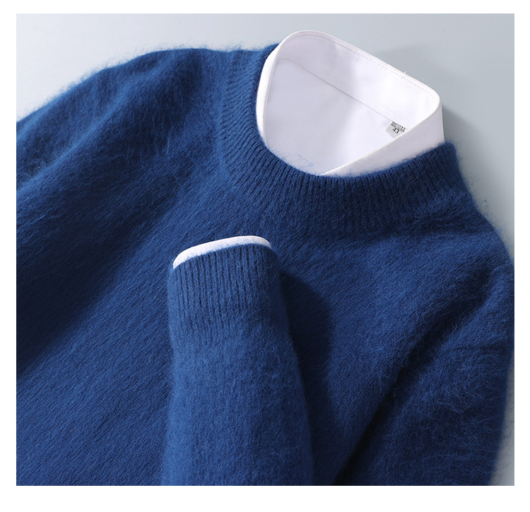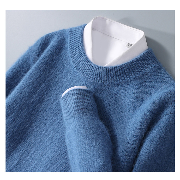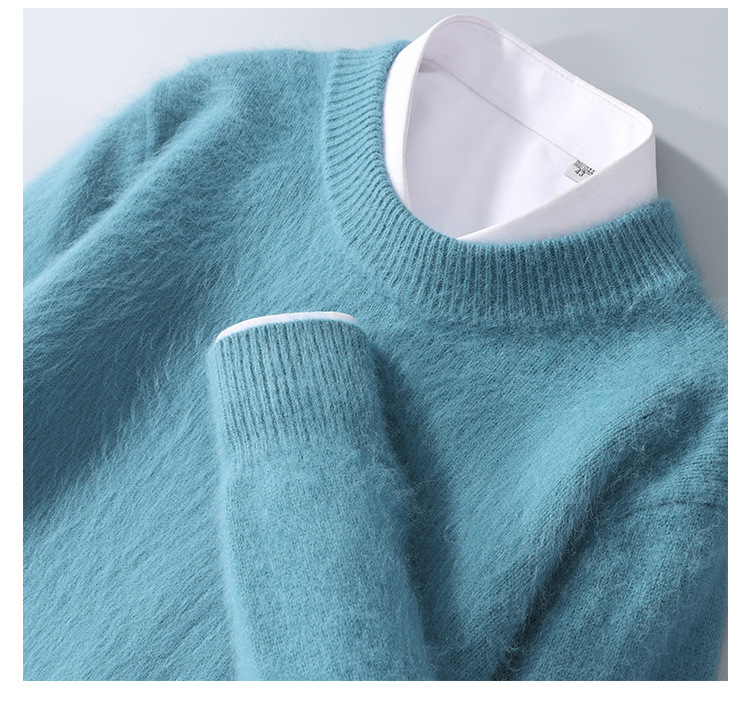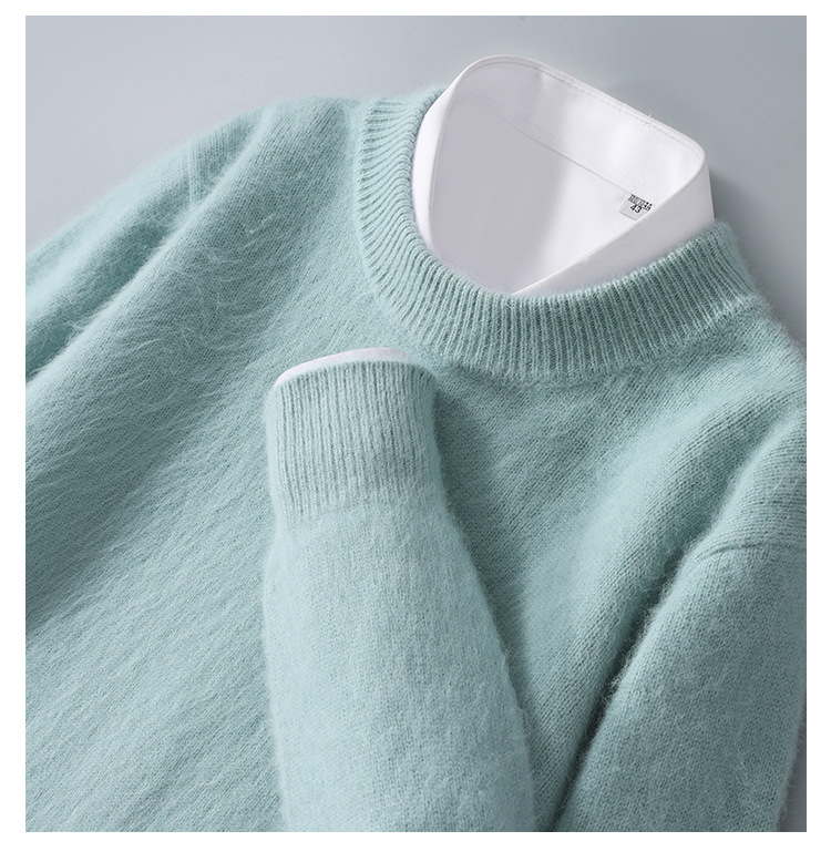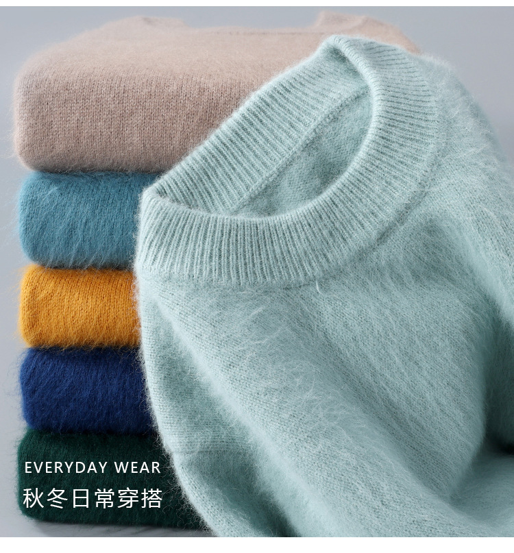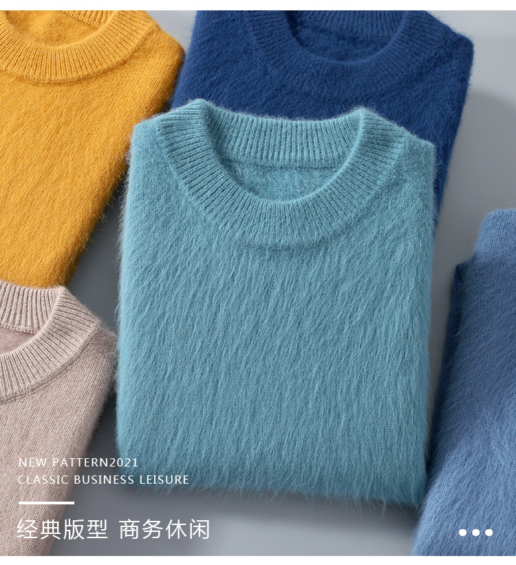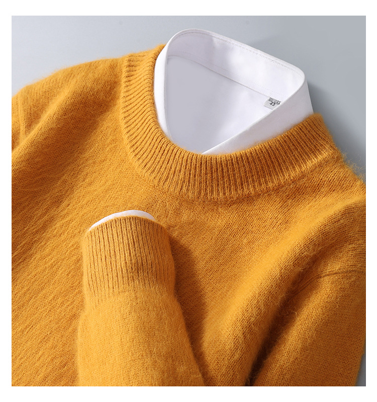 Осенне-Зимний новый кашемировый мужской свободный пуловер с круглым вырезом, утолщенный норковый свитер, теплый однотонный вязаный свитер, свитер