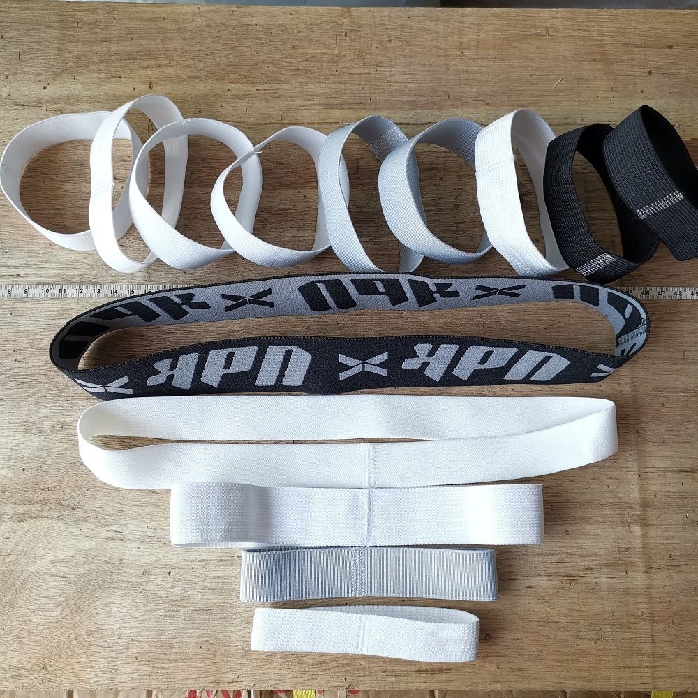 本产品按客人要求选择橡筋材质、宽度和长度,常用有针织橡筋和尼龙织带,宽度从1CM-7CM可选,长度 (周长)18CM以上均可,现货现做下单即可生产,如有特殊用途对材料有特殊要求可咨询客服。