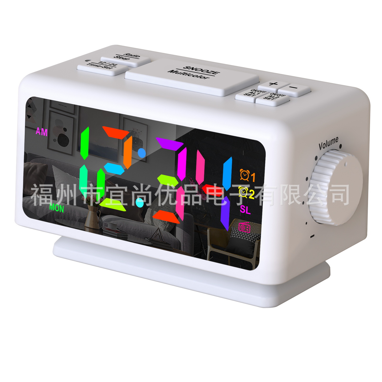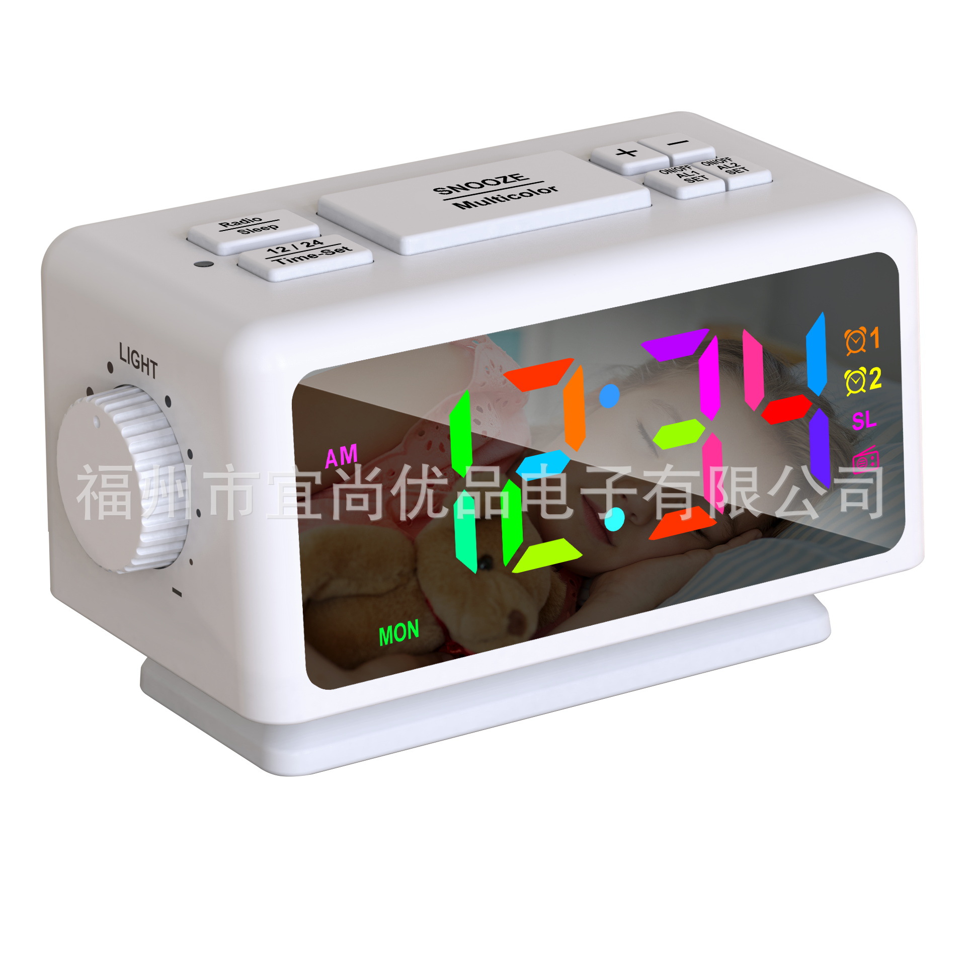 产品介绍:2024年新款美式欧式RGB炫彩收音机闹钟