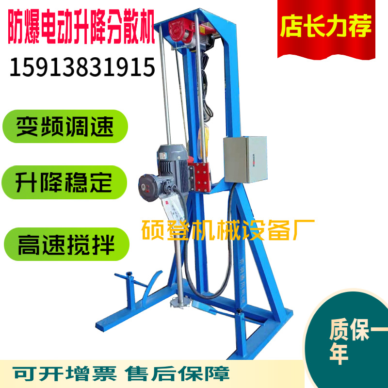 1、概述将分散机安装在带有升降功能的机架上,使分散机可以摇动升降手柄升降起来,将分散盘定格在适合的高度位置,实现更加理想的分散工艺效果。分散机具有升降功能以后,分散拉缸或料桶的进料和卸料操作起来非常的简便,拓宽分散机的使用范围,了作业效力,、更方便、更。