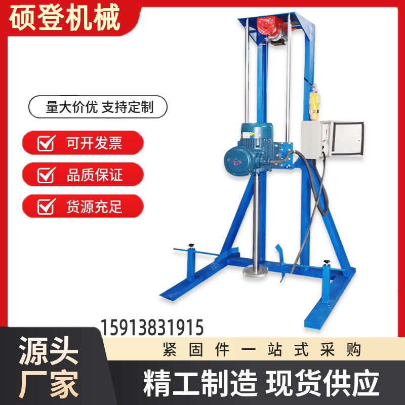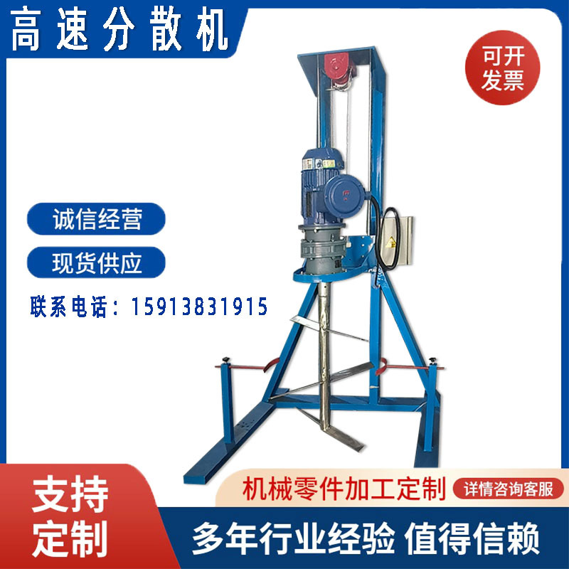 高速分散机/搅拌机,主要用于胶水、油漆、洗发水、指甲油等液体,或液体与粉体的搅拌、分散、溶解的一款混合设备,应用于涂料、染料、油墨、颜料、化妆品、树脂、胶粘剂、乳液、、石油、等领域的液体及液—粉相物料进行高速的搅拌、溶解和分散,分散机又称高速搅拌机。其升降形式不同可分为液压、气动、电动、手摇等升降方式;此款分散机采用的就是电动型升降方式,以0.55KW,0.75KW,1.1KW、1.5KW、2.2KW、3KW、4KW、5.5KW、等规格为主,占地面积小,操作简单;