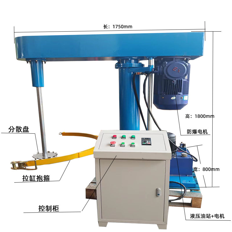 5、高速分散机具有液压升降、360度回转、无级调速等多种功能。
