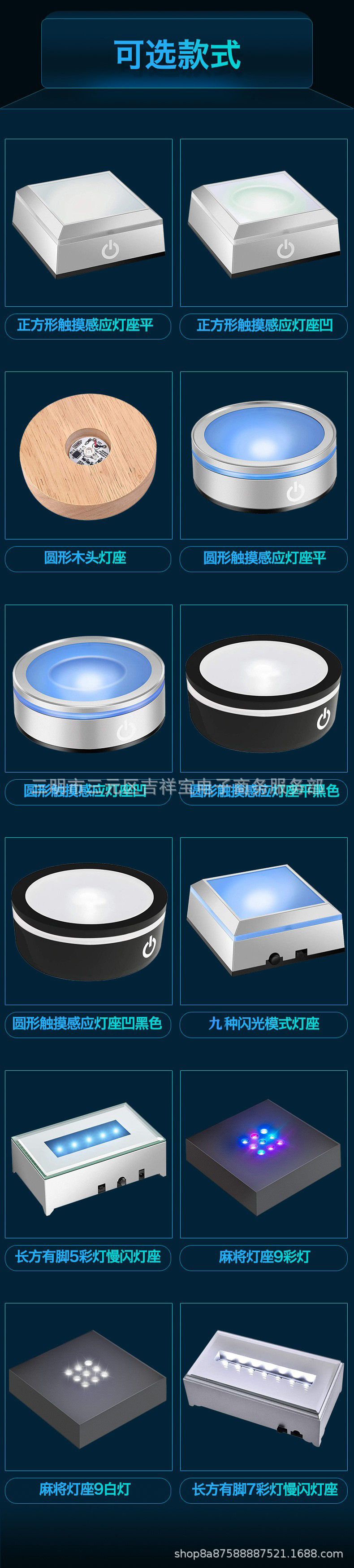Переключатель ремня твердой древесины 6 см круглый нижний красочный; 10 см твердая древесина круглое дно красочный переключатель ремня; Квадратное основание 7 см-теплый свет; Квадратное основание 10 см-теплый свет; 8 см круглый сенсорный чувствительный держатель лампы-плоская поверхность; 8 см круглый сенсорный чувствительный держатель лампы-вогнутый; Держатель лампы с девятью режимами вспышки-квадратный серебристый; 9 цвет маджонг держатель лампы-черный