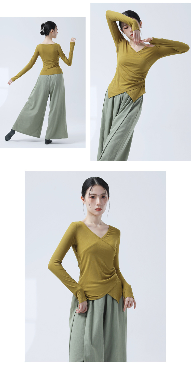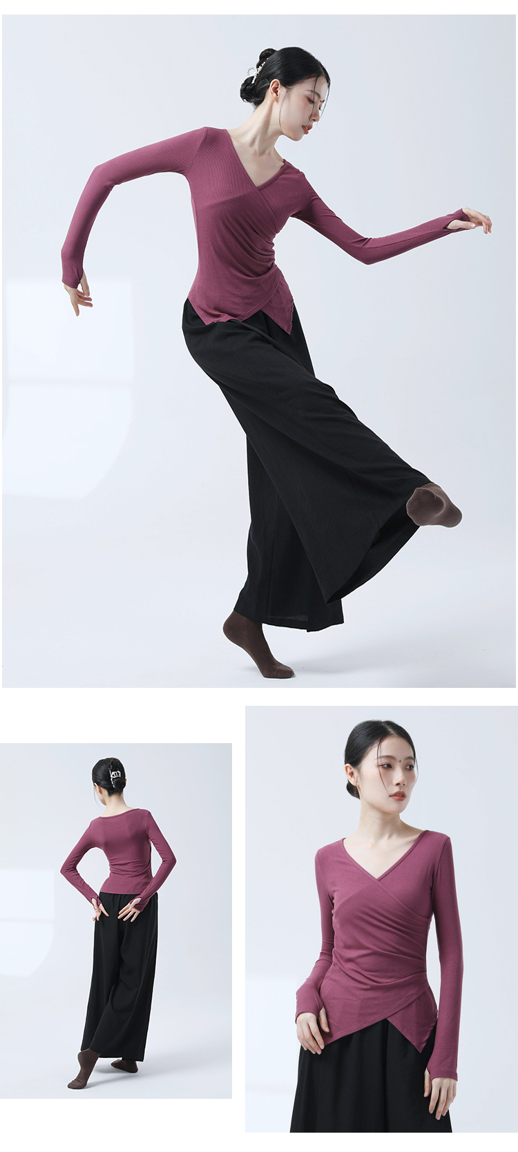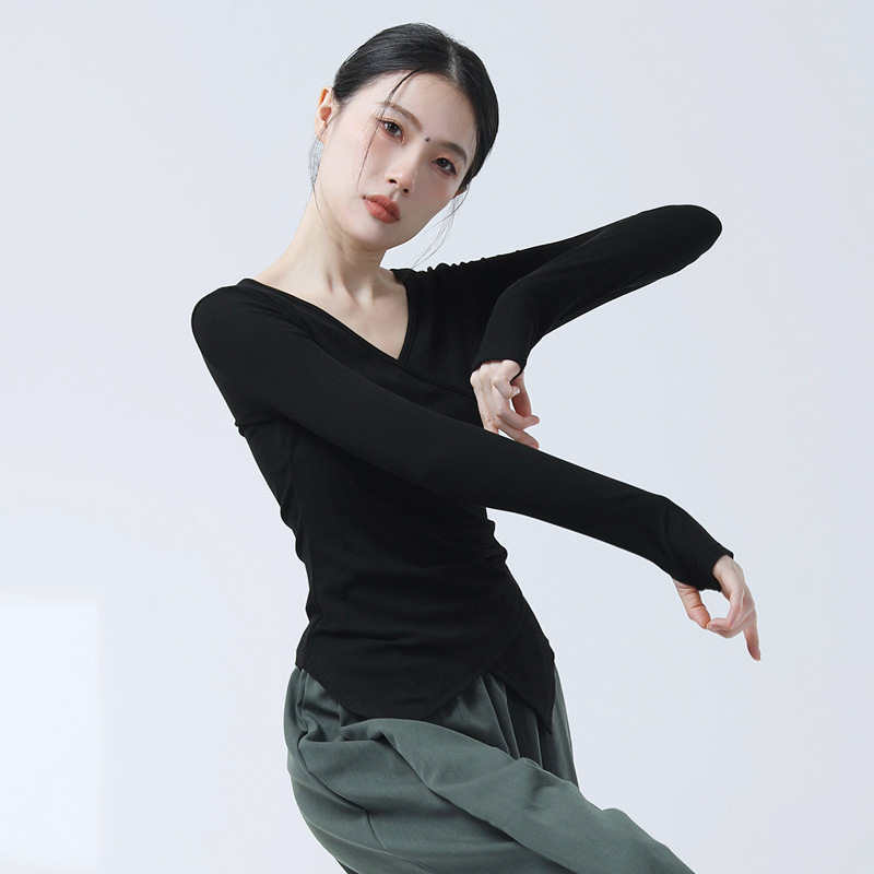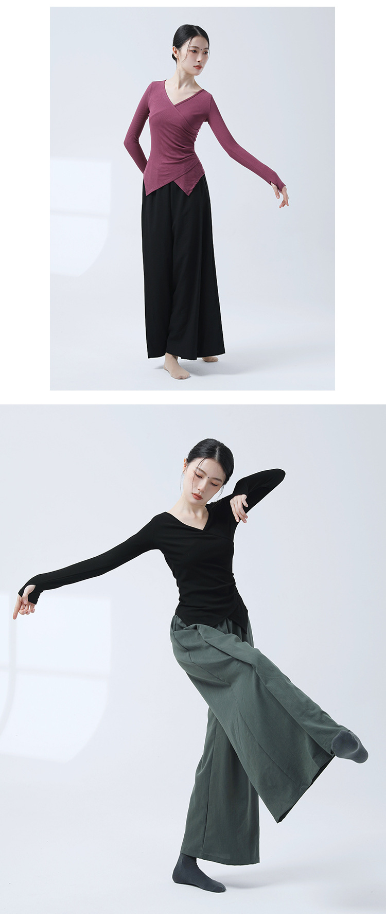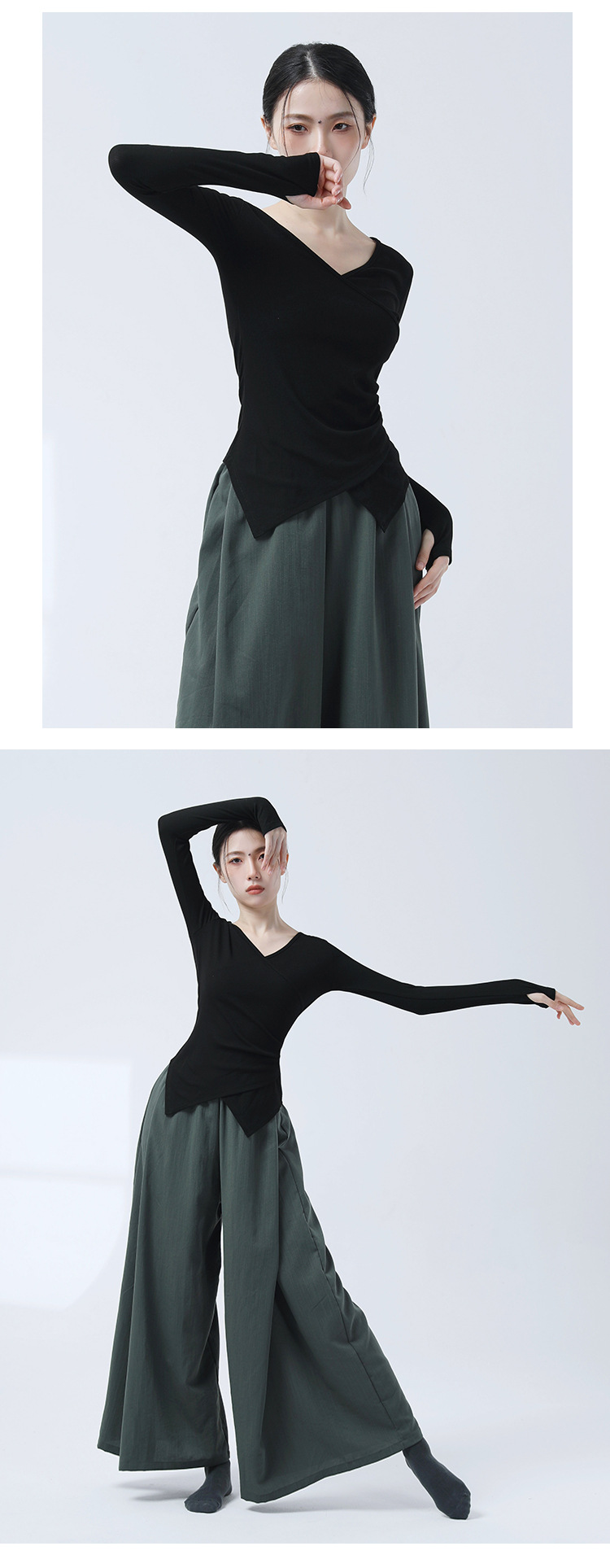 Одежда для современных танцев с V-образным вырезом и разрезом приталенный костюм с длинным рукавом для пальцев Женская китайская танцевальная одежда боди-арт Тестовая повседневная одежда
