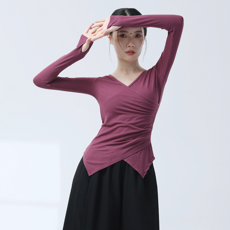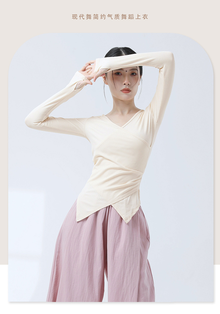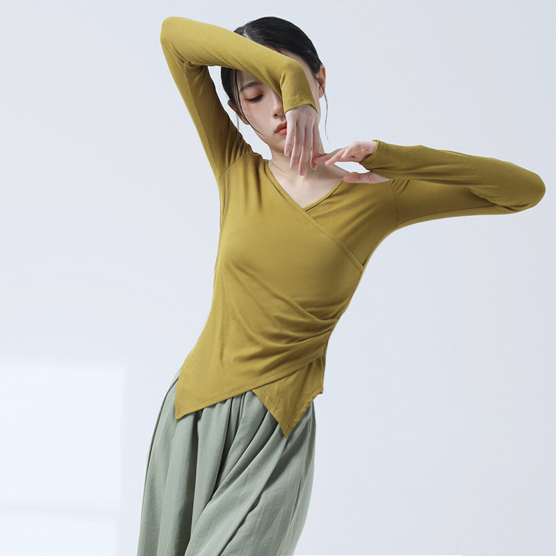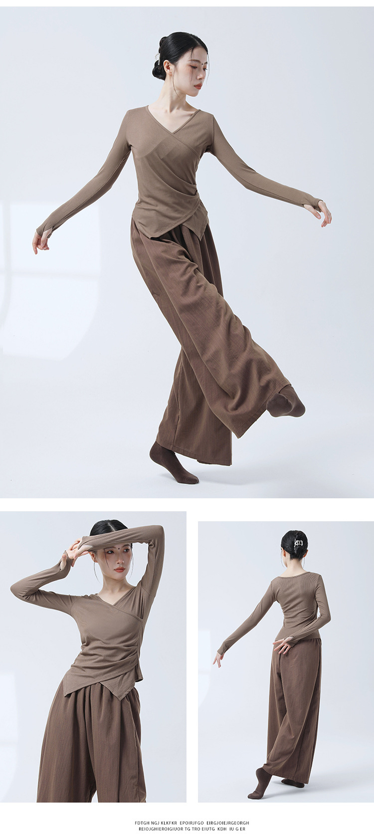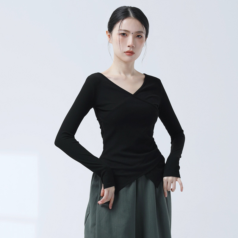 Одежда для современных танцев с V-образным вырезом и разрезом приталенный костюм с длинным рукавом для пальцев Женская китайская танцевальная одежда боди-арт Тестовая повседневная одежда