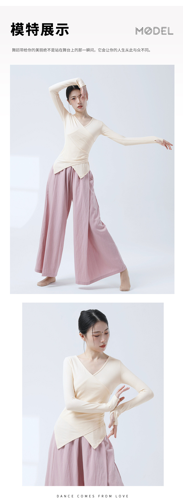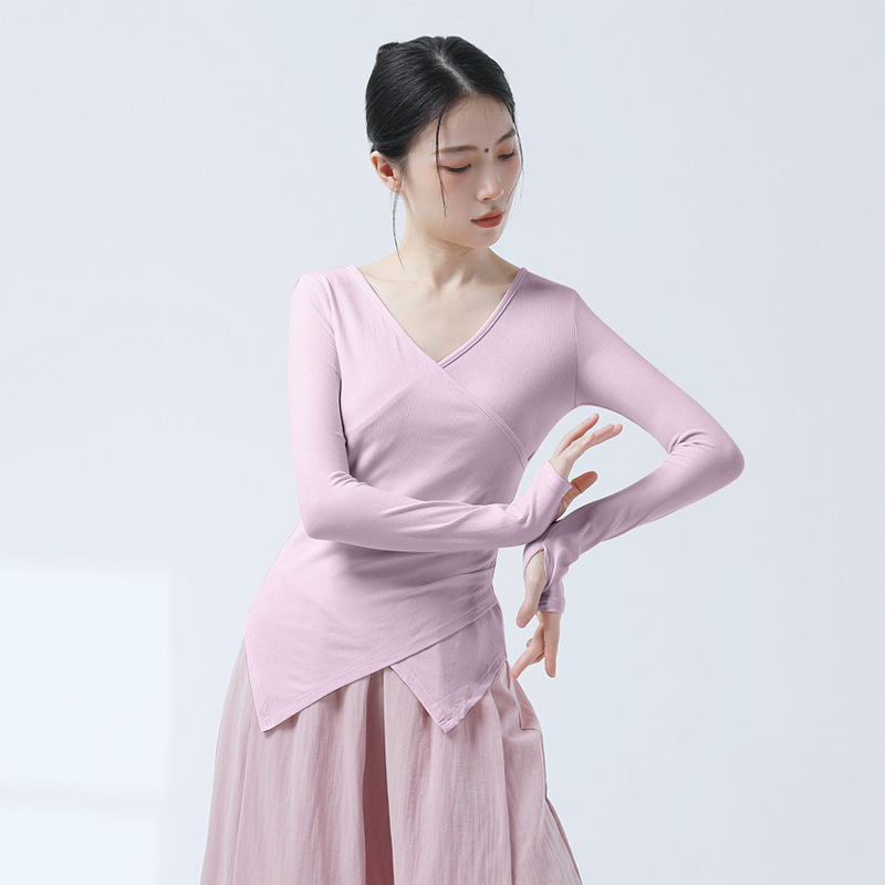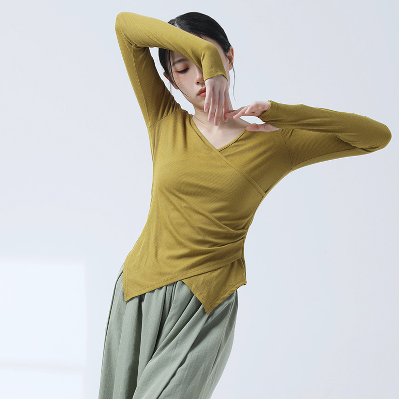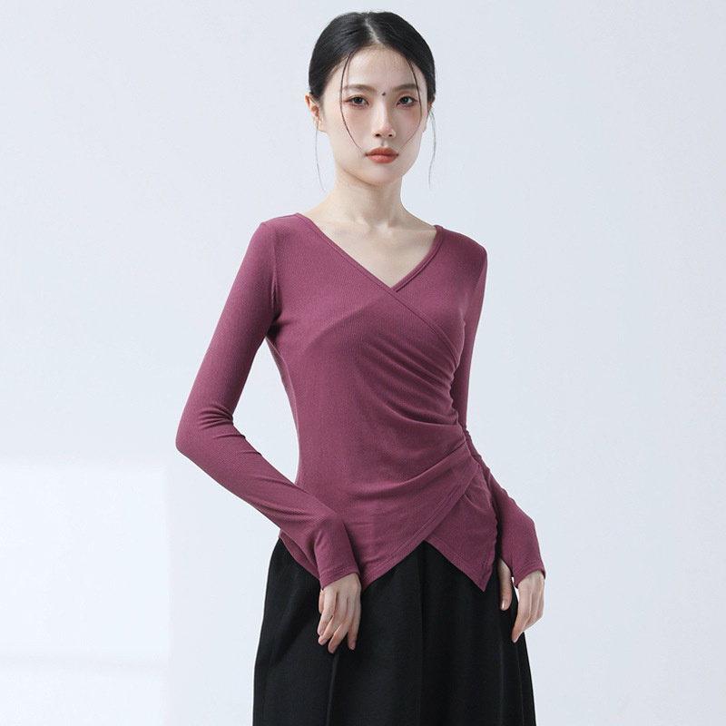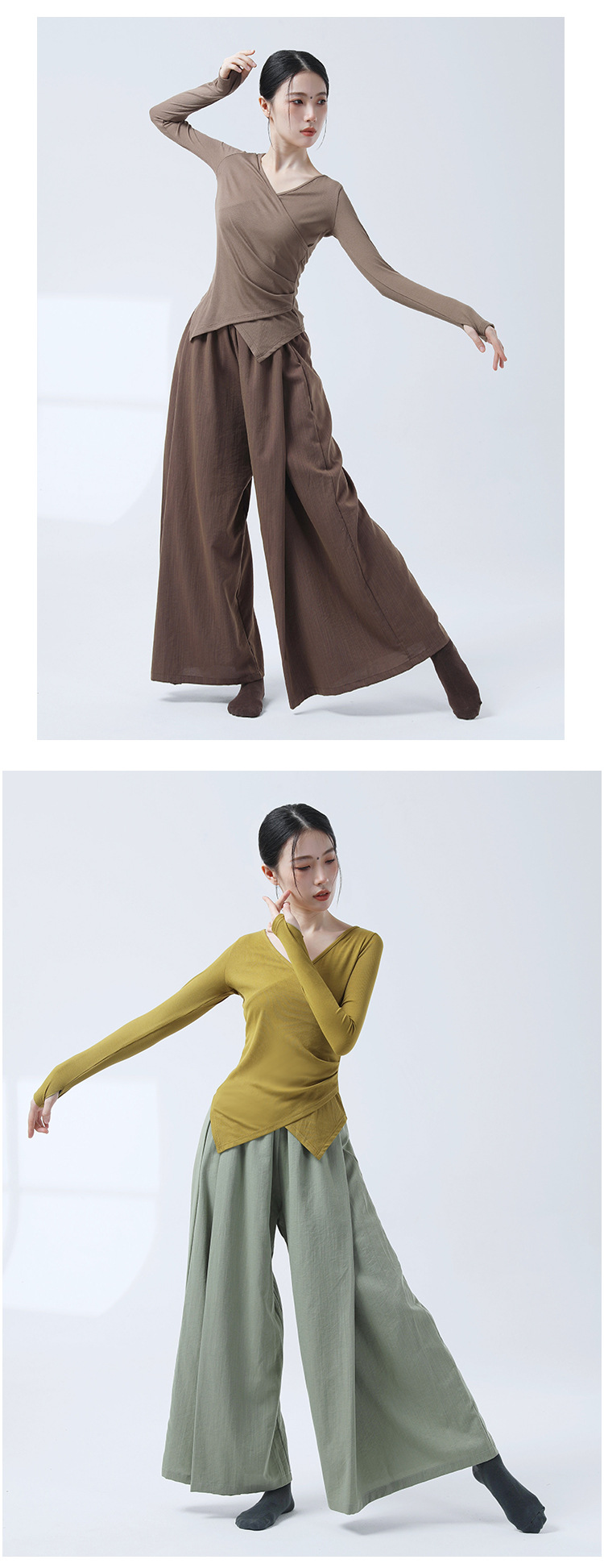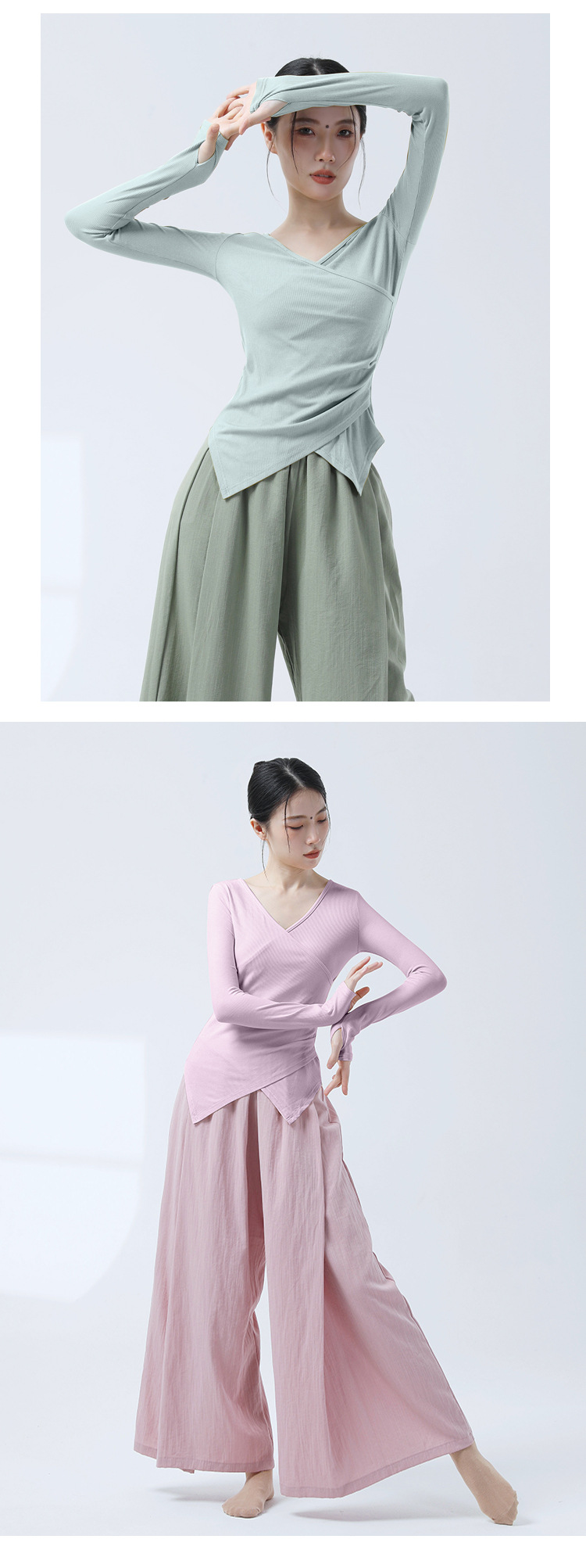 Одежда для современных танцев с V-образным вырезом и разрезом приталенный костюм с длинным рукавом для пальцев Женская китайская танцевальная одежда боди-арт Тестовая повседневная одежда