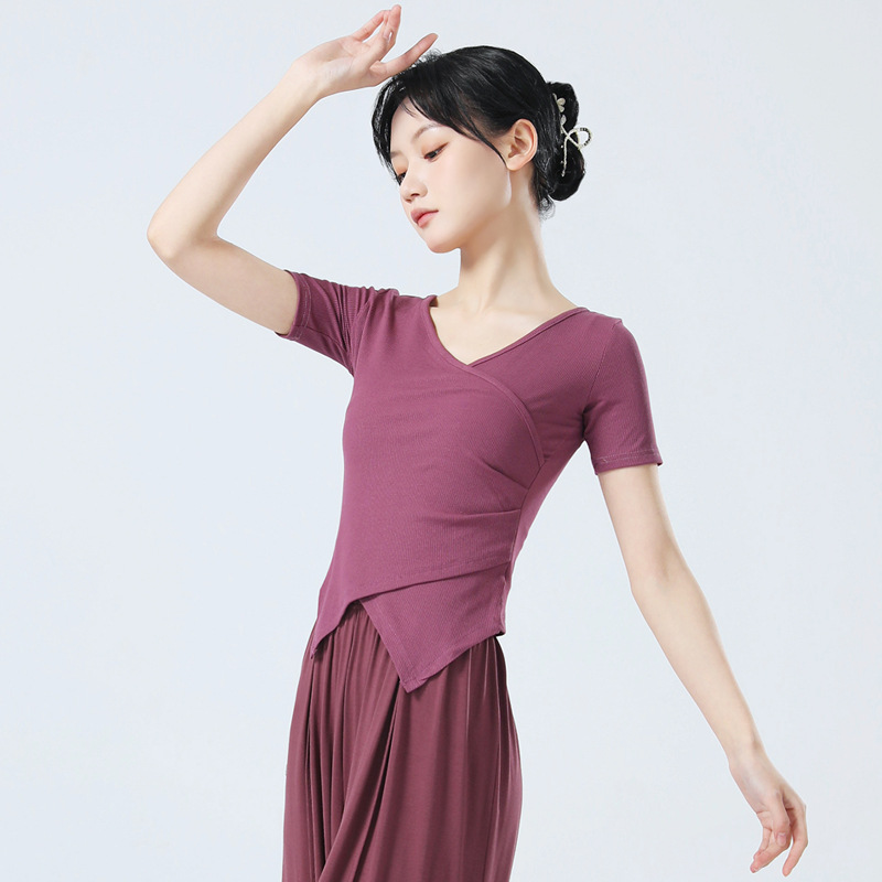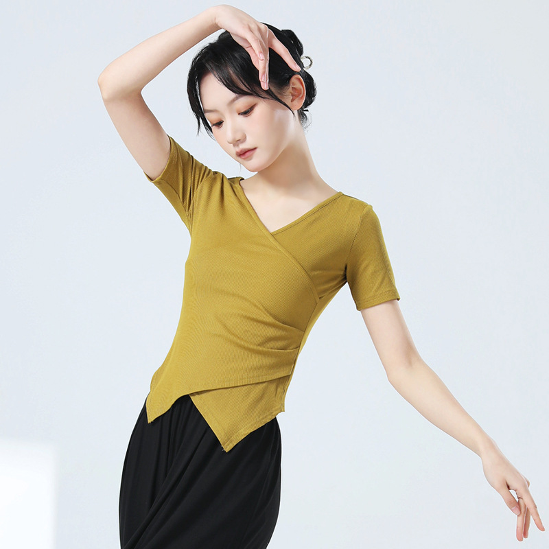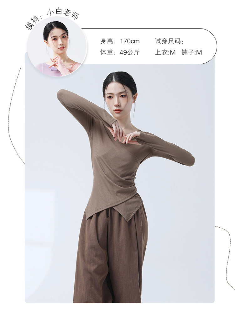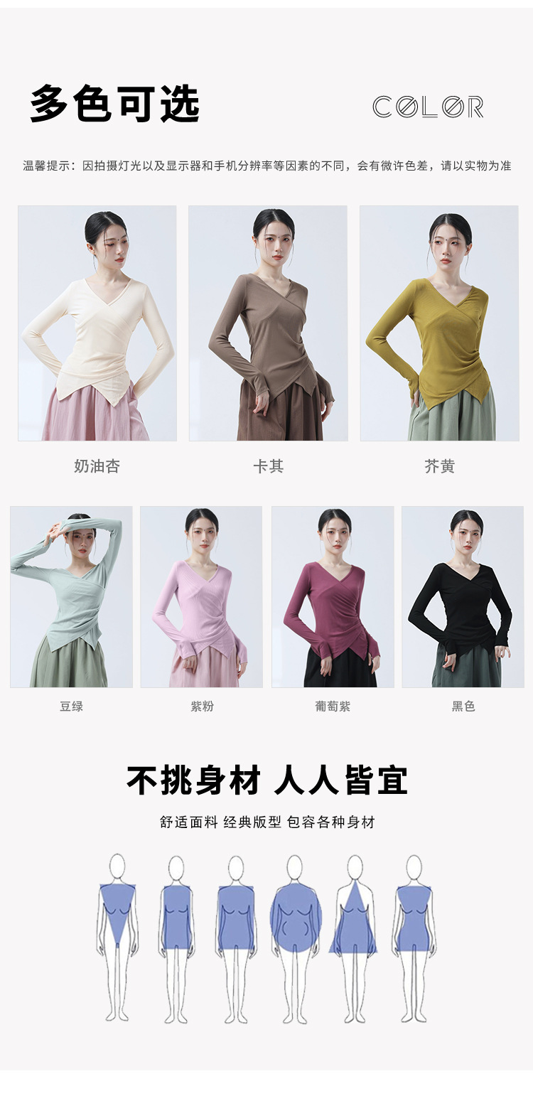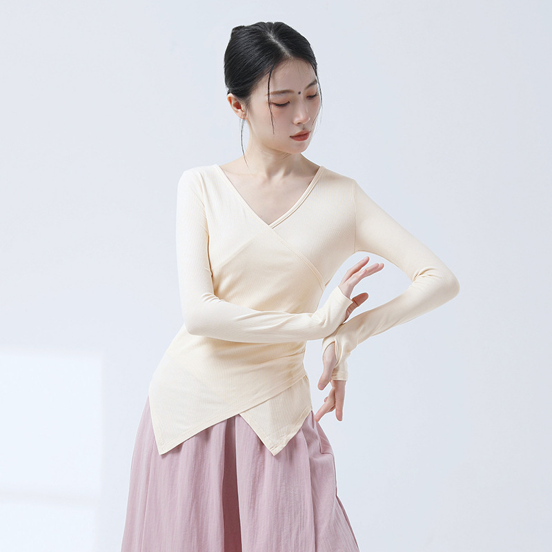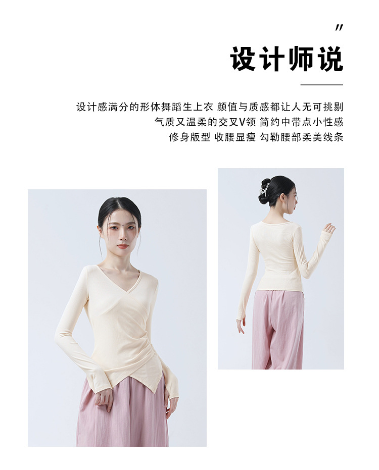 Одежда для современных танцев с V-образным вырезом и разрезом приталенный костюм с длинным рукавом для пальцев Женская китайская танцевальная одежда боди-арт Тестовая повседневная одежда