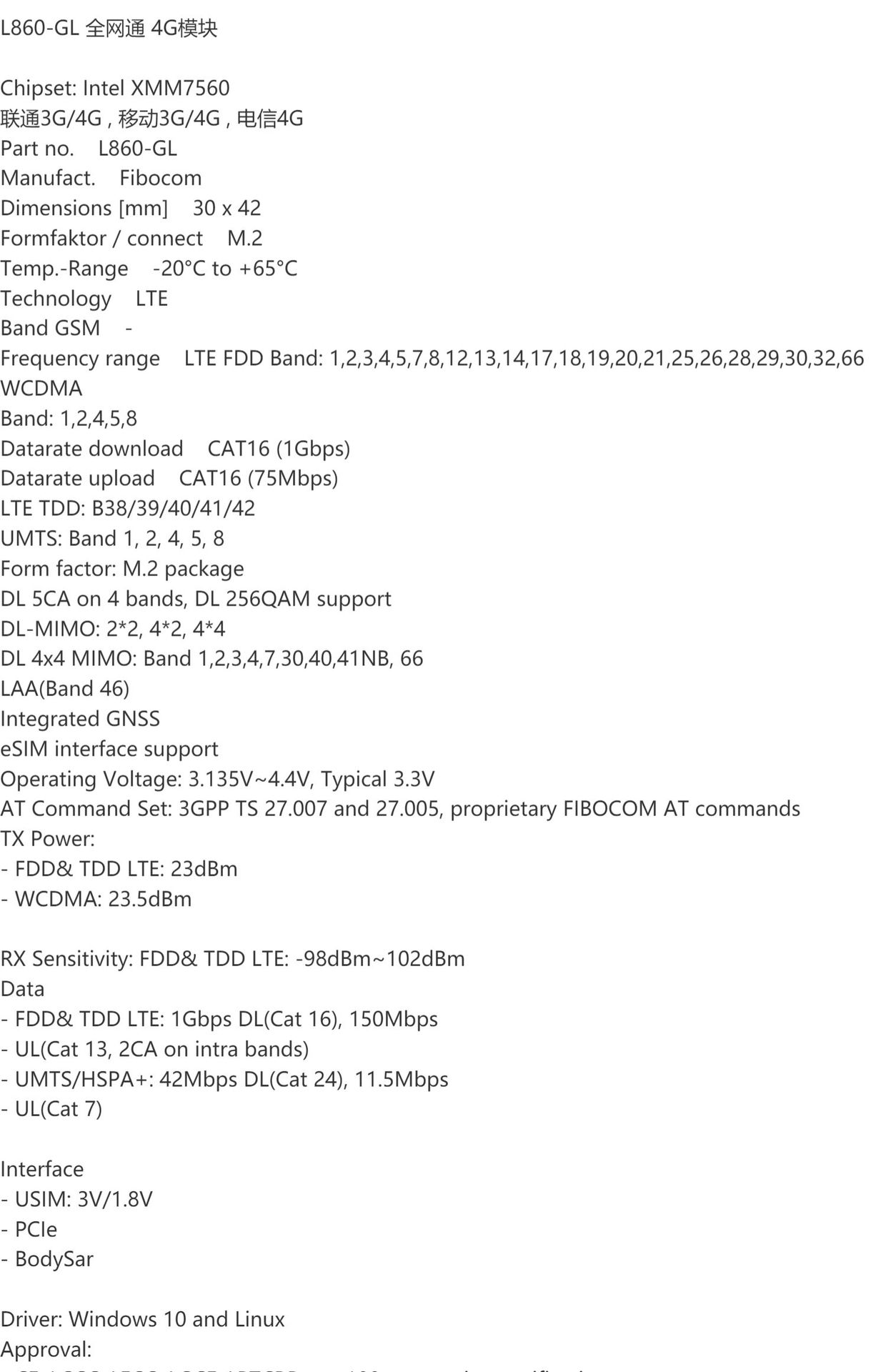 Совершенно новый модуль Fibocom L860-GL China Mobile Unicom Telecom 4G, интерфейс M.2 Cat16