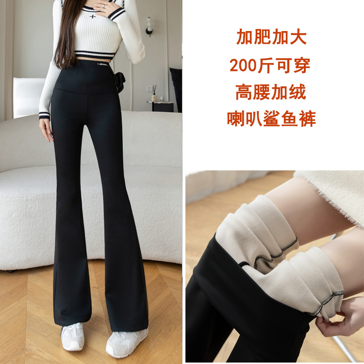 Женские брюки «акула» больших размеров с дополнительным расклешением, подходят для ношения с полными девушками, штаны для йоги с флисовой подкладкой, леггинсы 100kg
