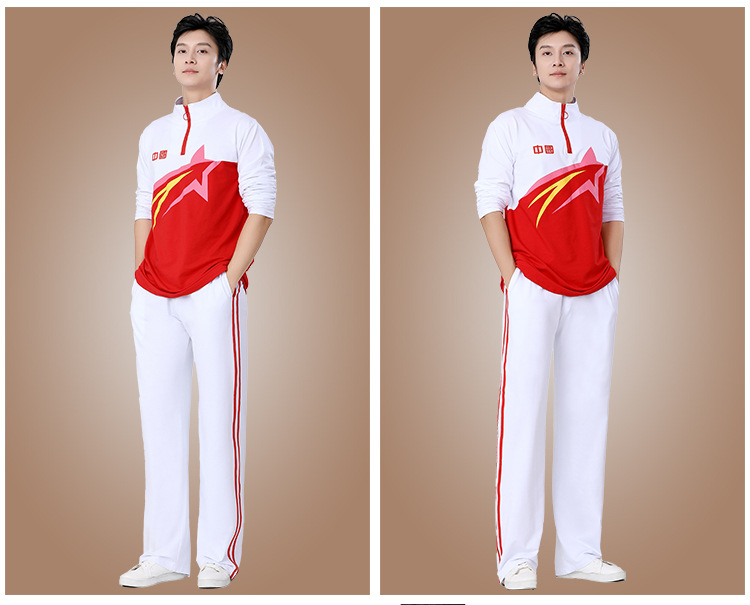 Красные и белые брюки с длинными рукавами (женский); Красные и белые брюки с длинными рукавами (женские); Белые красные брюки с длинными рукавами (женские); Белые красные брюки с длинными рукавами (женские); Красные и белые брюки с длинными рукавами (мужчины); Красные и белые брюки с длинными рукавами (мужчины); Белые красные брюки с длинными рукавами (мужчины); Белые красные брюки с длинными рукавами (мужчины); Красный и белый длинный рукав (женский); Белый красный длинный рукав (женский); Красные брюки (женские); Белые штаны (женские); Красно-белый длинный рукав (мужчина); Белый красный длинный рукав (мужчина); Красные штаны (мужчины); Белые штаны (мужчины)