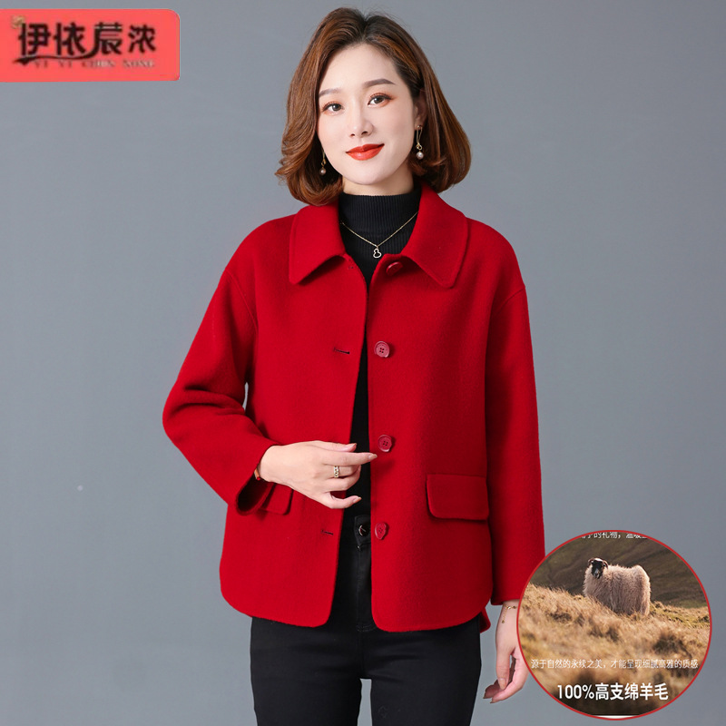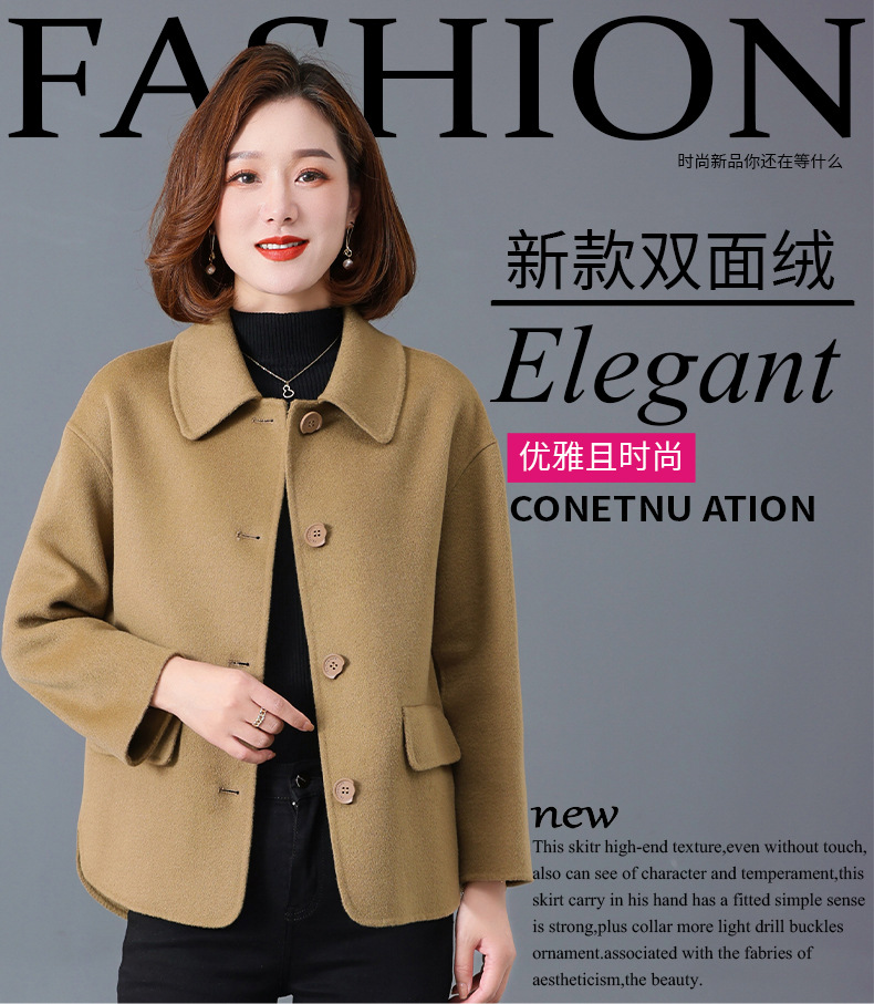 Короткое двустороннее кашемировое пальто для мам 2023 осенне-зимняя новая женская одежда среднего и пожилого возраста, модная Двусторонняя шерстяная Женская одежда в западном стиле