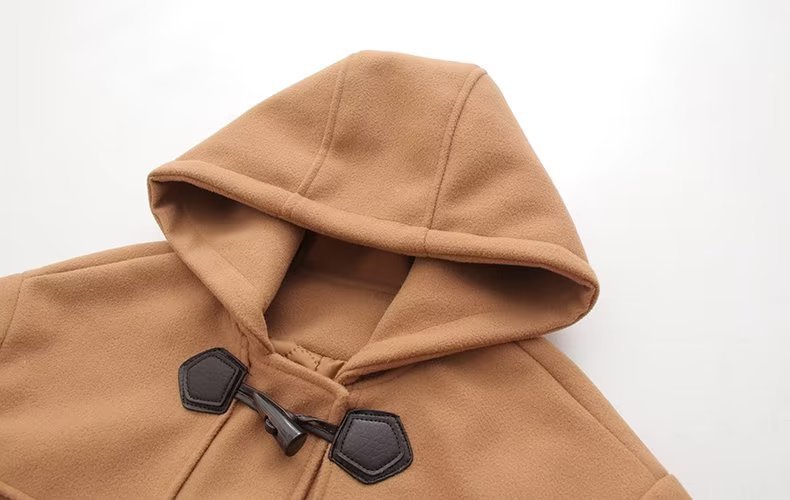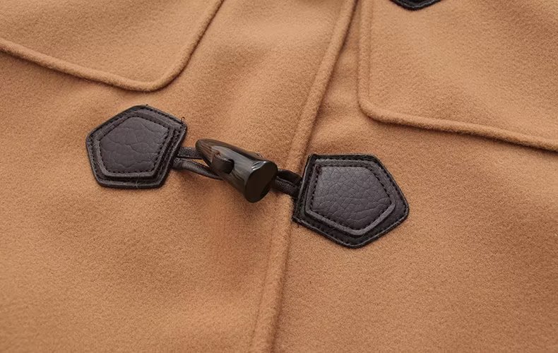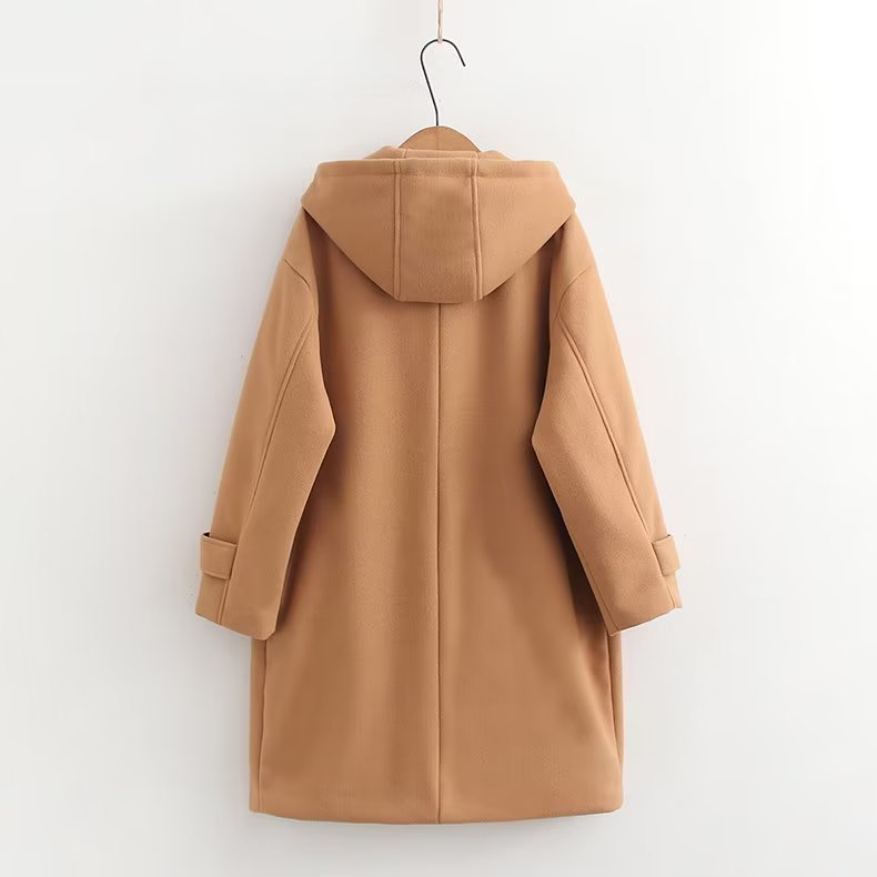 Корейская версия новой длинной кожаной стандартной роговой пряжкой с капюшоном свободное ветрозащитное теплое шерстяное пальто оптом