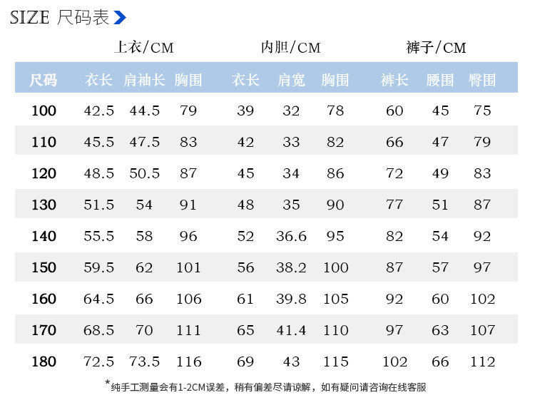 100 см; 110 см; 120 см; 130 см; 140 см; 150 см; 160 см; 170 см; 180 см
