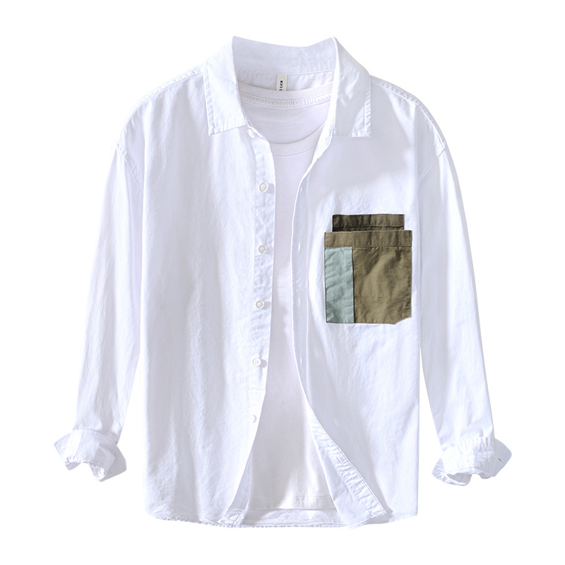 1022 красивый свободный хлопок с длинным рукавом рубашка простой цвет Повседневная рубашка пальто мужские волосы