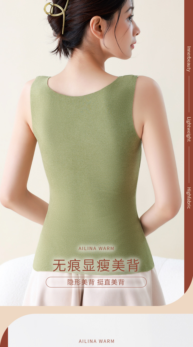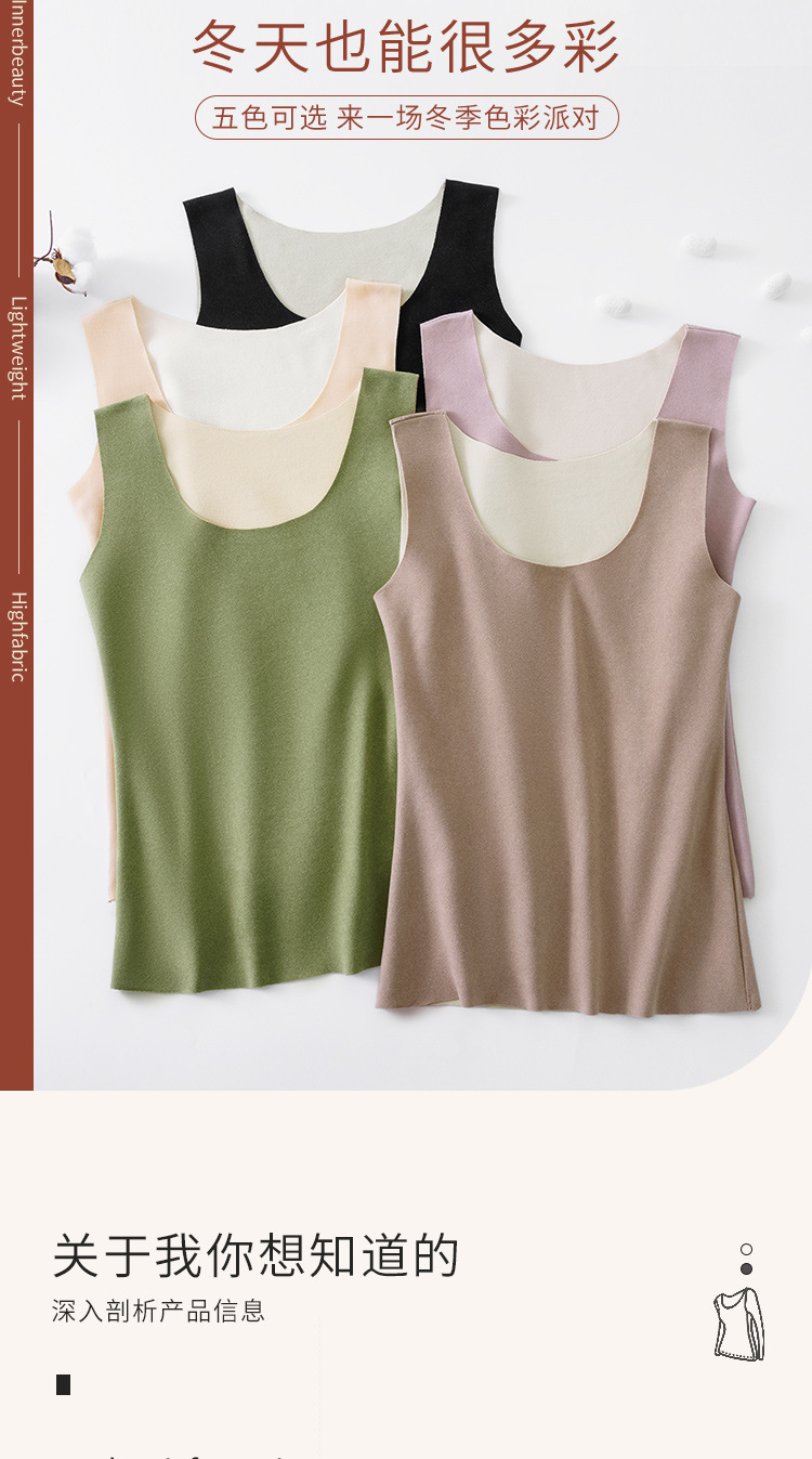 Теплый бархатный жилет-белье для женщин, утолщенная зимняя нижняя одежда, бесшовный базовый слой, саморазогревающийся универсальный бархатный материал.