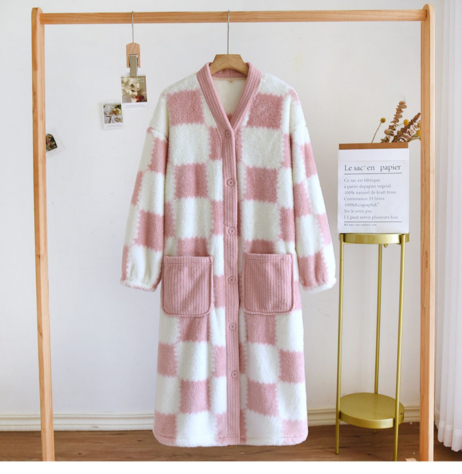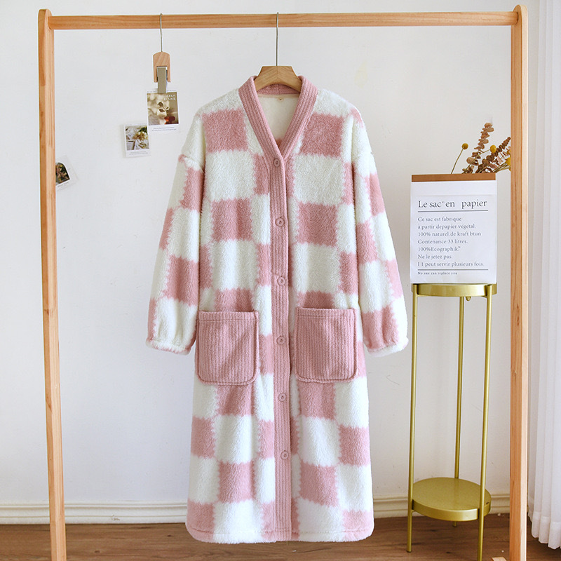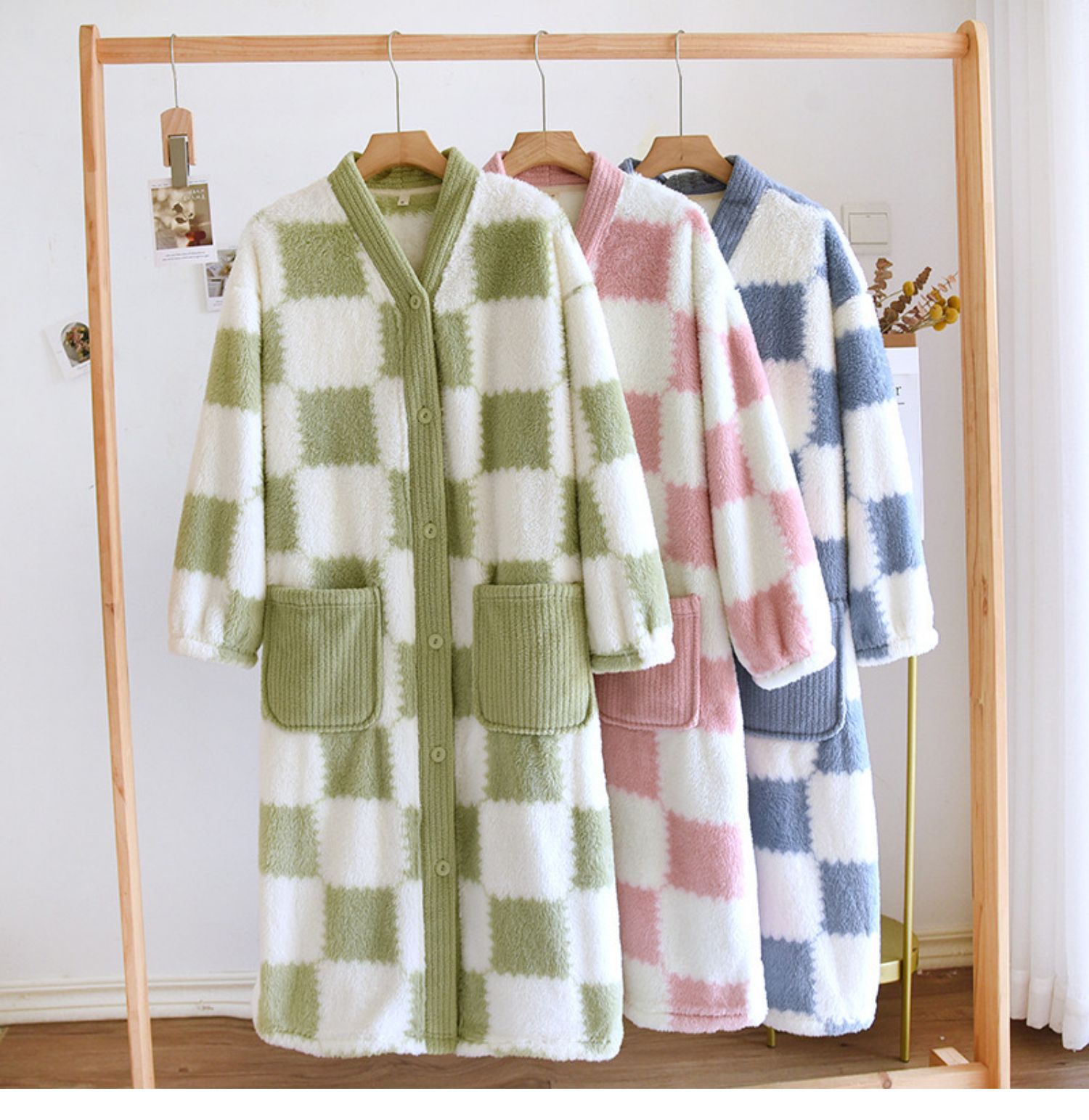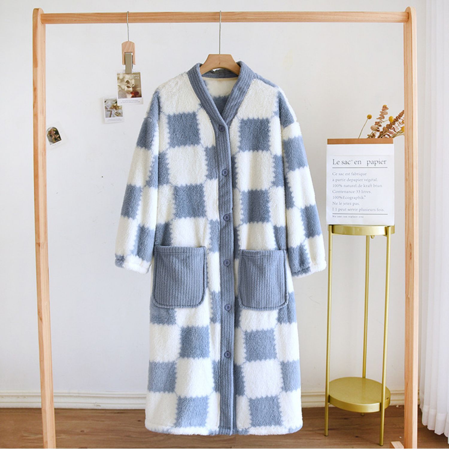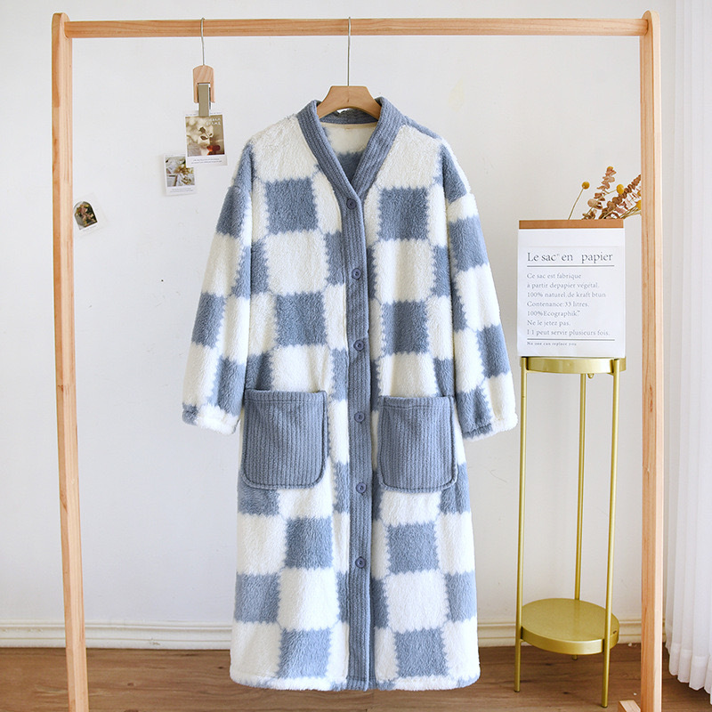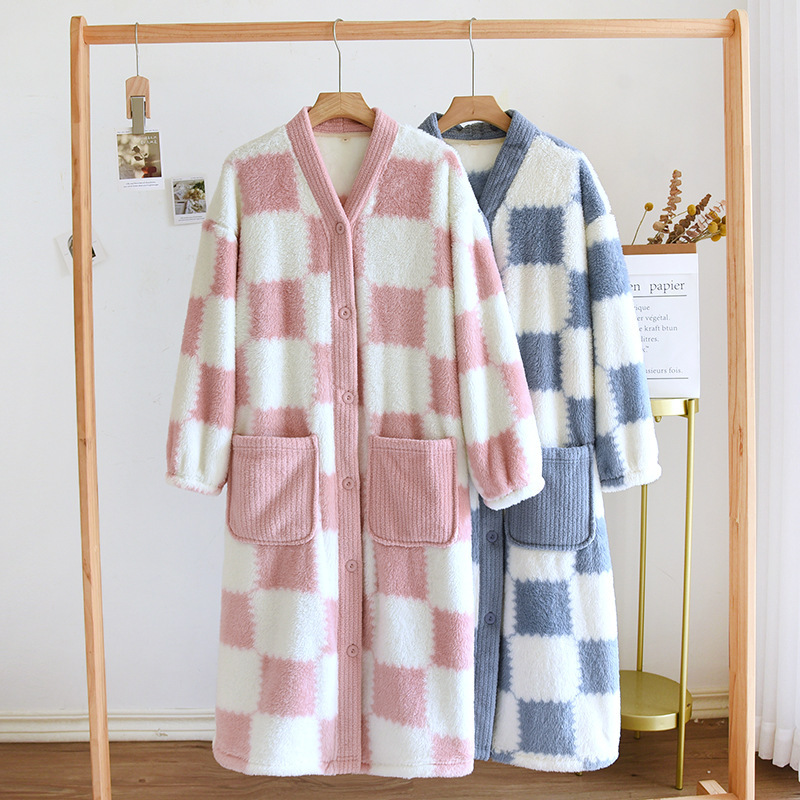 Осенне-зимняя фланелевая ночная рубашка, Женская домашняя одежда с пряжкой и длинными рукавами, утолщенный коралловый флис, Халат средней длины, большие размеры, простой