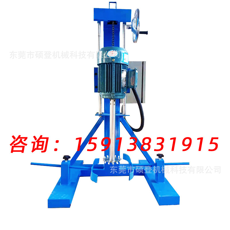 高速分散机/搅拌机,主要用于胶水、油漆、洗发水、指甲油等液体,或液体与粉体的搅拌、分散、溶解的一款混合设备,应用于涂料、染料、油墨、颜料、化妆品、树脂、胶粘剂、乳液、、石油、等领域的液体及液—粉相物料进行高速的搅拌、溶解和分散,分散机又称高速搅拌机。其升降形式不同可分为液压、气动、电动、手摇等升降方式;此款分散机采用的就是电动型升降方式,以0.55KW,0.75KW,1.1KW、1.5KW、2.2KW、3KW、4KW、5.5KW、等规格为主,占地面积小,操作简单;
