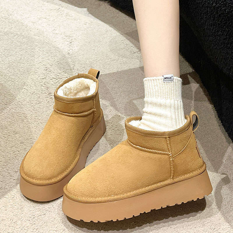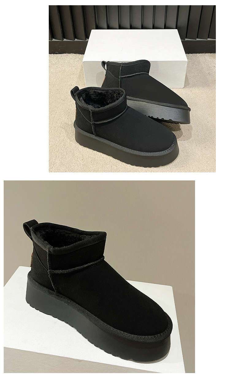 Черный снежный сапоги женский бархат утолщен