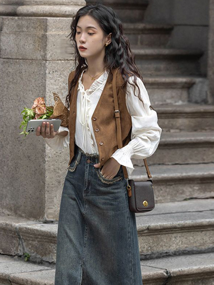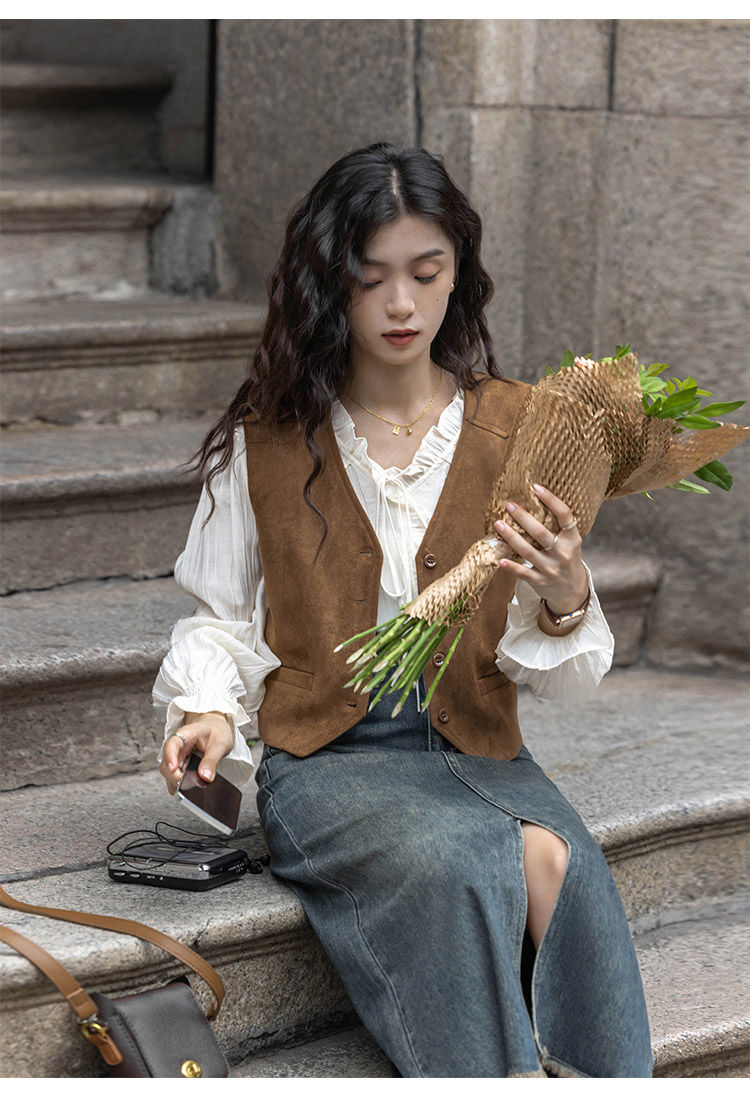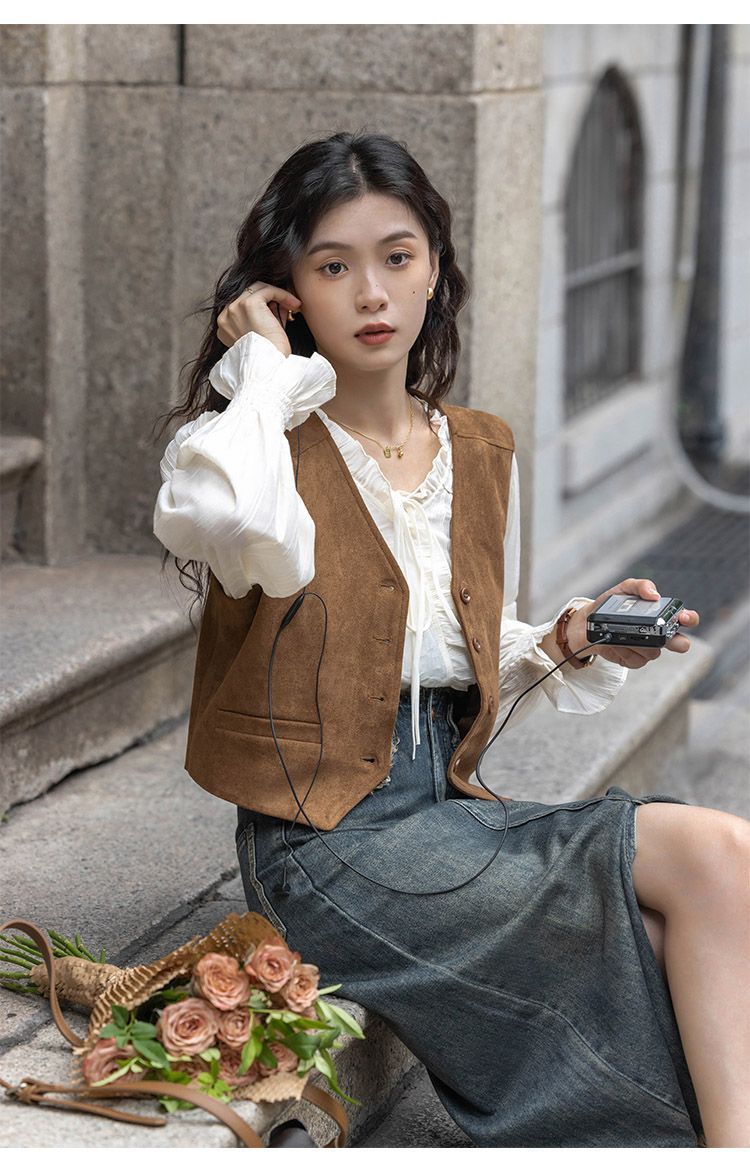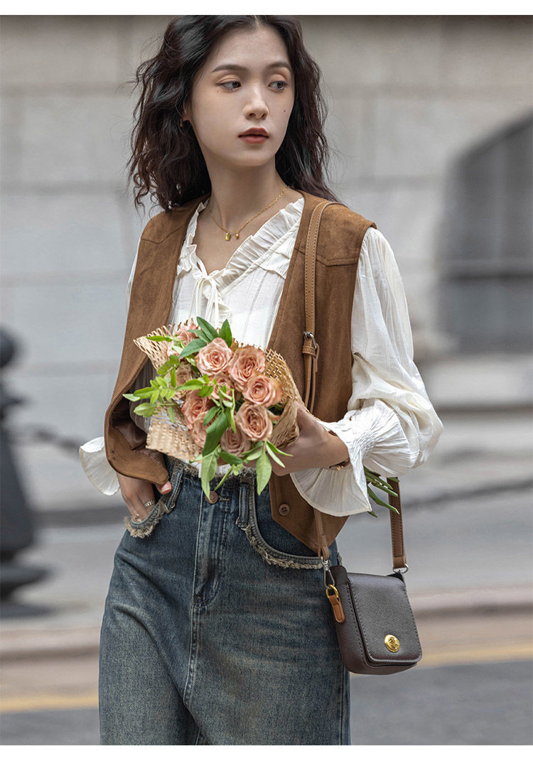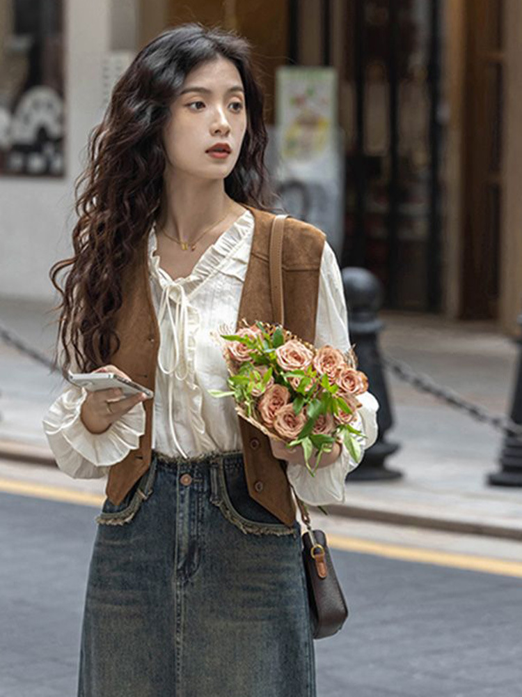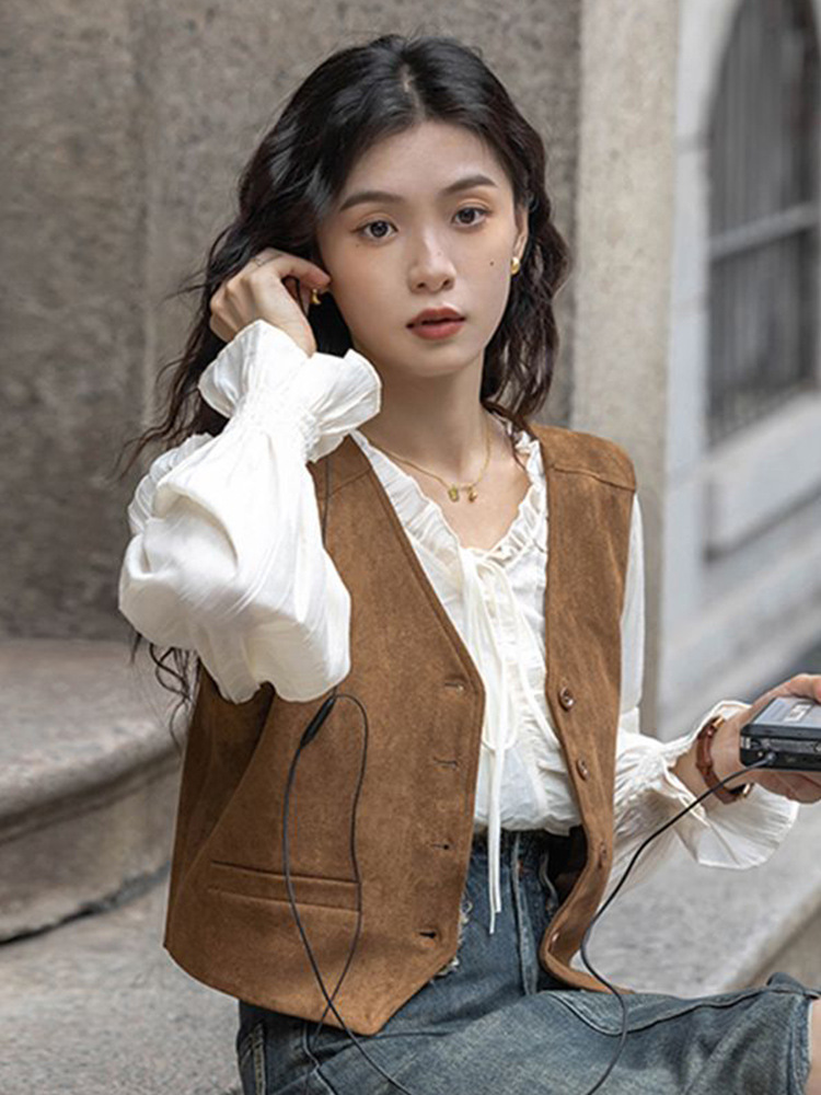[Двухслойная подкладка] жилет в стиле ретро, женская весна 2025, новая поясная одежда в корейском стиле с короткой курткой без рукавов