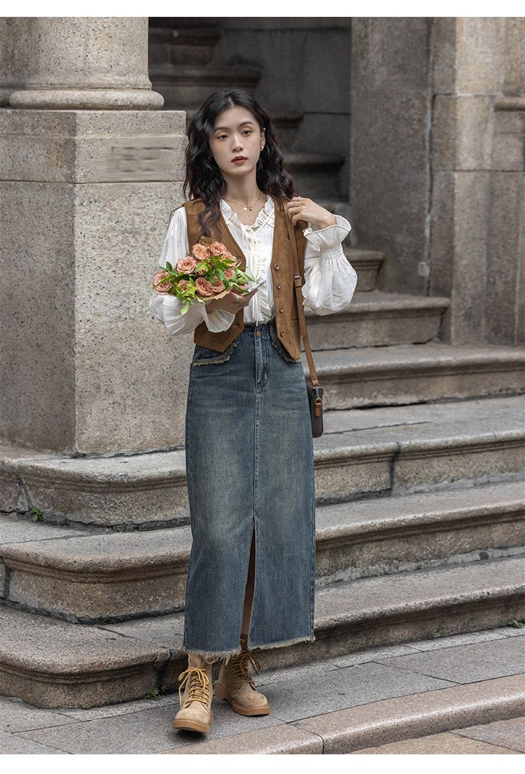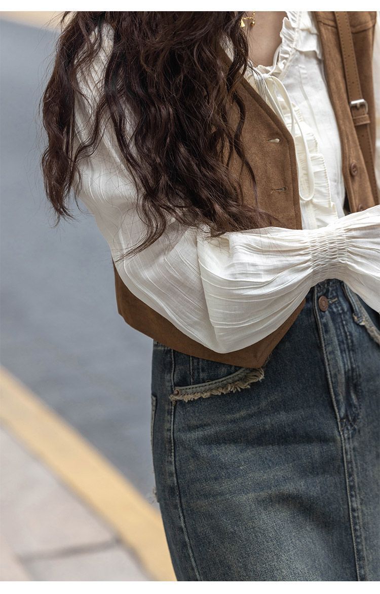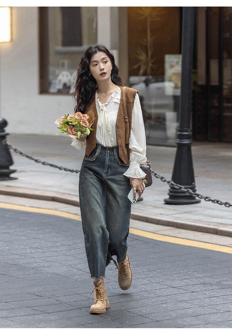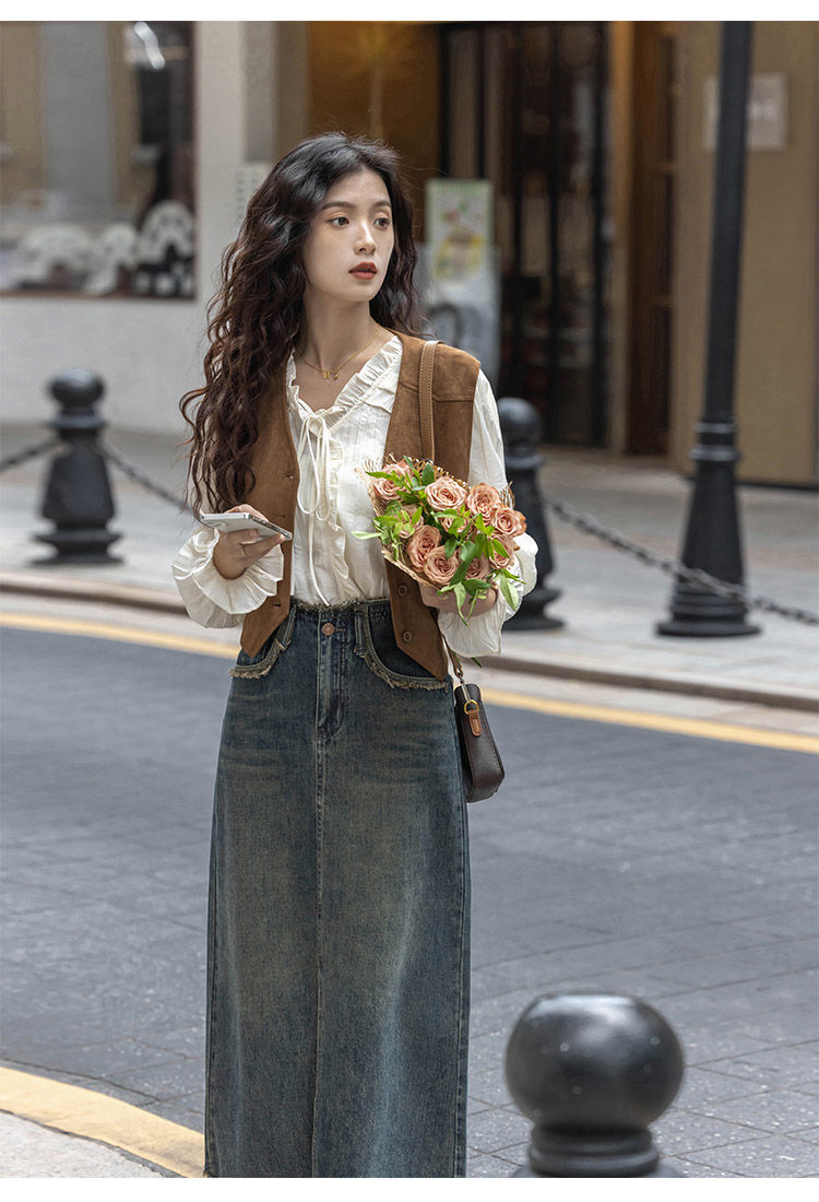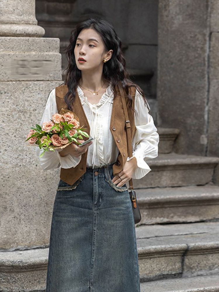 [Двухслойная подкладка] жилет в стиле ретро, женская весна 2025, новая поясная одежда в корейском стиле с короткой курткой без рукавов