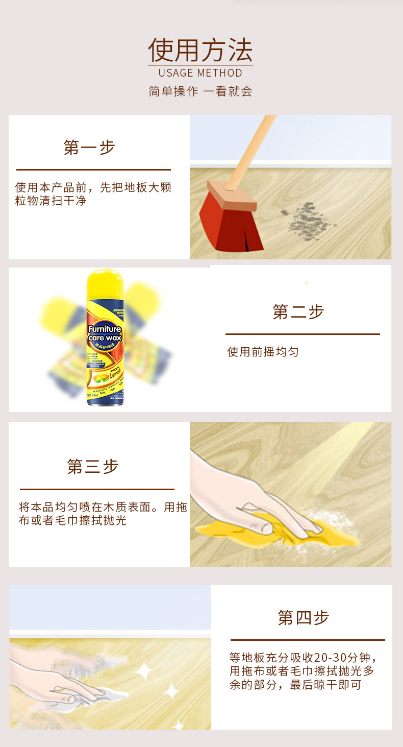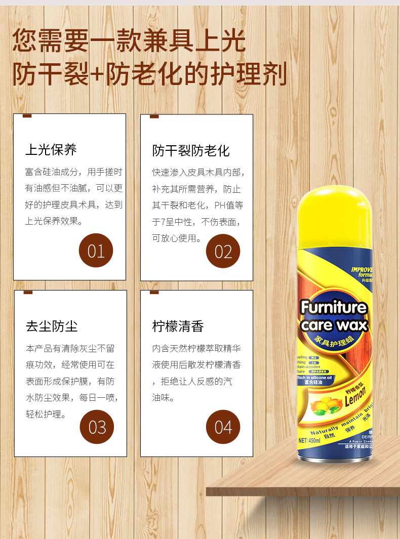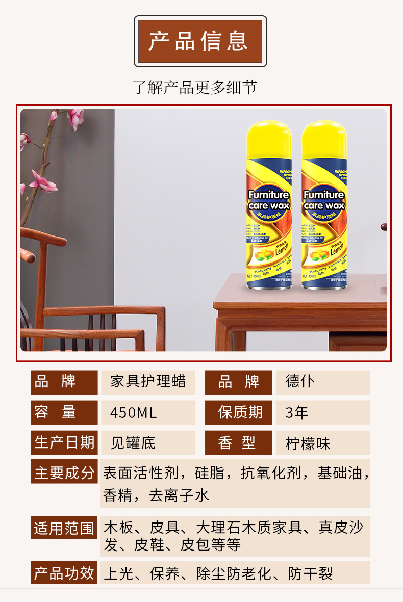 OEM уход за мебелью Воск Красное дерево остекление воск спрей кожаный диван уход полировальный воск на заказ