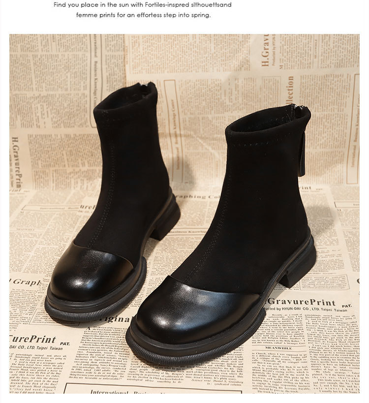 Эластичные сапоги, женские осенне-зимние 2023, новые маленькие ботильоны в Корейском стиле, популярные в этом году короткие сапоги в западном стиле, женские тонкие сапоги