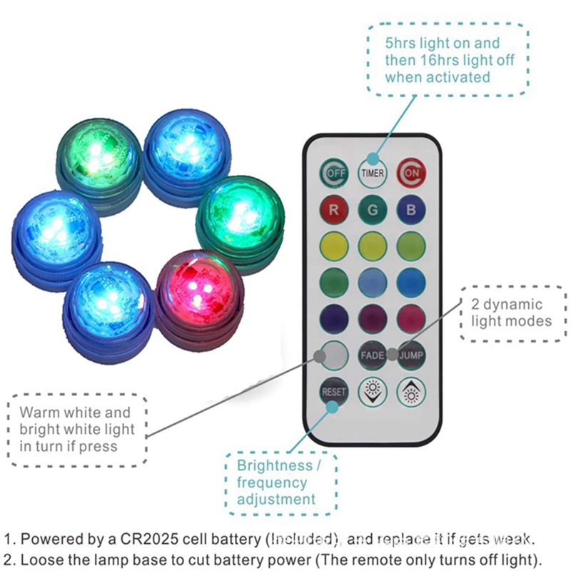 Многоцветный светодиодный светильник для подводного плавания 3 см с дистанционным управлением, с таймером, для декора бассейнов и ваз