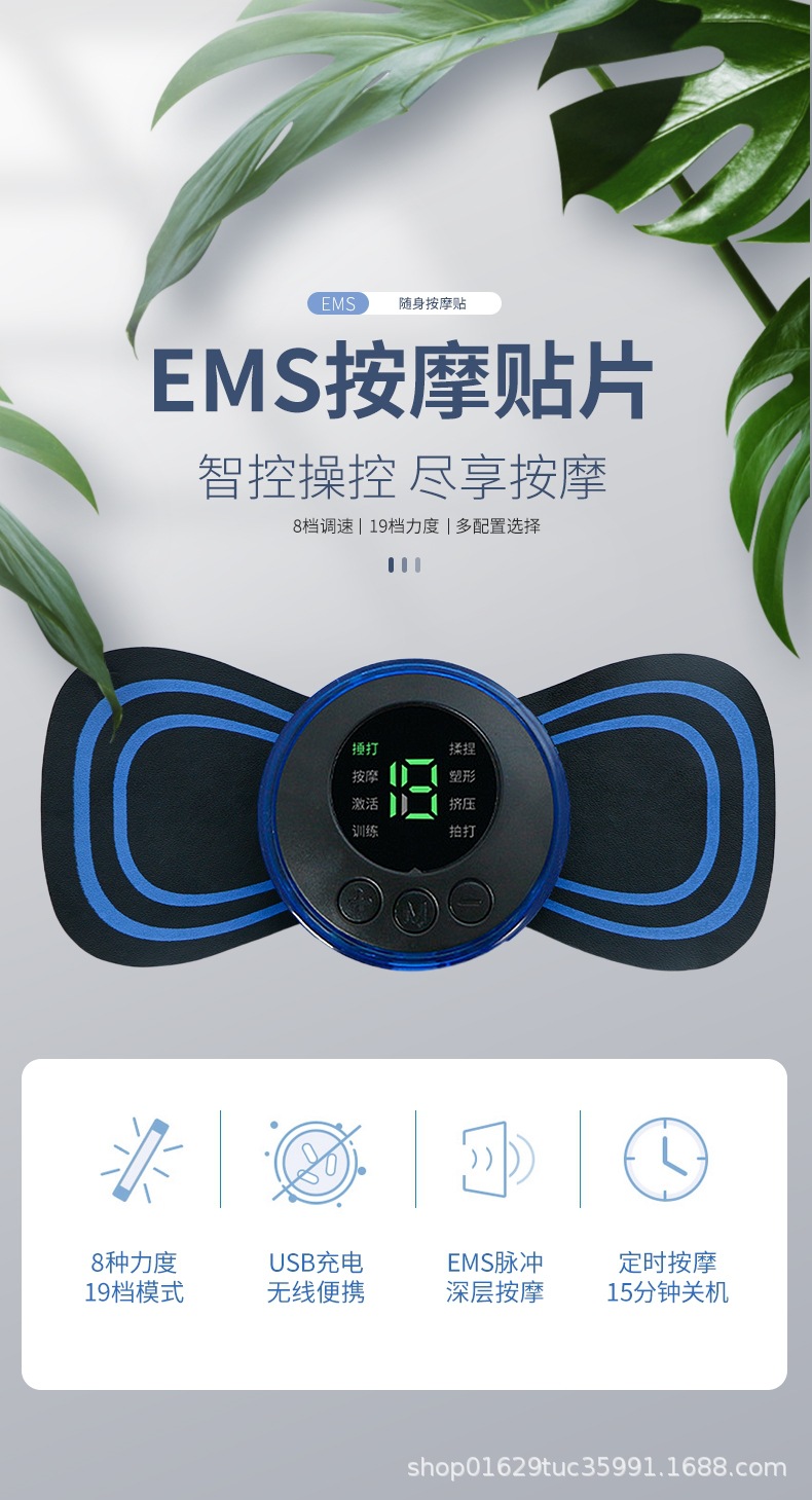 Мини-массажный пластырь, массажер для шейного отдела позвоночника, массажер для плеч и шеи, EMS, портативный импульсный умный массажный пластырь, 8 режимов