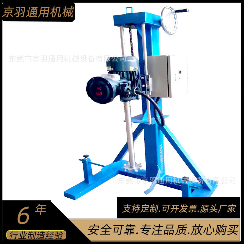 0.55-3KW手摇升降高速分散机是对多种混合液体、固体进行搅拌分散、溶解的高效设备,0.55-11kw手摇高速搅拌机广泛应用于涂料、颜料、油墨、胶粘剂等化工产品。0.55-11kw高速分散机由电动升降、搅拌系统、传动、电器四部分组成。各部分结构紧凑,功能协调。