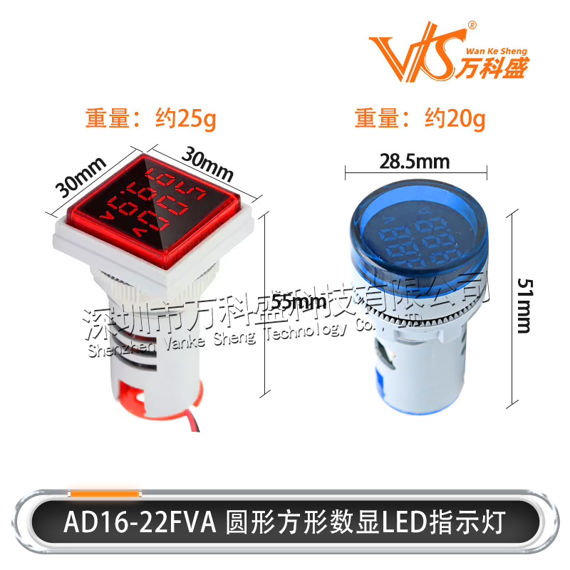 Световой индикатор напряжения амперметра Сигнальная лампа AD16-22FVA Круглый квадратный цифровой дисплей Светодиодный индикатор