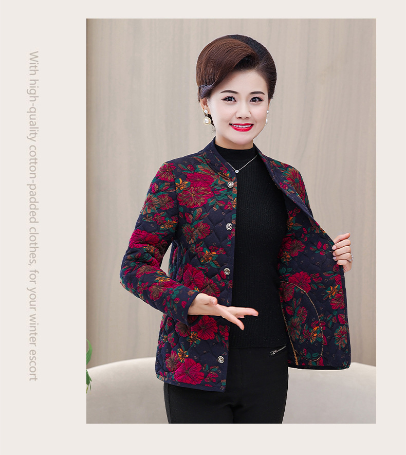 Зимняя одежда для пожилых людей легкая теплая Цветочная одежда на хлопковой подкладке теплая одежда для 60-летней мамы и бабушки на хлопковой подкладке с эластичной подкладкой