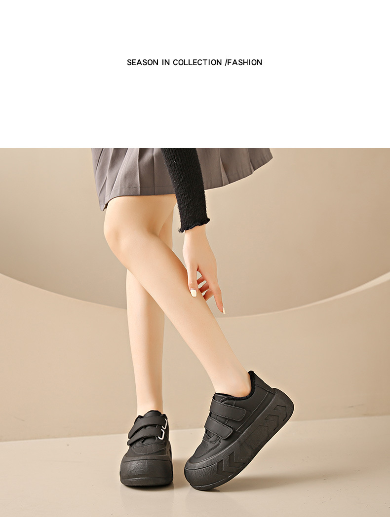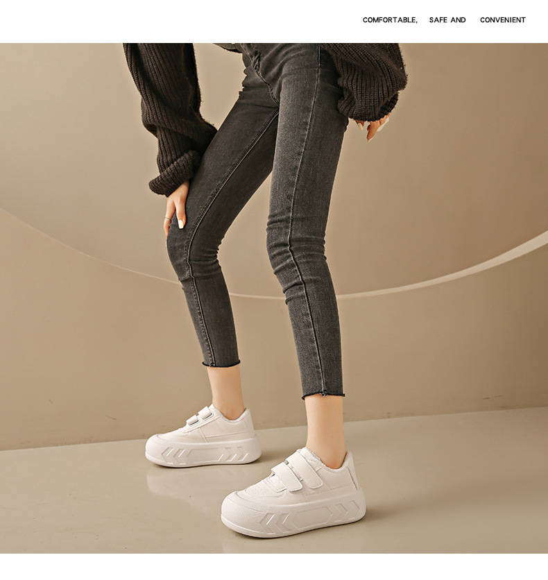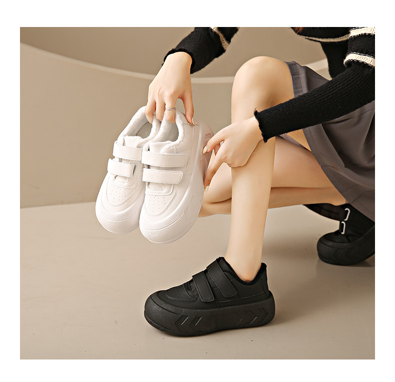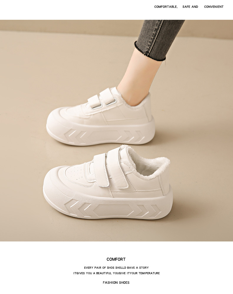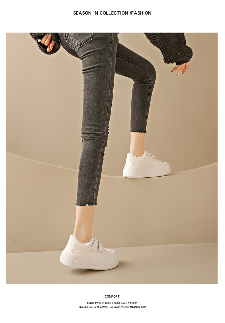 Маленькие белые туфли, на липучке, на платформе, для хлеба, женские осенне-зимние флисовые кроссовки с высокой посадкой, универсальные Спортивные Повседневные кроссовки