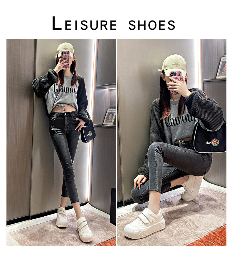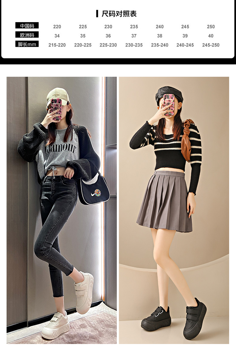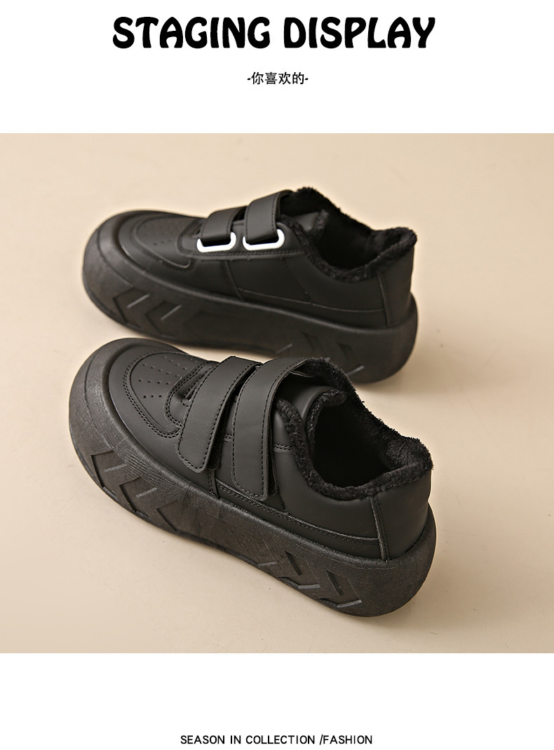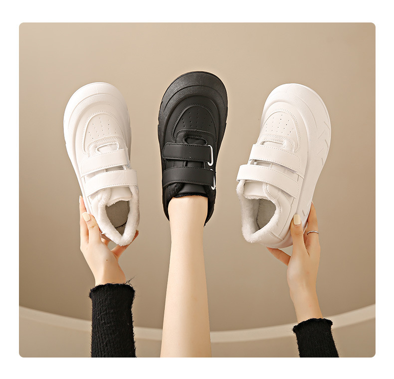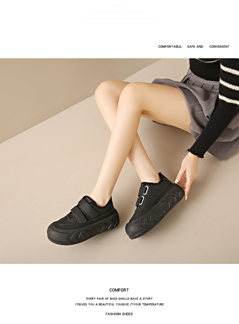 Маленькие белые туфли, на липучке, на платформе, для хлеба, женские осенне-зимние флисовые кроссовки с высокой посадкой, универсальные Спортивные Повседневные кроссовки