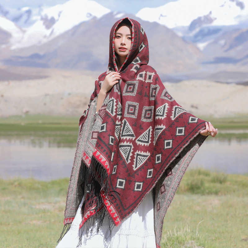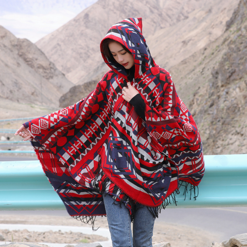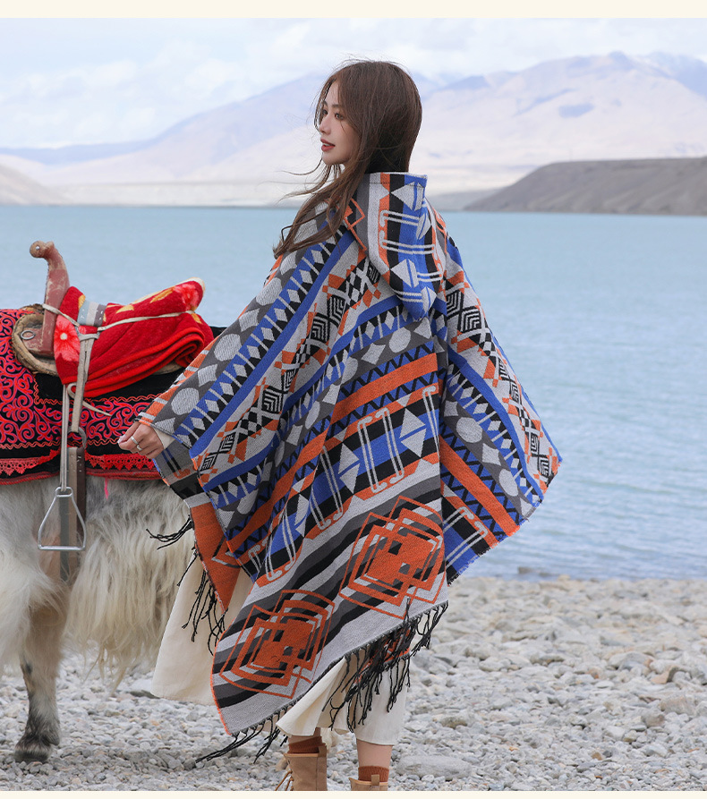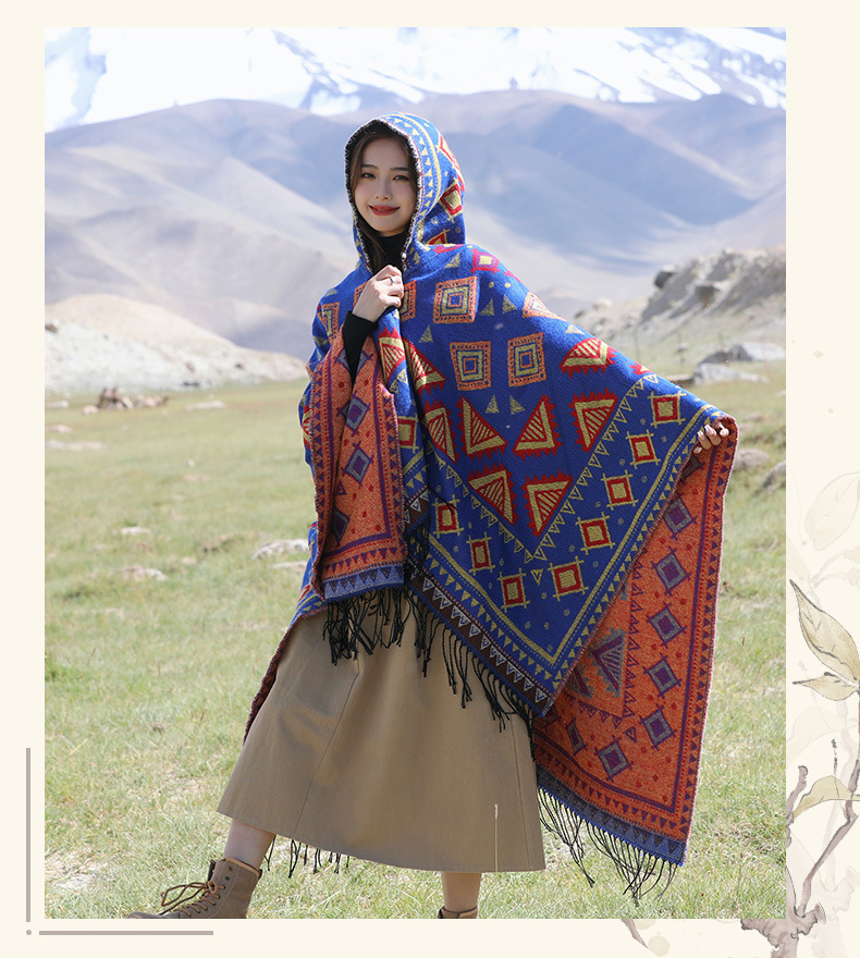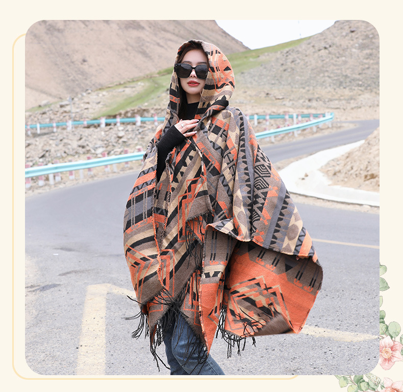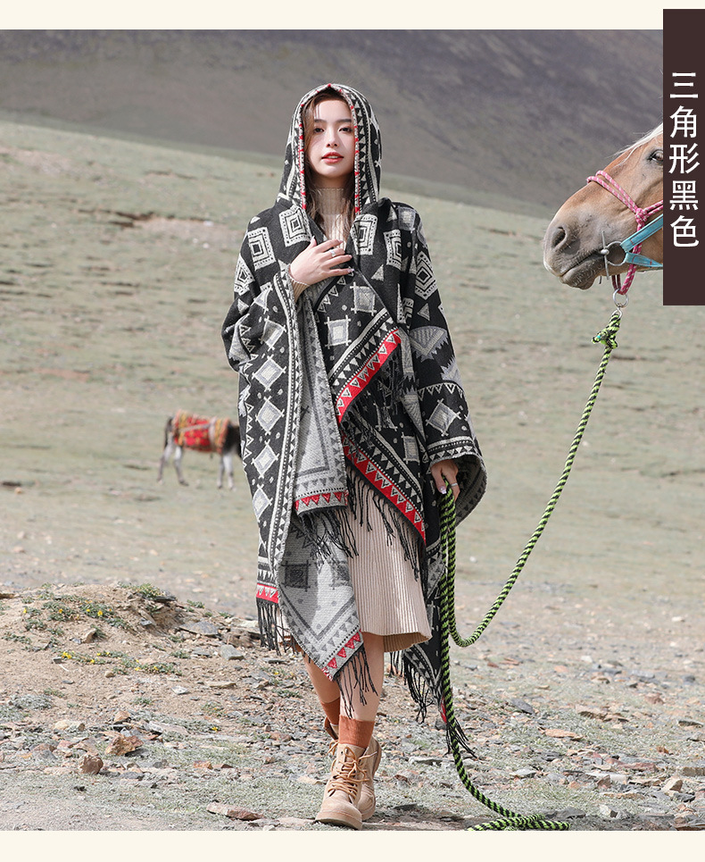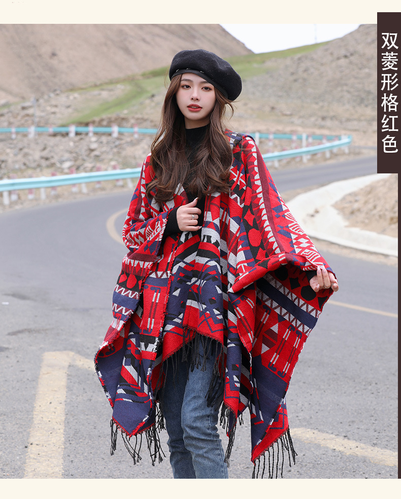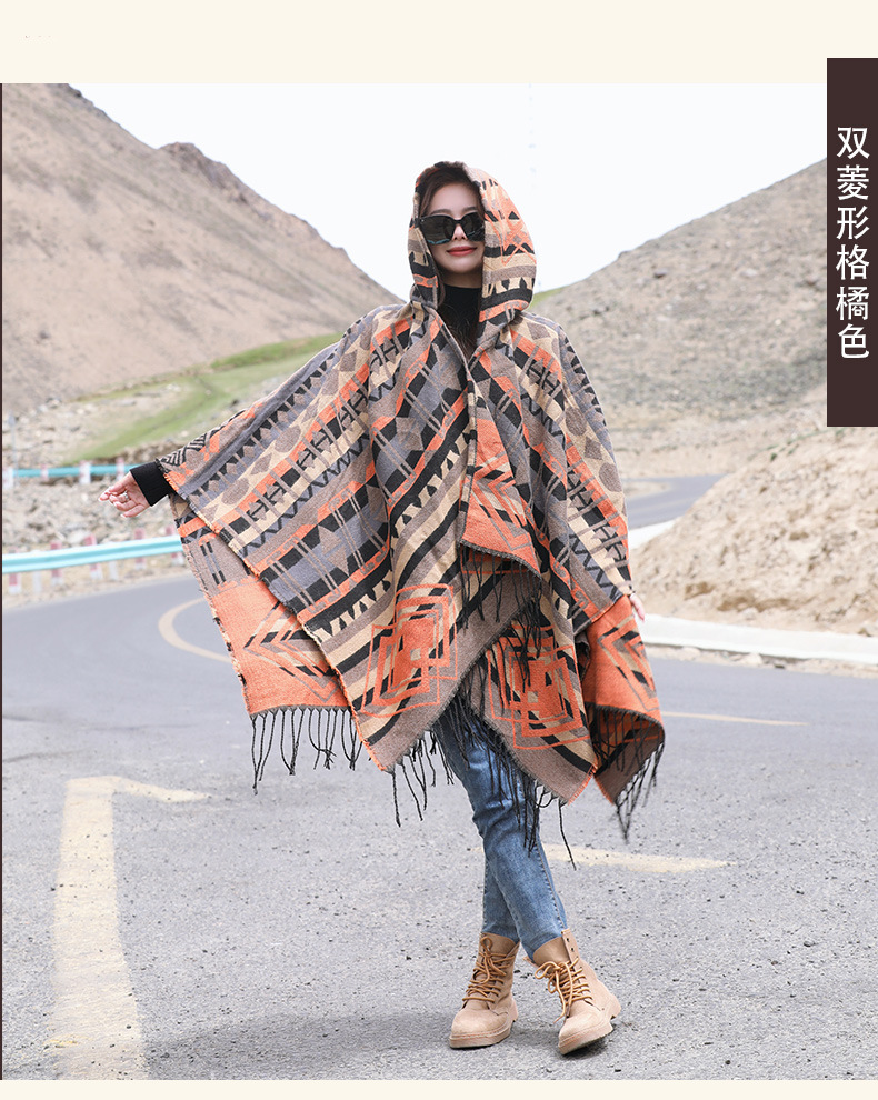 Плащ с треугольными кисточками и ромбами