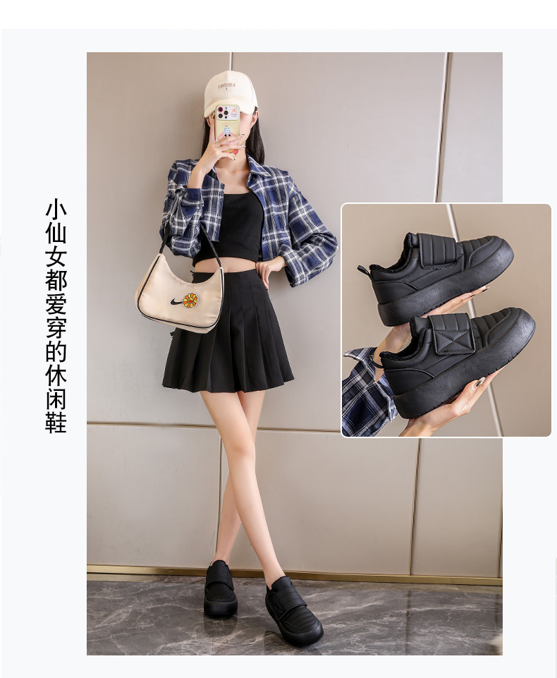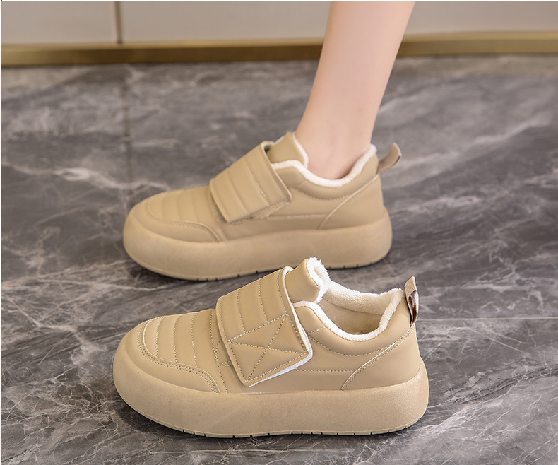 Белые туфли на липучке Женская нишевый дизайн 2023 осень Новые ботинки для досок на флисовой подкладке повседневные хлебные туфли на плоской подошве хлопчатобумажные туфли