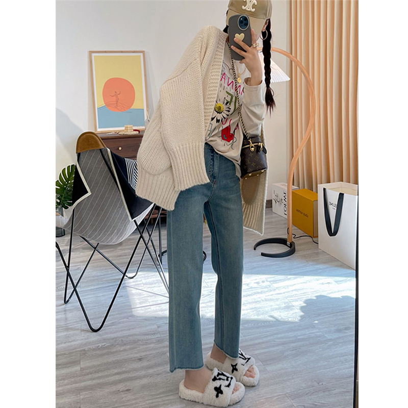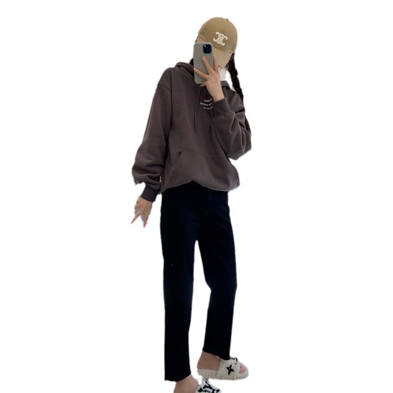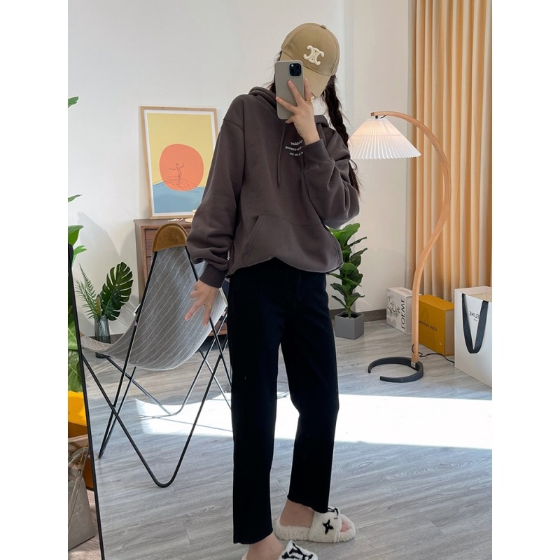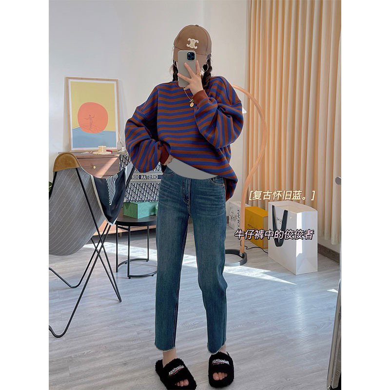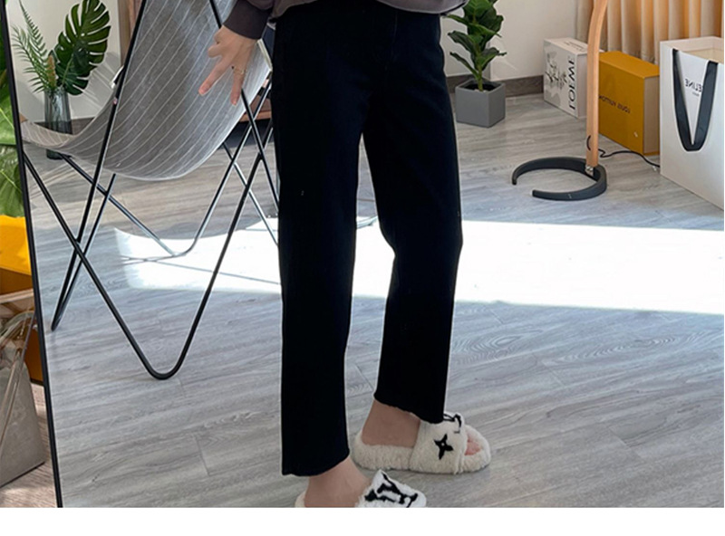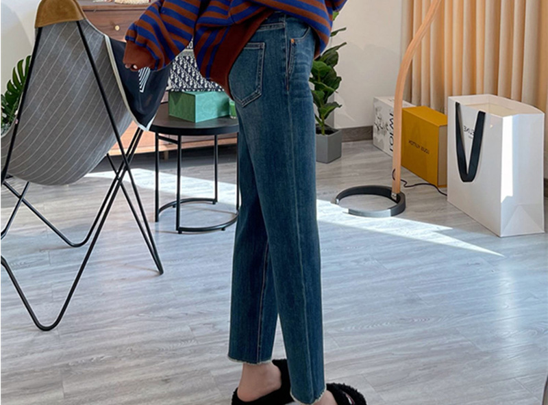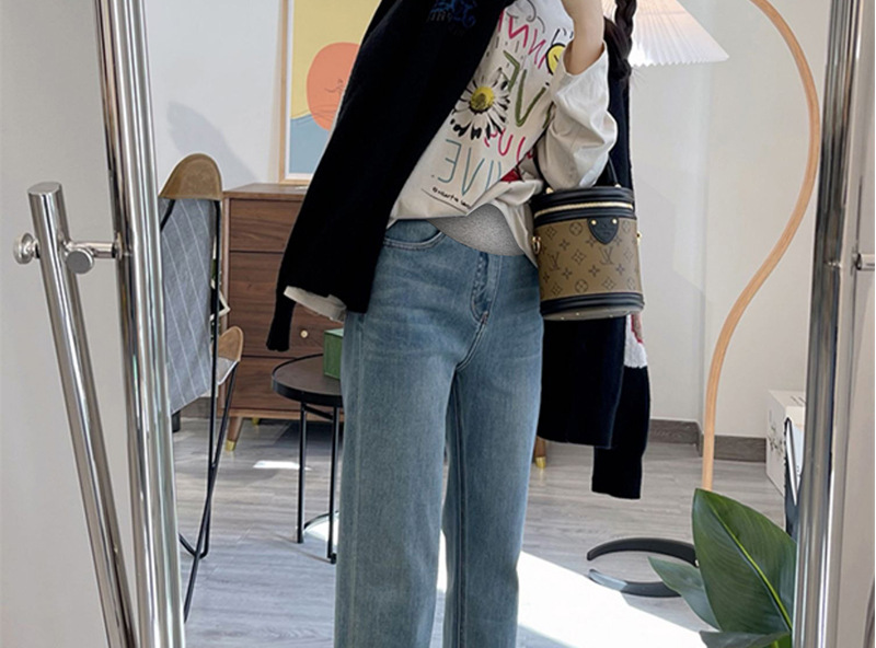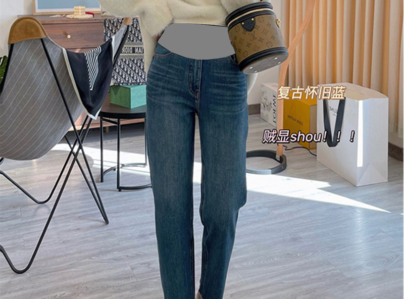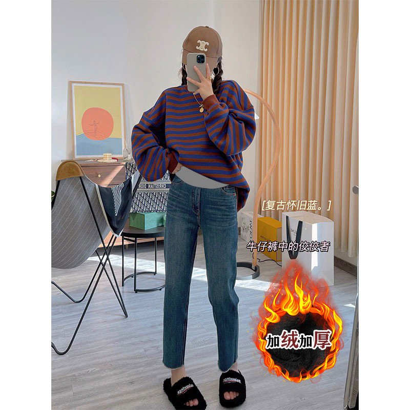 Джинсы для беременных, новинка 2024 года, осень/зима, утолщенные утягивающие брюки-багеты на флисовой подкладке, модные свободные повседневные прямые брюки.