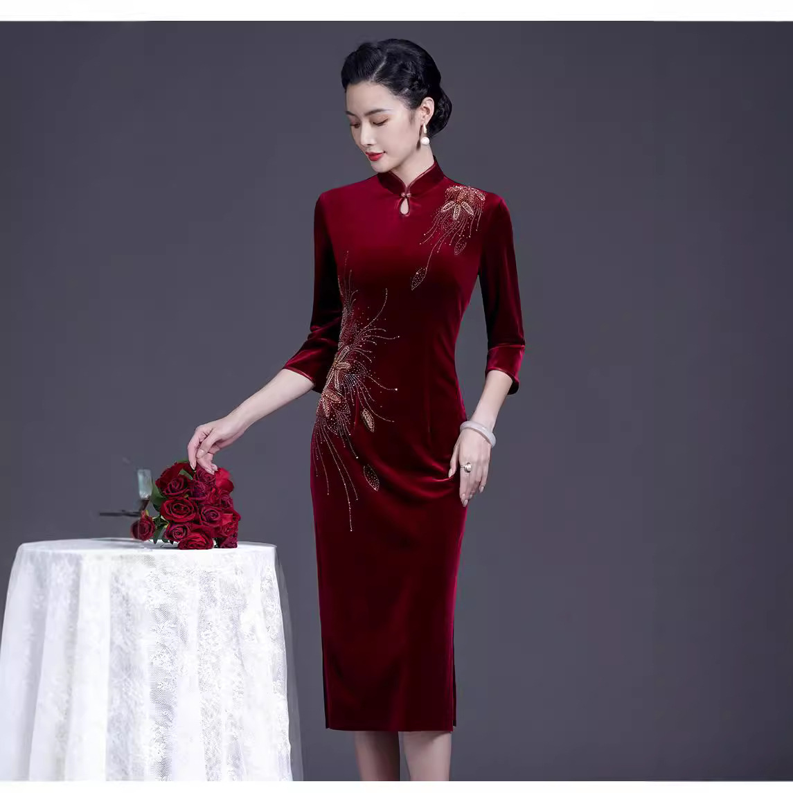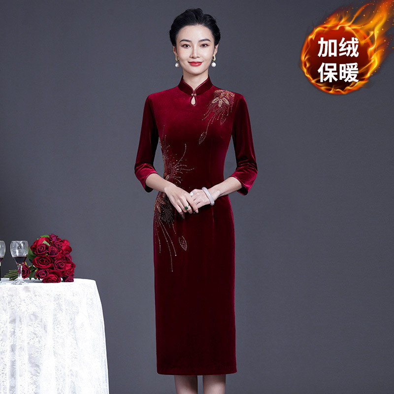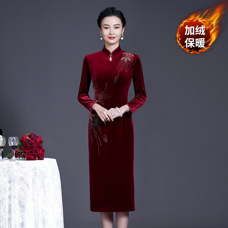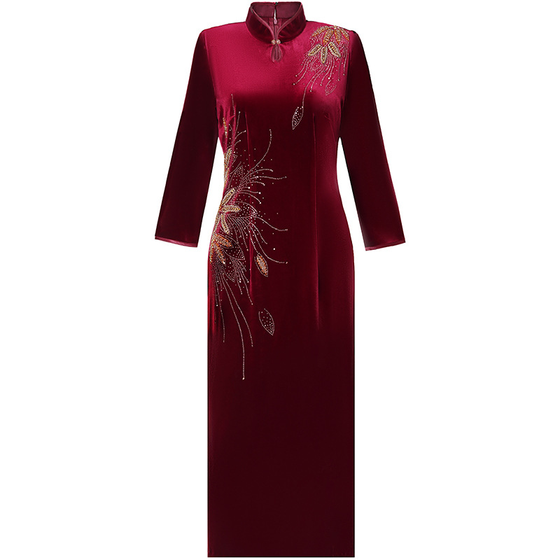 Иностранный свадебный банкет мама платье женщина весна и осень новая благородная леди золотой бархат свадебная дочь юбка чонсам темперамент юбка
